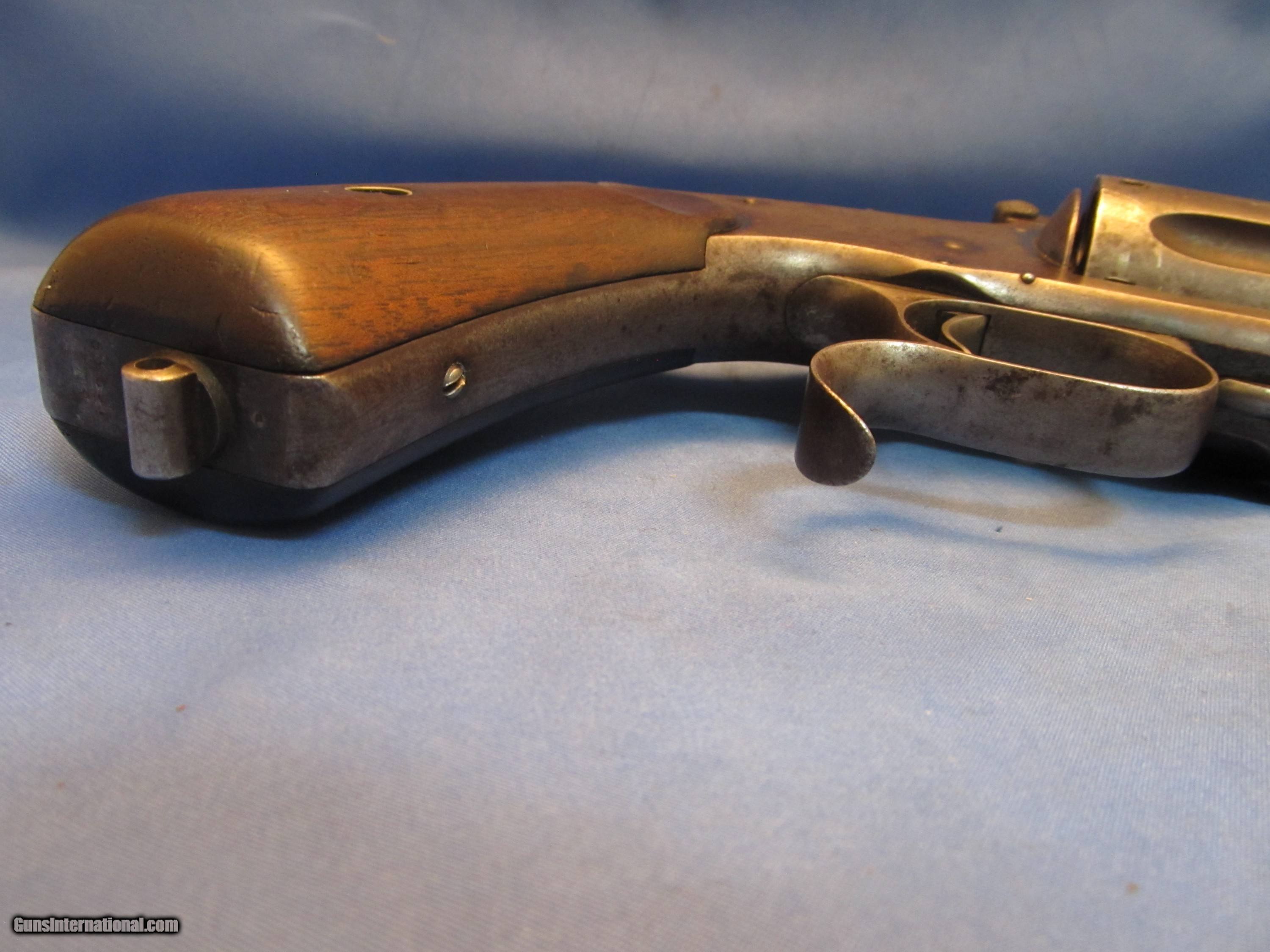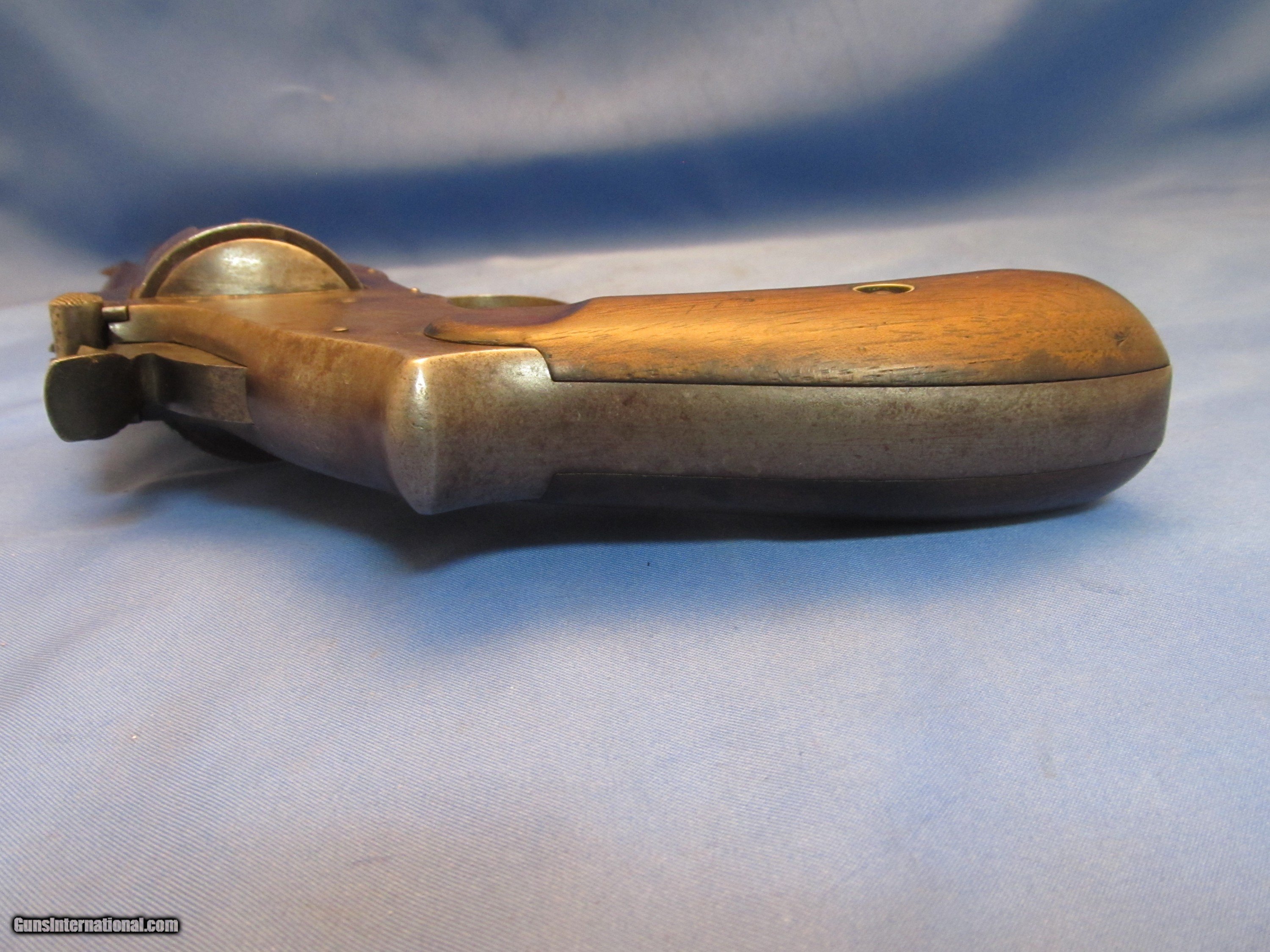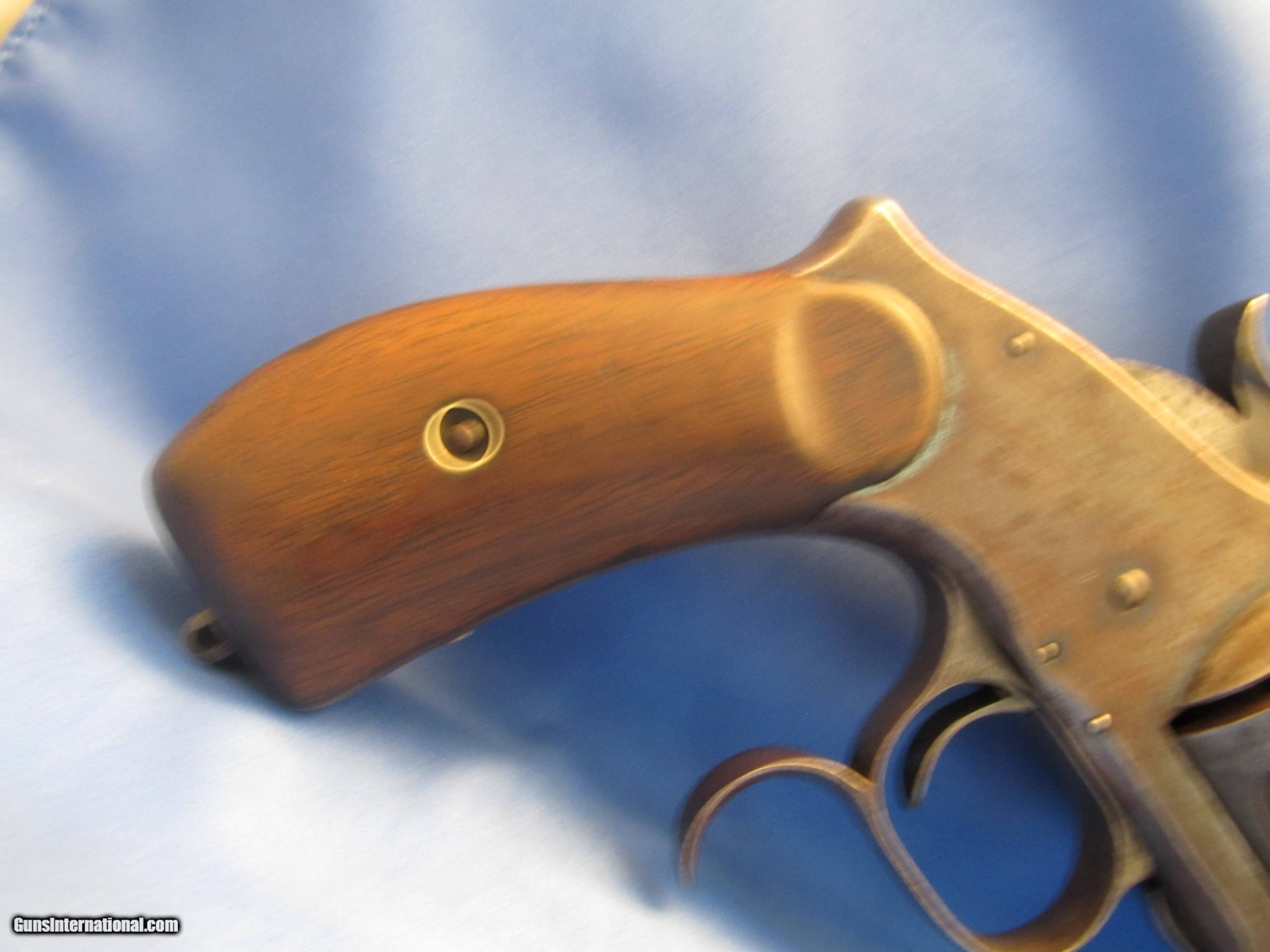 Description: THIS IS AN ANTIQUE SMITH & WESSON 3RD MODEL 3 44 RUSSIAN CAL REVOLVER WE BELIEVE SHE WAS PRODUCED BETWEEN 1874-1878 SHE HAS THE SLIGHTEST OF BARREL WOBBLE (COMMON) THE SERIAL NUMBERS "46239" OF THE FRAME AND GRIPS MATCH. THE NUMBERS CYLINDER, METAL STAMP (UNDER THE GRIP) AND LATCH ALL MATCH WITH A DIFFERENT NUMBER AS THEY SHOULD ON THIS MODEL THE BORE OF THE 6-1/2" BARREL RIFLING IS BETTER THAN 60% THE BLUE FINISH IS GONE REPLACED WITH A RUST PLUMB WITH PATCHES OF LIGHT PITTING THE WOOD GRIPS ARE INTACT WITH THE WOOD TO METAL MARRIAGE BEING PRICICE SHE COCKS, CLICKS AND SLAMS LIKE SHE SHOULD. IF YOU WOULD LIKE MORE PHOTOS ASK "BEFORE" YOU BUY AS SHOWN IN THESES MANY CLOSE UP PHOTOS WITH NOTHING ELSE UNDERSTAND THAT WE WILL PUT A SIGNATURE ON THE PACKAGE SO IT WON'T GET LEFT ON A PORCH BUYER PAYS A FIXED AMOUNT OF 35.00 INSURED SHIPPING TO THE LOWER MAINLAND STATES, ALASKA, HAWAII OR PUERTO NO SHIPMENTS OUTSIDE THE USA. MISSOURI RESIDENTS DO PAY A 8.575% SALES TAX. NO EXTRA CHARGE FOR CREDIT CARDS BRANDON'S GUN TRADING CO LLC 321 EAST 20TH ST JOPLIN MO. 64804 (417)-623-8787 FAX (417)-623-2326 9-5 TUESDAY-SATURDAY CENTRAL TIME WE ARE ALSO CLOSED THE 1'ST SATURDAY OF EVERY MONTH AND HOLIDAYS. OUR INVENTORY REFERENCE: CONSIGNMENT PLEASE NOTE, UPS SERVICE HAS GOTTEN SO BAD UNDER CURRENT MANAGEMENT THAT WE WON’T SHIP UPS UNLESS WE ABSOLUTELY HAVE TOO. WHEN WE DOUBLE PACK, INSURE, ADD SIGNATURE, USE GOOD BOXES AND UPS EVEN NOTES THEY DAMAGED THE ITEM AND THEY STILL WON'T PAY. ALSO, ANY INSURANCE WE DO PUT ON OUR PACKAGES IS VOID IF YOU OR YOUR DEALER THROWS AWAY THE BOX, ANY PACKING MATERIALS OR FAILS TO PICTURE AND NOTIFY US AND THE SHIPPING COMPANY IMMEDIATELY SOLD Antique: Yes Handgun Caliber: .44 S&W Russian Manufacturer: S&W Model: # 3 RUSSION 3RD MODEL Barrel Length: 6-1/2 Manufacture Date: 1874-1878? Item Location: Missouri |
