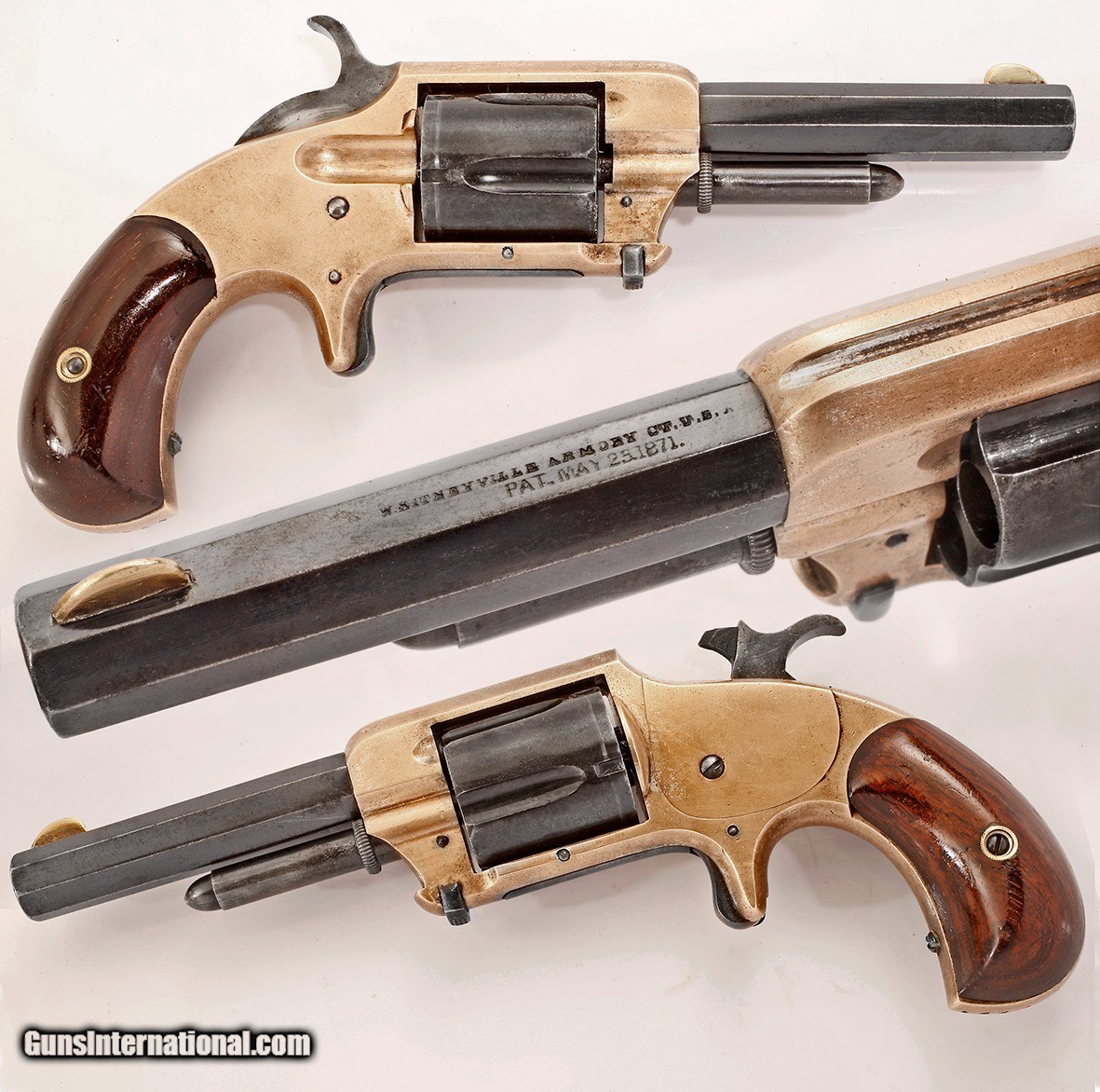 Description: I'm selling my collection. Here is an Antique Whineyville Armory C.T. U.S.A. No.1.1/2 Single Action Revolver : "PAT.MAY.25.1871" marked on the top of the 3.1/4 barrel. 5 round fluted cylinder. It's an excellent working condition, the original factory deep blue barrel and cylinder rate 90% and brass frame. chambered for 32 rimfire long & short. Estimated quantity of 15,000. Collectible piece of history is in an exceptional condition. Bird eye Rosewood grips are very good. All visible on the pictures. The old ammunitions showed on one of the pictures are not for sale. What is not written in the description would be showed on the pictures. I described it to the best of my knowledge. Please don't ask for extra pictures. Buyer is responsible for knowing all laws pertaining to this transaction. 475+ $55 insured shipping to your door if you are over 21 years old, payable by cashier check, P.M.O or credit card. Please have look on my other antique pieces. Thank you. SOLD Antique: Yes Handgun Caliber: .32 Rimfire |