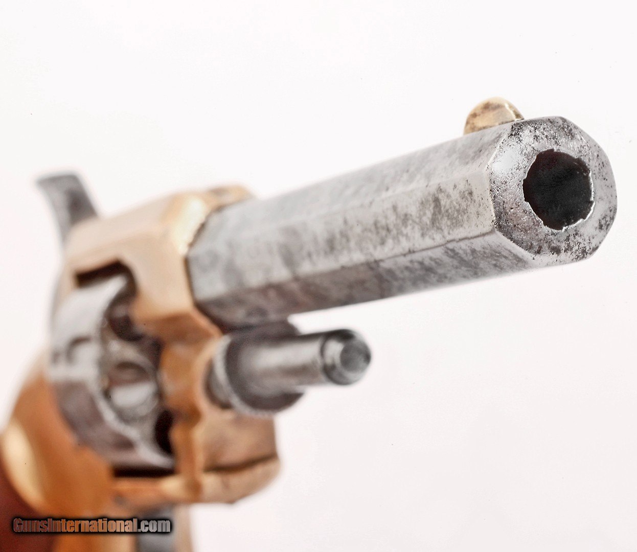 Description: I'm selling my collection. Here is an Antique Whitneyville Armory Ct U.S.A. No 1 Single Action 7 round Pocket Revolver, it qualifies as an Antique pre-Dec 31.1898, no need FFL for transfer, made c. 1871-79. Chambered for .22 short rimfire caliber, 7 shot fluted cylinder with clean chamber. 3.1/8" Octagonal with a good shinny bore with sharp rifling with few very light grainy spots. The original solid brass frame, barrel, cylinder hammer & spur trigger are in the white with small erosion spots. Original rosewood grips are in good condition, marked "PD" under the left one. What is not written on the description would be on the pictures. I haven't shot it, good working condition the action and the cylinder timing function very well. It was well kept and preserved. Very collectible & good example these somehow rare & reliable single action pocket revolver after the Civil War. The old ammunitions showed on one the picture are not sor sale. Please don't ask for extra pictures. $325 + $50 insured shipping to your door if you are over 21, payable by cashier check, P.M.O or credit card with the usual charging fee. Please check out my other antique guns which are already set at a low price. Thank you. SOLD Antique: Yes Handgun Caliber: .22 Short |