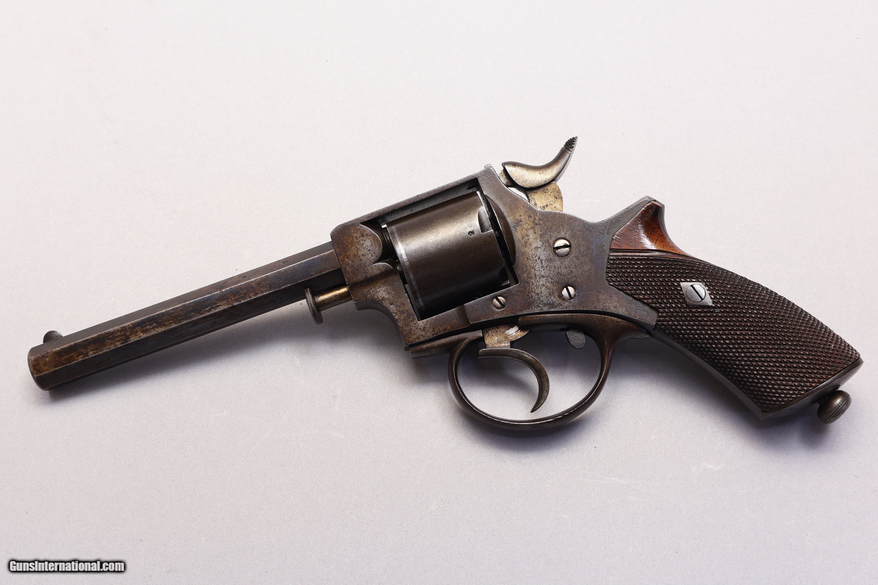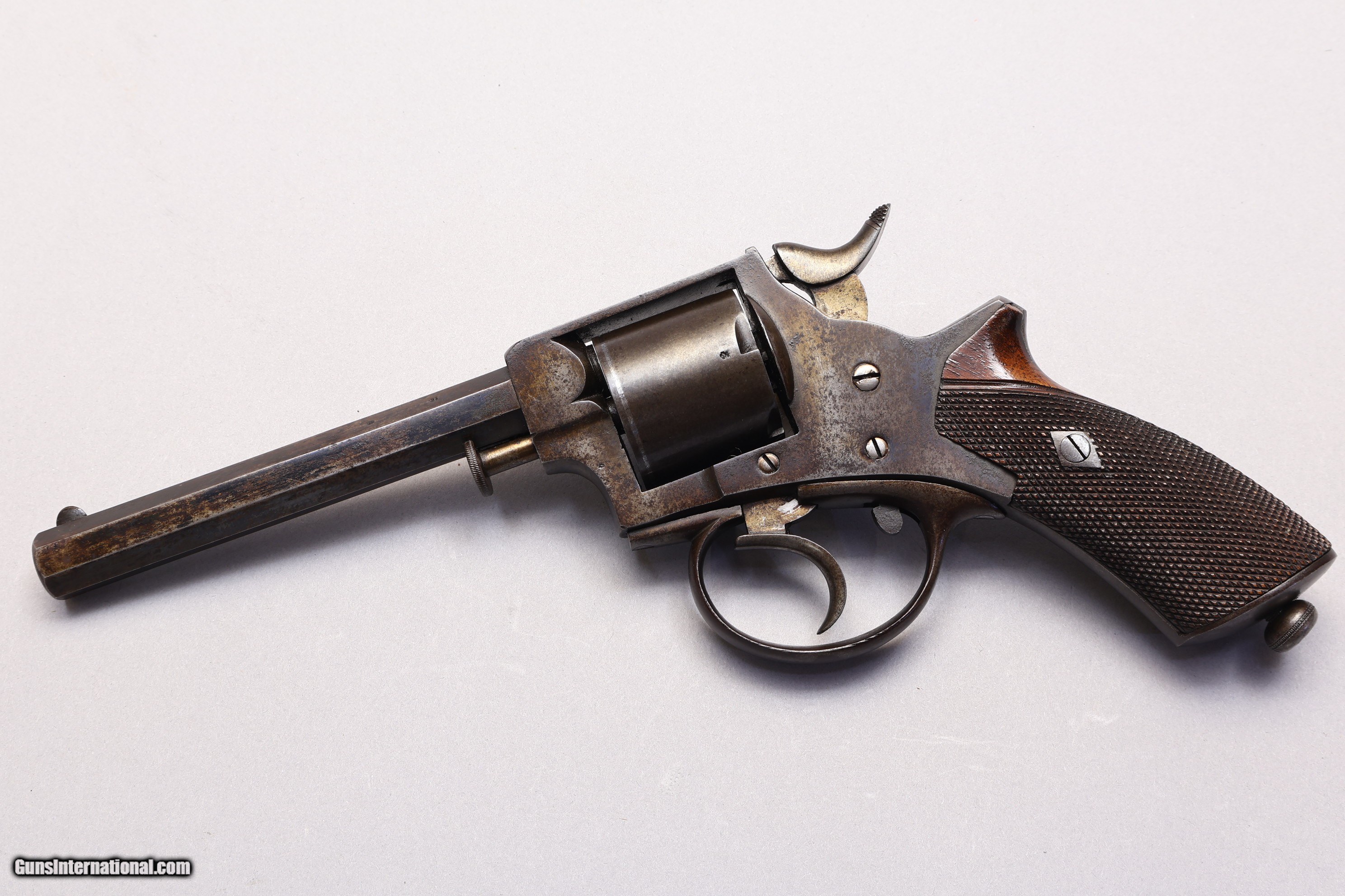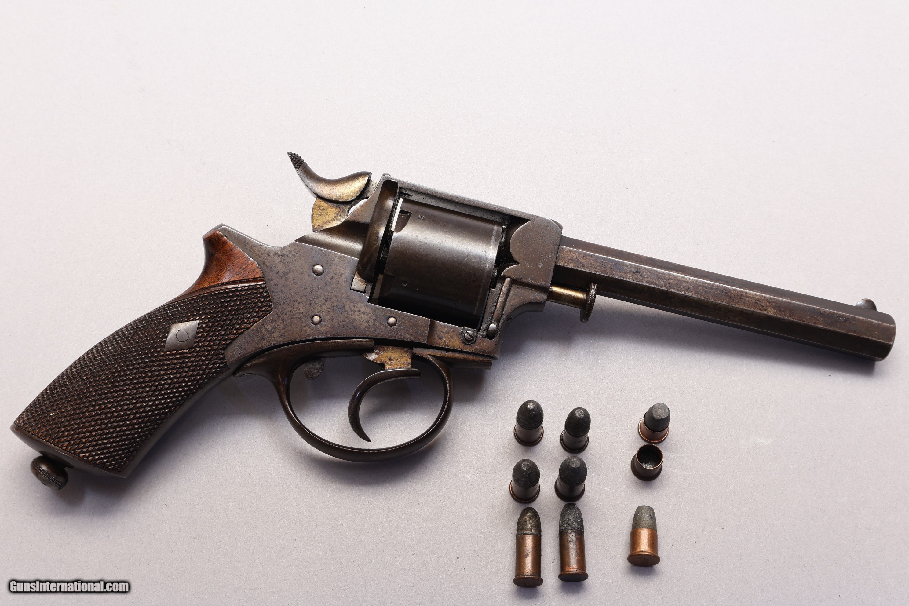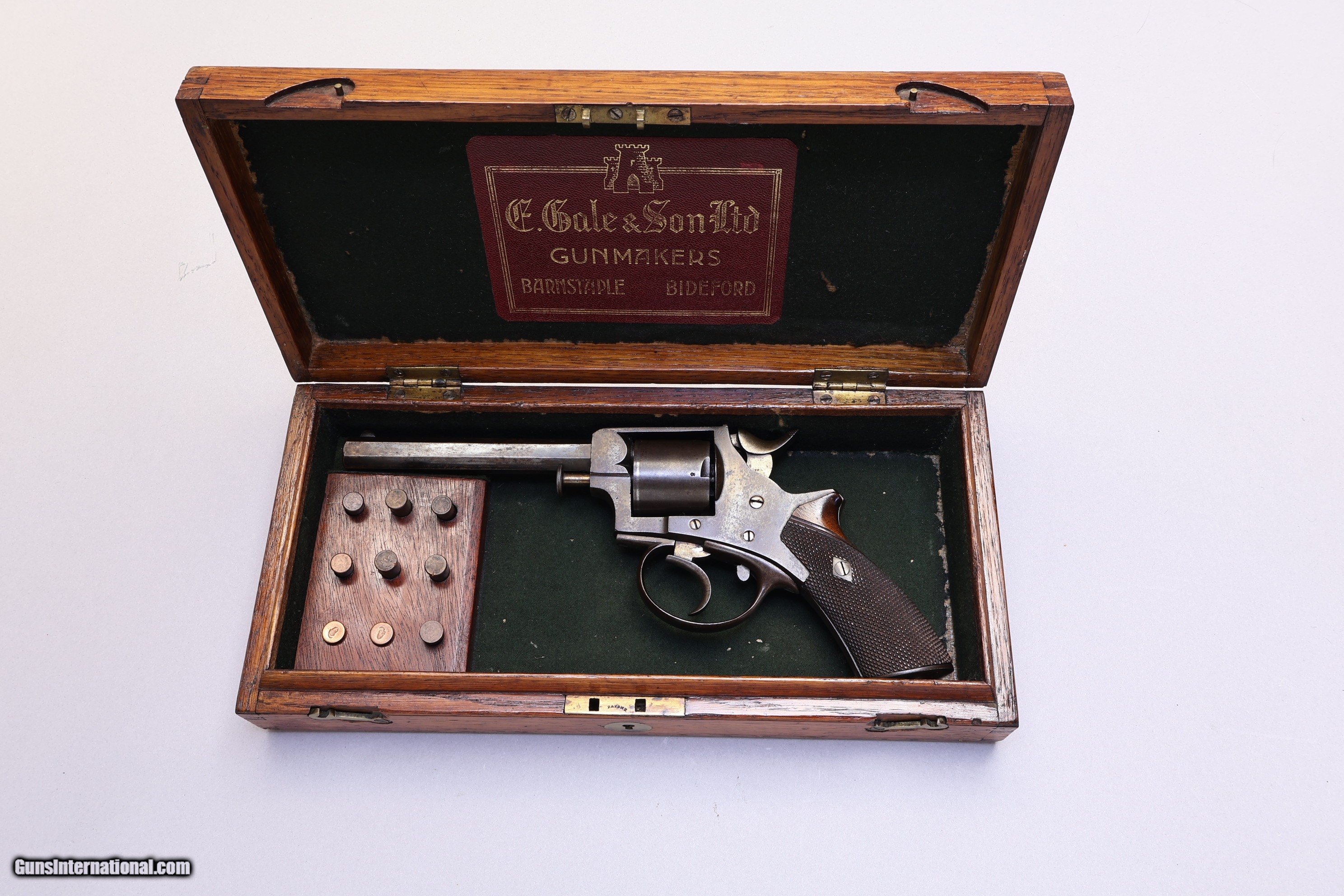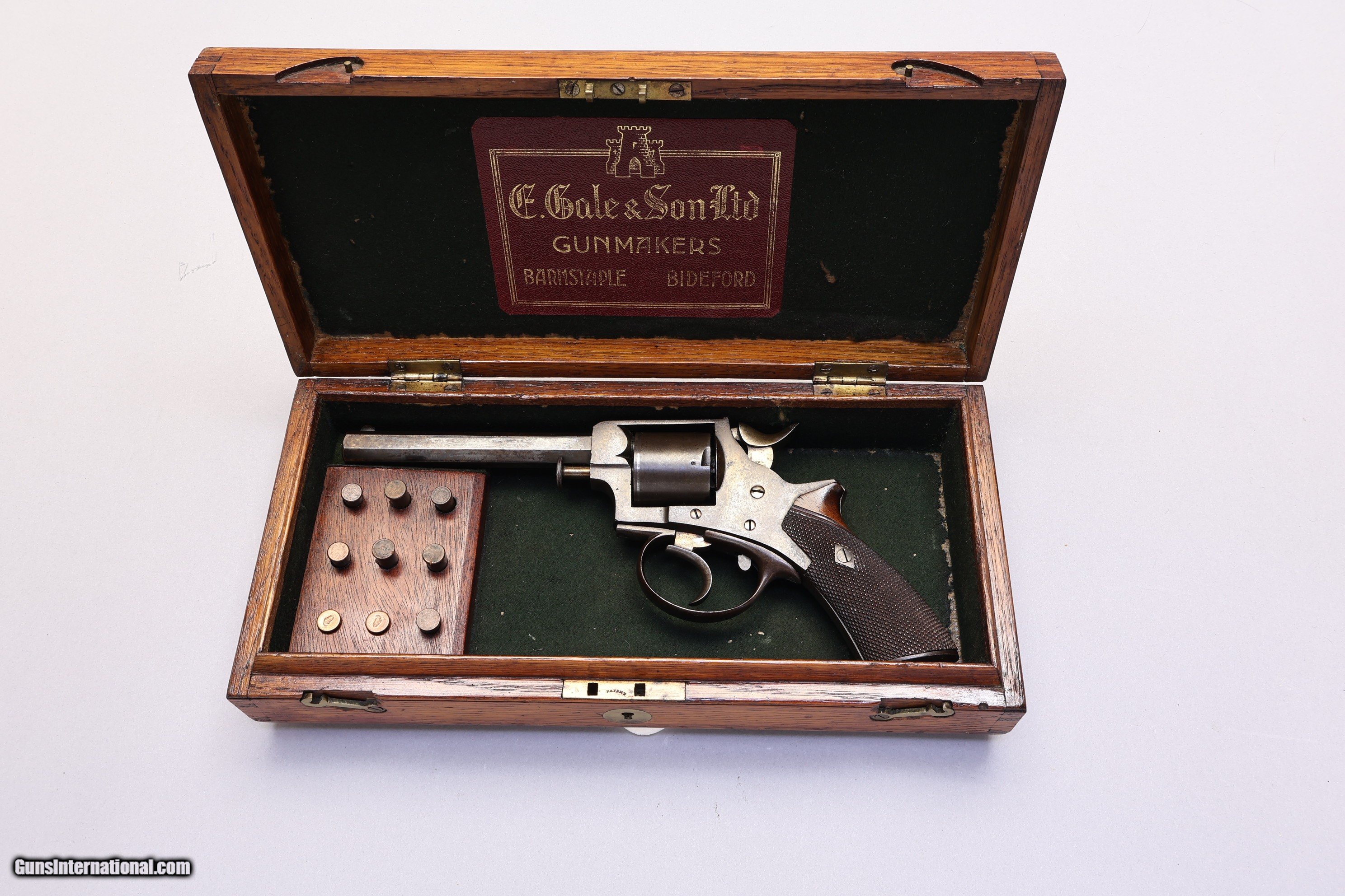 Description: Caliber / Bore / Gauge: .36 RImfire | Barrel Length: 6" | Overall Length: 9" | Country of Make: United Kingdom | Year of Make: 1870 Revolver, Rimfire from the United Kingdom, a late-Victorian pistol with a classic design and solid construction. Its traditional lines reflect the craftsmanship of the era and a reliable rimfire action. This specimen is historically associated with Bernard Denyer of Holborn, London, and is chambered in .36 Rimfire. It comes in a wooden case by Edward Gale & Son, with eight vintage rounds and one casing included. Notes indicate a 4 1/2 inch barrel, though the listed barrel length is 6 inches. Made in 1870 in the United Kingdom.