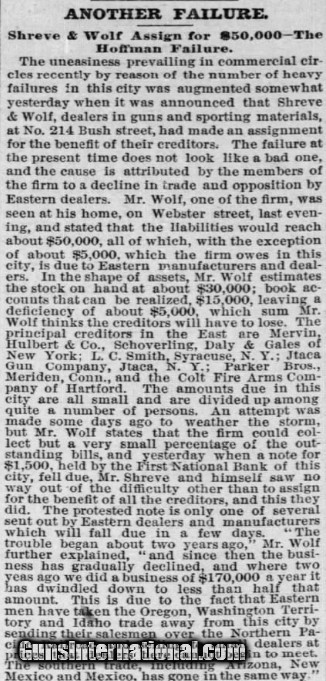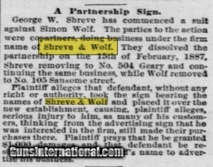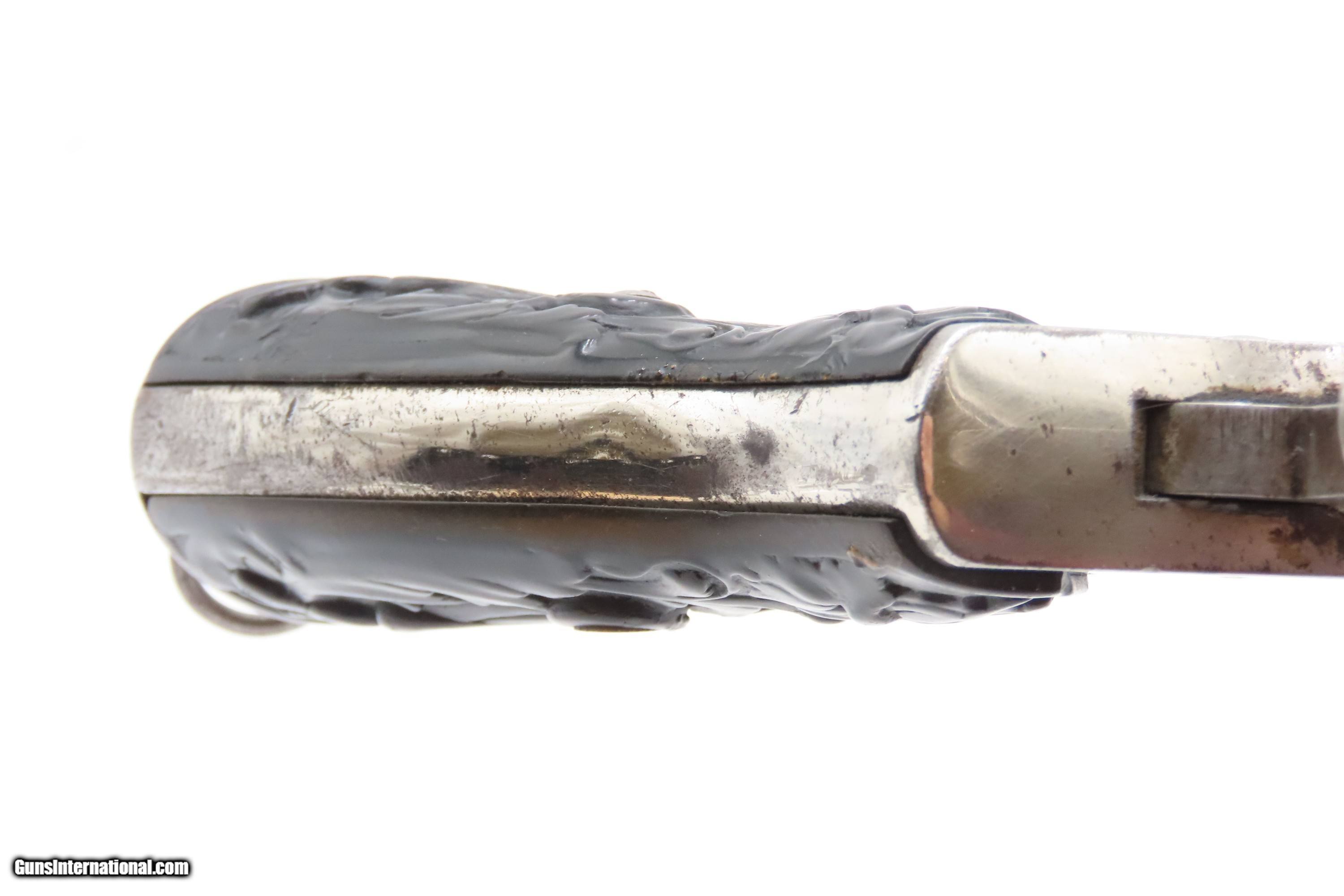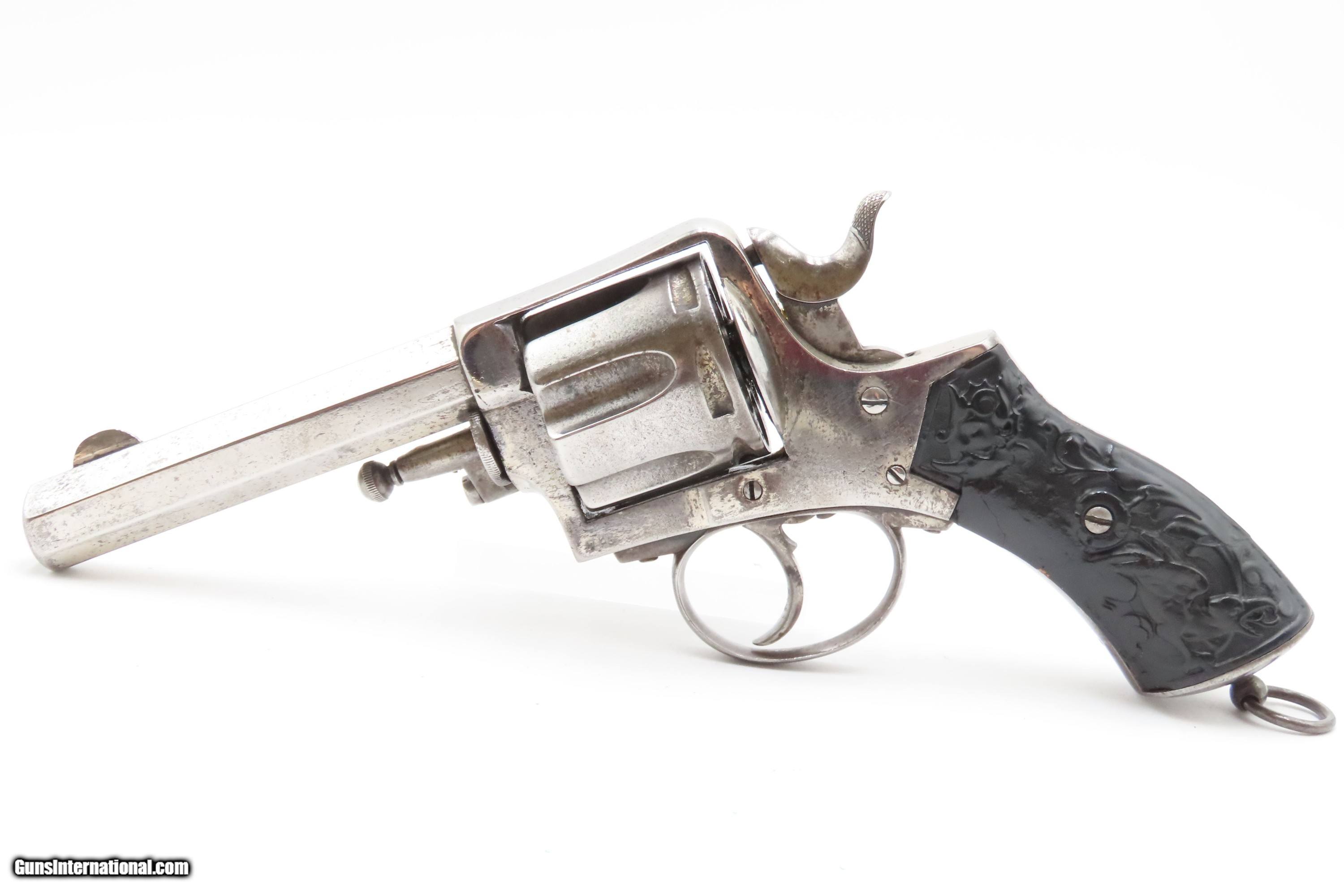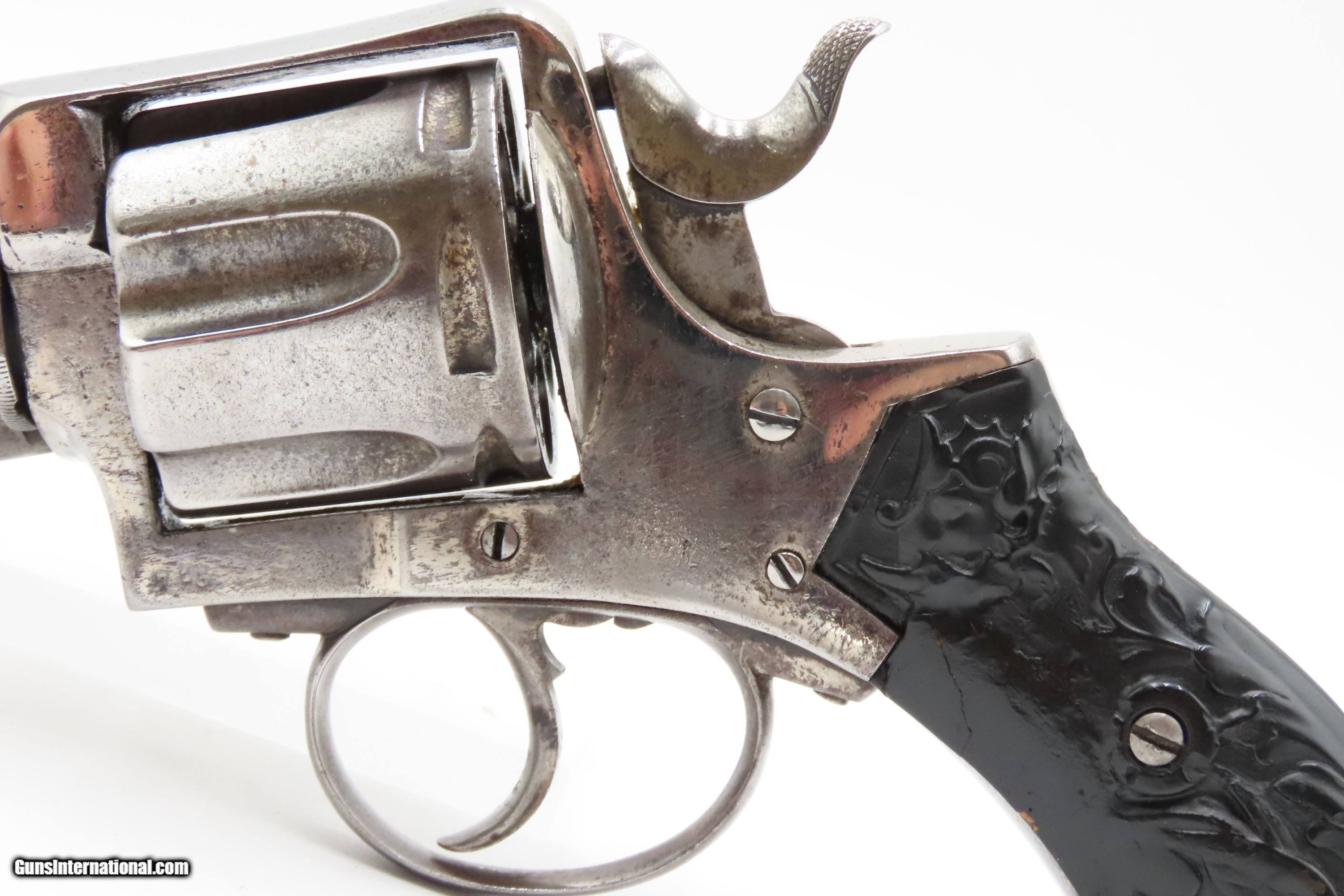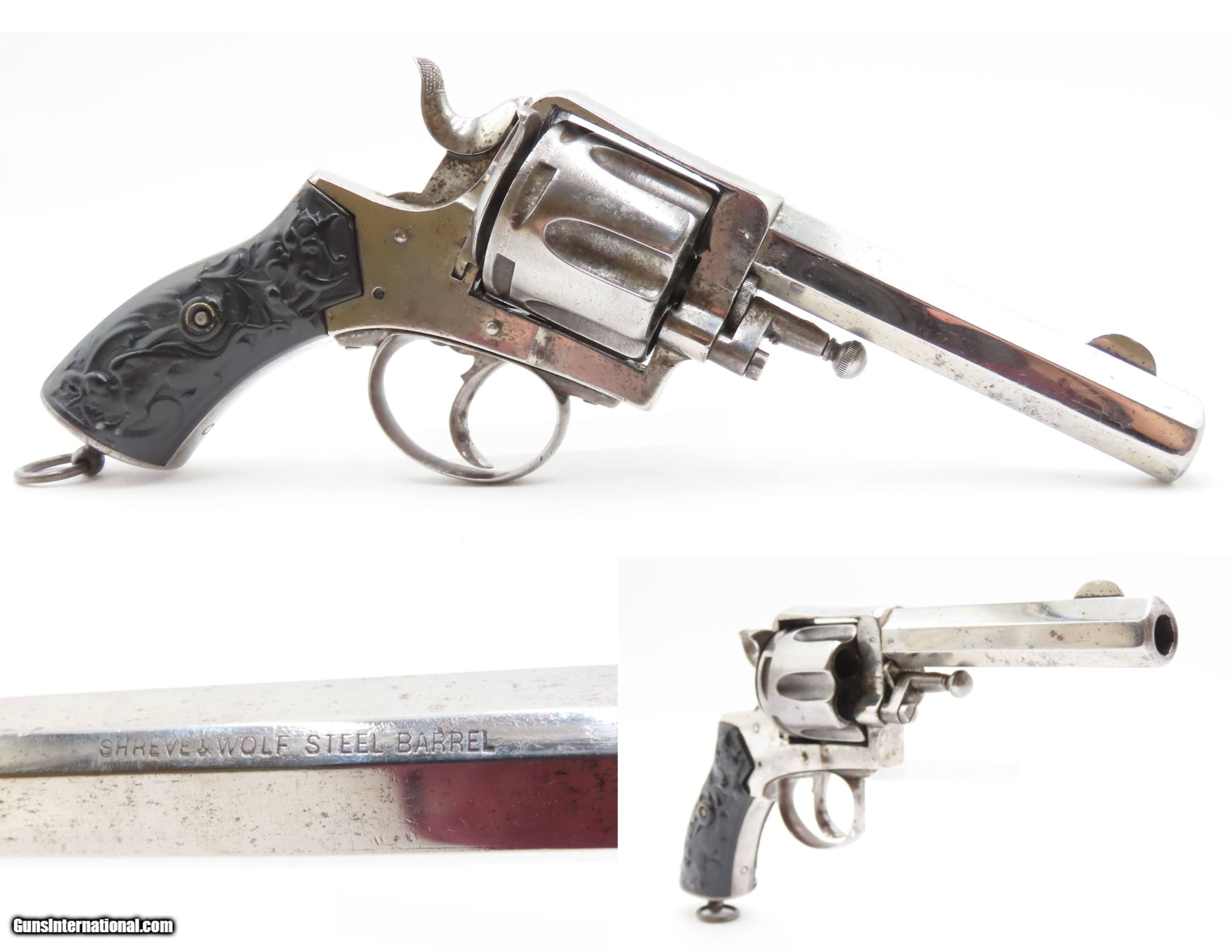 Description: c1880s SAN FRANCISCO, CA Antique SHREVE & WOLF BULLDOG Revolver .44 Caliber 19th Century Import from Belgium to California Here Ancestry Guns presents an antique Shreve & Wolf Bulldog Revolver, manufactured in Liege, Belgium circa the 1880s for Shreve & Wolf in San Francisco, California. There was a brief partnership of the firearms dealers at 214 Bush Street lasting between 1880 until October of 1886, at which time the business failed due to competitive pressures, according to one of the principals, George W. Shreve, when he was interviewed by The San Francisco Examiner outside of his home on Webster Street. In effect, the railroads and Eastern dealers did them in. He elaborated that the firm was used to selling to many customers both in the North, including Oregon, Idaho, and Washington, as well as in the South, such as Arizona, New Mexico, and even Mexico. In addition to importing guns from Liege, Belgium, they dealt in Colt, Parker, Merwin Hulbert, L.C. Smith, and others. Both Shreve and his old partner, Simon Wolf, went into business for themselves after the breakup, and Shreve went on to sue Wolf in April of 1887 for continuing to use the old signage, still with the Shreve name. The overall condition is good. Nice nickel finish. The action of the hammer and trigger are strong, though the cylinder indexing is sometimes intermittent. The bore is frosted and maintains serviceable rifling. The sculpted grips feature an elephant’s head at the top and a winged dragon-looking creature at the bottom, and are in good shape with the left having been repaired. Liege proofed. .44 caliber--.44 Russian fits and the chambers are straight walled, but the gun is not marked as to chambering. “SHREVE & WOLF” and “STEEL BARREL” marked on the top of the barrel. Also features a lanyard ring. This would have been an attractive piece for self-defense in the tumultuous West, and would have competed directly with the likes of the Colt Model 1877 and 1878 or the Smith & Wesson double actions of the day. Own the original! This is a legitimate antique and not a reproduction. Barrel is 4-1/2 inches. Caliber: .44 Centerfire (chambers .44 Russian) Overall condition as seen in photos. Very Fast. Very Safe. FREE SHIPPING WORLDWIDE. Delivered directly to your door by express mail! Guaranteed AUTHENTIC & Includes CERTIFICATE OF AUTHENTICITY. $1500 #259393 Antique: Yes Price: $1,500.00 Buy Now Pay with