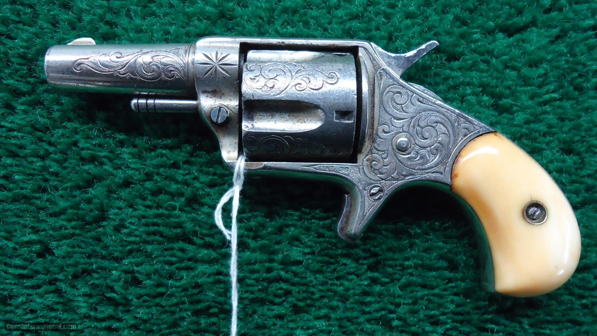 Description: Quite an interesting gun. Very elaborately engraved. Cal 38 RF. Ivory grips. Metal condition is very nice with about 90% original nickel remaining. Good functioning action. A scarce little gun. Leroy Merz Antique Firearms specializes in antique and vintage Winchesters and other fine American firearms. Since 1965 Mr. Merz has taken part in the world of firearms and has been a contributor to many well known reference books. Just recently we mailed the 128th edition of our privately-published catalog. We have hundreds of additional guns in every price range at our home online. Search for Merz Antiques in google. SOLD Antique: Yes |