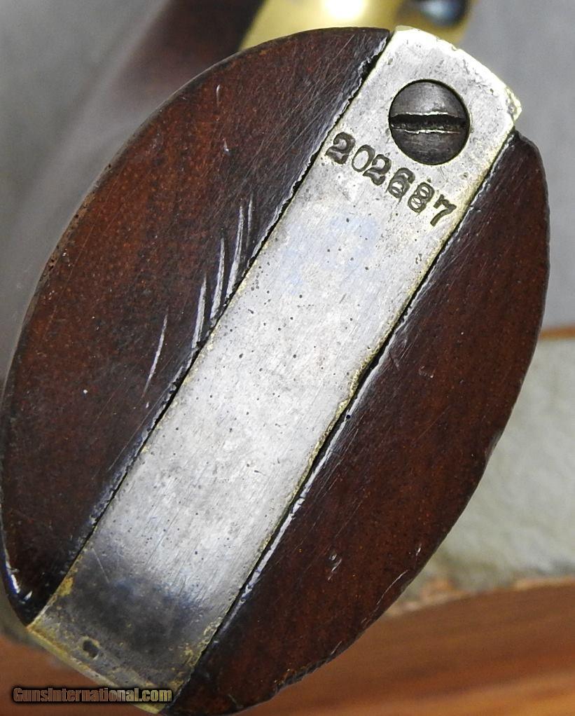 Description: This is a nice Colt 4” 1849 Pocket with serial number 202687 and is matching numbers. It is a 6 shot and was made in 1862. The mechanical function is very good, crisp and tight. The bore has strong rifling but does show some minor corrosion near the cylinder. It still retains over 65% blue, 95% cylinder scene, 50% case colors and over 93% grip varnish. The trigger guard and back strap still has 45% silver and most of the safety pins are still there. I would consider trades for pre 1899 ANTIQUE PISTOLS and rifles on any of my items.. WHAT DO YOU HAVE TO TRADE? Ask about our 30-90 day lay-away program. We accept Bank Check, Money order, Personal checks or wire transfer. SOLD Antique: Yes Manufacturer: Colt Model: 1849 Pocket Serial Number: 202687 Barrel Length: 4 |