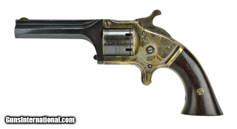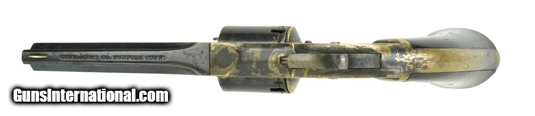 Description: Connecticut Arms Cup Fire Revolver. Made circa 1865. .28 Caliber cup primed cartridge with a 3” barrel. Condition is excellent. 97% of the original blue remains on the barrel. Frame has 97% of the original silver on the frame. Good case colors on the frame. Grips are excellent. The left hand side plate is marked “BAKER” scratched into the frame. Action works well. SOLD Antique: Yes |