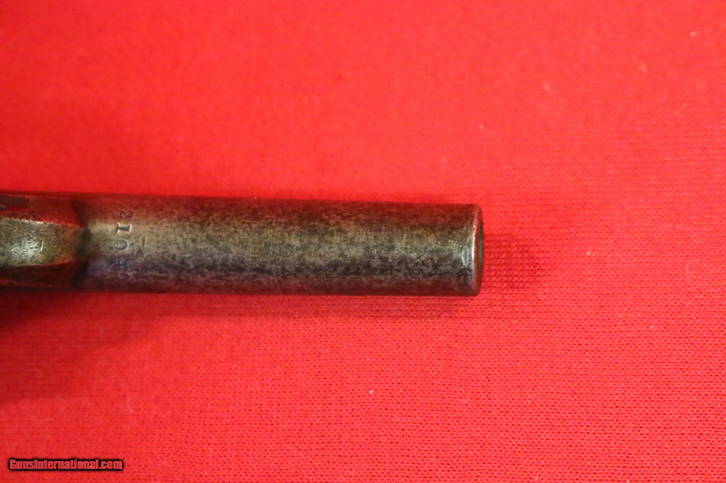 Description: Wendell Grangaard identified and attributed to Sleeping Rabbit. The identification and interpretation of the marking are the work and opinion of Mr Grangaard. Bio of Sleeping Rabbit indicates he was a member of the Crazy Dog society, participating in many battles of the era and having fought with Crazy Horse at Rosebud Sleeping Rabbit was a Northern Cheyenne. The Bio and Tioga interpretation are included with purchase of the revolver and make an interesting read. The gun is in overall good condition it exhibits period engraving , the revolver is missing the main spring but operators correctly otherwise. 7 shot 32 cal. Antique SOLD Antique: Yes |