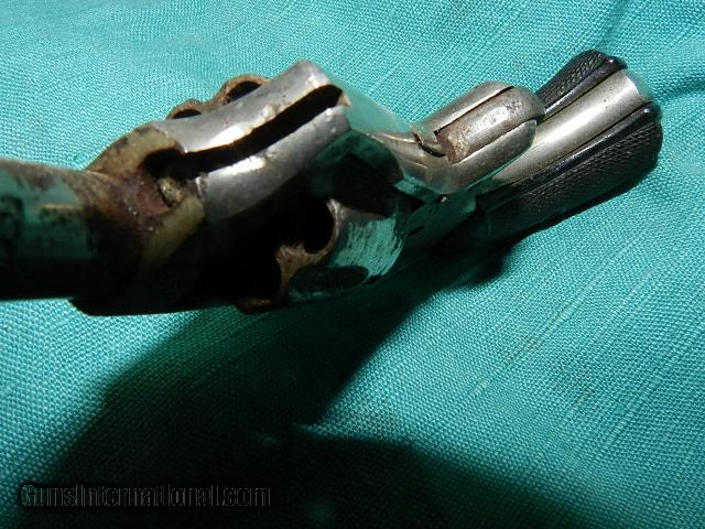 Description: A Defender spur trigger revolver for the .22 short cal. that is incomplete and sold for parts or restoration. Hammer cocks and holds trigger doesn't release, needs a trigger return spring, and looks like the cylinder hand is missing also. these were made by H&A and many were wade as Defender, and Defender 89. Cylinder doesn't turn as the cylinder pin is broken off, but cylinder can be turned by hand. The original black hard rubber grips are very good with an original screw. We don’t have asite .I prefer money orders or a check. Item ships when funds come in. If you can only pay with a card let me know. I hope you like my wide selection of unusual guns, knives and gun parts. I try to keep the prices affordable, which means I make less money than most dealers. I consistently have the best selection of older guns If you BUY IT NOW you must still contact us for details buy it now doesn't end the sale, it just sends an email telling us you want to buy this gun. A phone call won’t secure a sale! Not home many times, the first buyer by email buys the gun !Thissite doesnot close down a sale when you do a BUY IT NOW like Ebay!I can get six buy it nows in an hour, first buyer to email gets the guns, others are in second place! Best to send another email . Sometimes not home to get calls. Some guns are required shipment to a gun dealer near you for a transfer to you when it arrives. With the widest selection of older guns at great prices, We don’t have a store, and sell on the internet only. SOLD Antique: Yes |