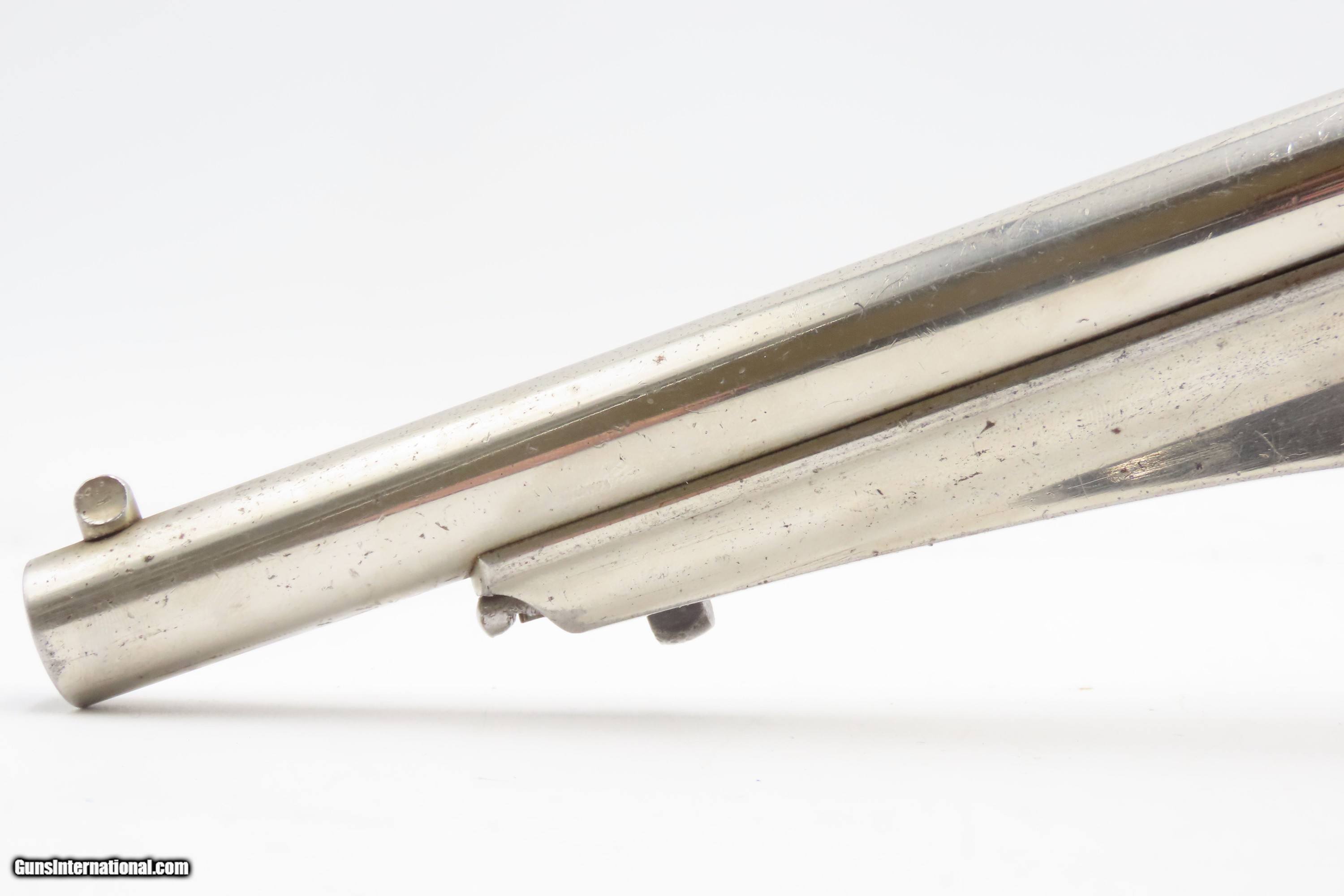 Description: DESIREABLE Antique REMINGTON M1875 .44-40 WCF Single Action ARMY Revolver JESSE and FRANK JAMES Revolver of Choice Here Ancestry Guns presents an antique Remington Model 1875 Single Action Army Revolver, also known as the “Improved Army” or the “Frontier Army”, made in Ilion, New York circa 1882-83. The Model 1875 followed the form of the successful Model 1858 which saw widespread use and acceptance during the American Civil War. It kept the 1858’s use of a top-strap frame which led to increased structural strength when compared to the competing open frame Colts from that period. The 1875 was specifically developed around the use of metallic cartridge ammunition. It was supposed to be Remington’s answer to the hugely popular Colt .45 SAA, better known as the “Peacemaker” and represented Remington’s first dive into the metallic cartridge revolver market. Ordinary citizens and Old West lawmen alike recognized the sturdy quality of the new Remington revolvers. The Model 1875 was actually pretty late to the game by some two full years as the Colt Peacemaker had already found favor with the U.S. Government through Army bound contracts. Because of this, production totals reached only around 25,000 to 30,000 revolvers with a manufacturing period ranging from 1875 into 1889. They were manufactured in three different chamberings, which were .44 Remington Centerfire, .44-40 WCF, and .45 Colt. These were not optional, rather, the caliber of production models was determined by their date of manufacture. Frank and Jesse James both owned and used Model 1875s, at least two of which still exist. Frank’s No. 5116 and Jesse’s No. 559. These revolvers were made in “batches”. Because of duplicate numbering in subsequent batches, serial numbers alone will give you no indication for the date of production. Sometime after the 14,000th revolver was manufactured, Remington introduced the revolver in .44-40 WCF caliber. To distinguish between the .44 Remington Centerfire and the .44-40 WCF calibers, the latter was stamped on the left grip with a plain “44” and later with a “44W” for Winchester. When the final version was introduced around 1882, the caliber mark was then placed on the left rear of the trigger guard bow. When the new firm of Remington Arms Company introduced the Model 1890, the caliber marking was changed to 44 WCF. The overall condition is fine. Original nickel finish is preserved. Excellent action. The bore has dimmed and holds a textured appearance with serviceable rifling. Both replacement grips are fine with light handling evidence. Markings are sharp. Own the original! This is a legitimate antique and not a reproduction. Barrel is 7-1/2 inches. Caliber: .44-40 Winchester Center Fire Overall condition as seen in photos. Very Fast. Very Safe. FREE SHIPPING WORLDWIDE. Delivered directly to your door by express mail! Guaranteed AUTHENTIC & Includes CERTIFICATE OF AUTHENTICITY. $6000 #259430 Antique: Yes Price: $6,000.00 Buy Now Pay with