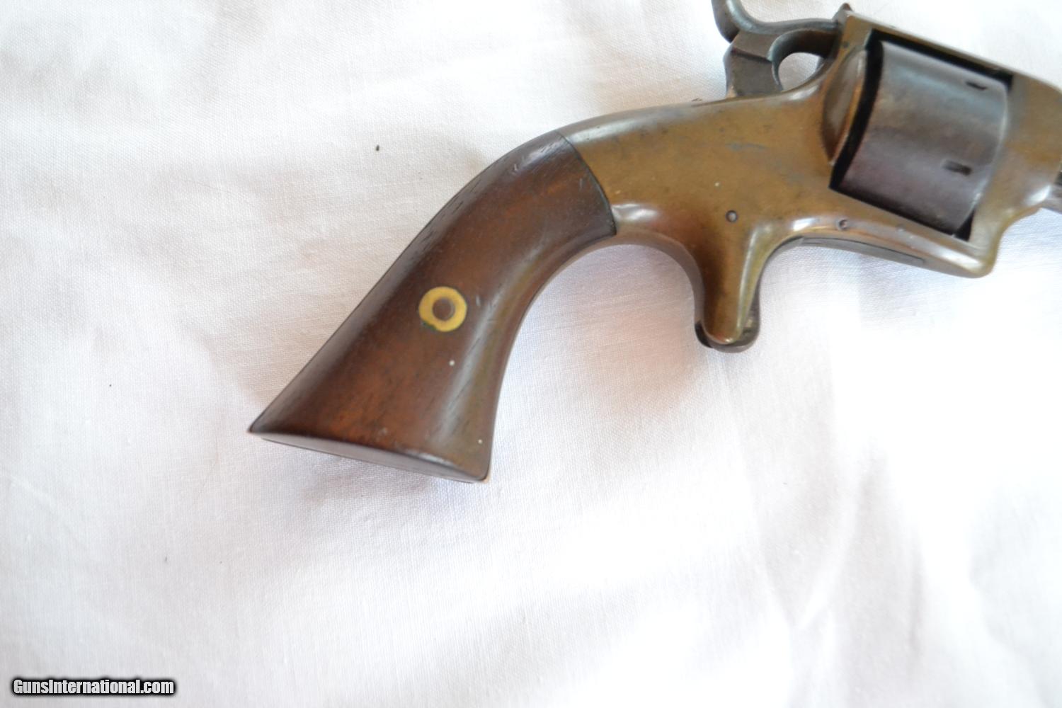 E A Prescott pocket revolver long frame, .32 rimfire (6 shot) with 4" bbl. and blue/brass finish, 1862 All original Family owned excellent condition