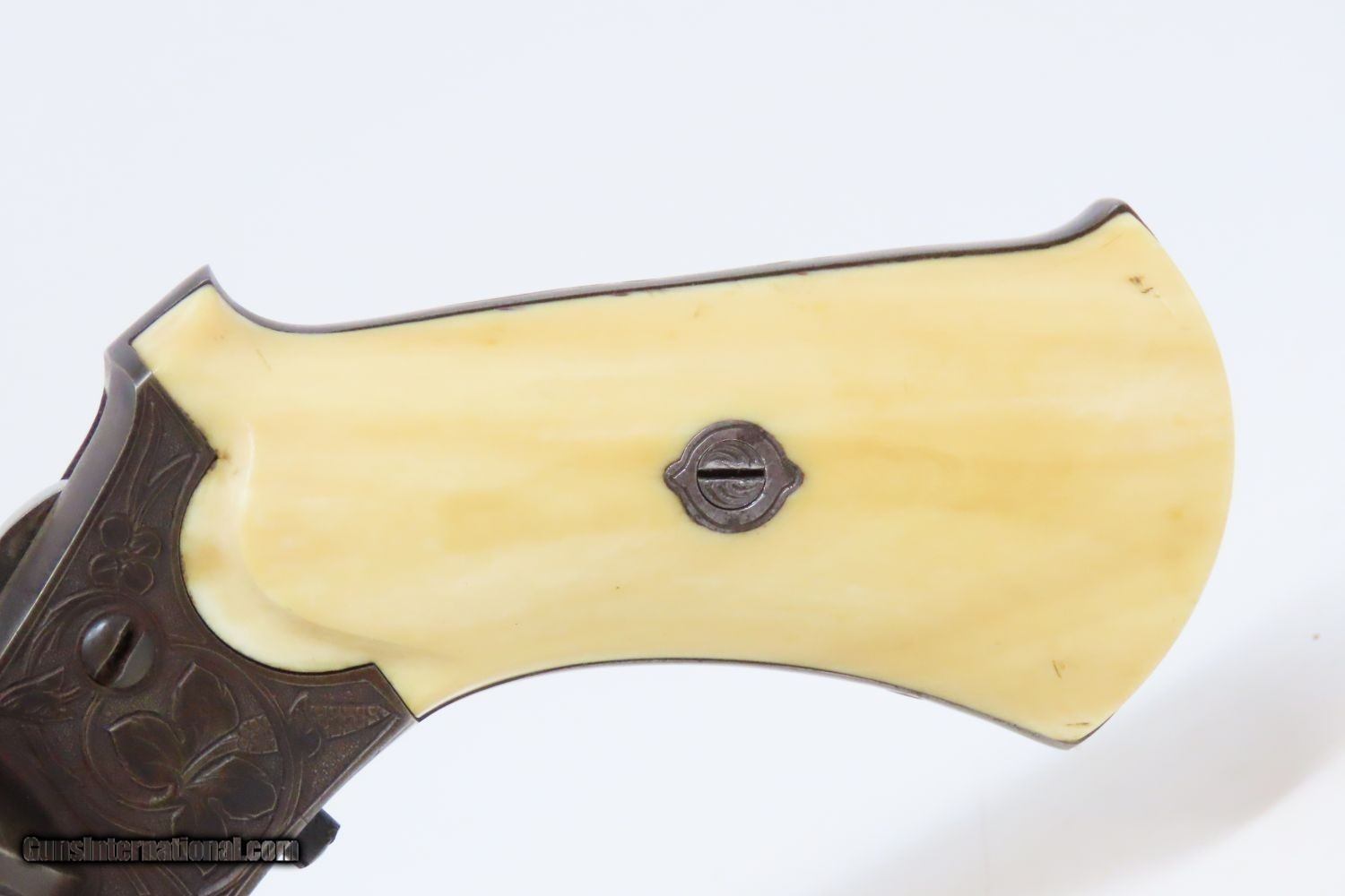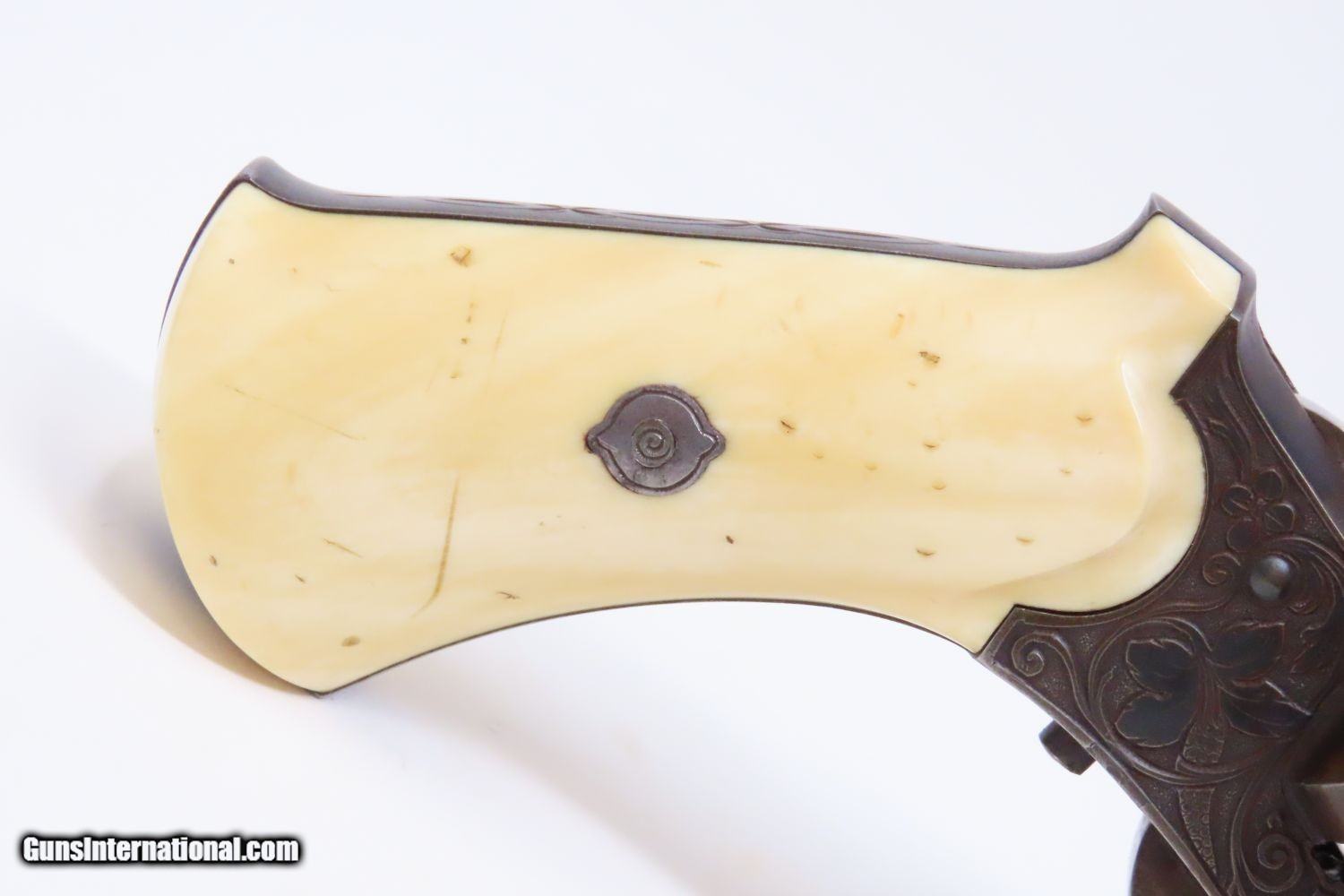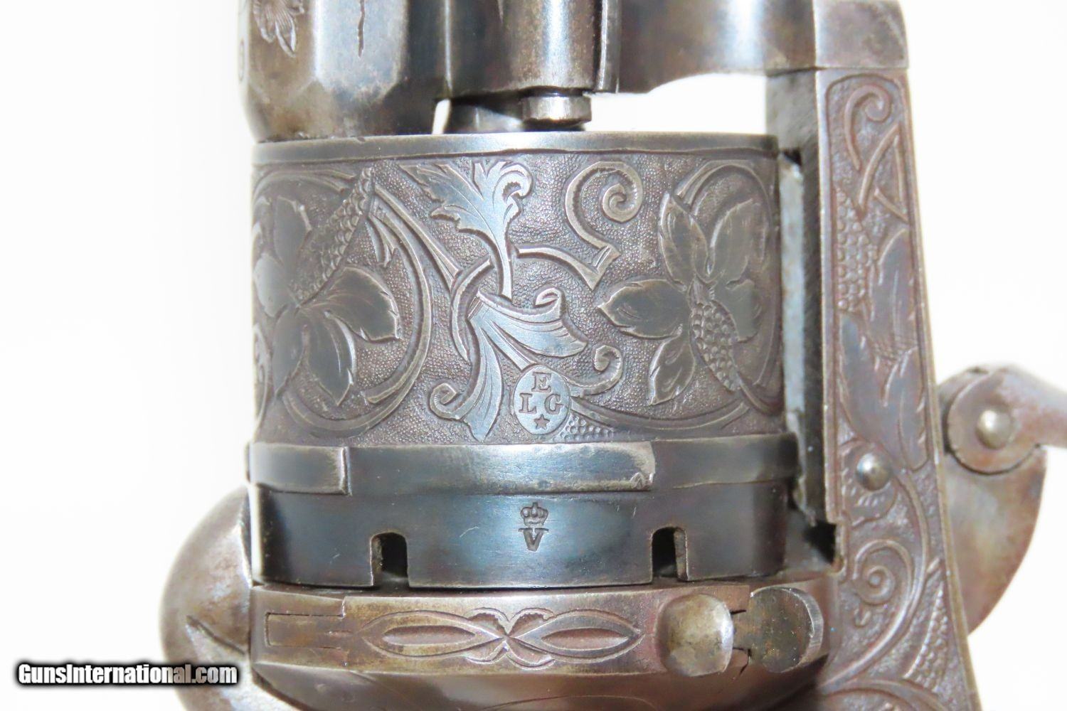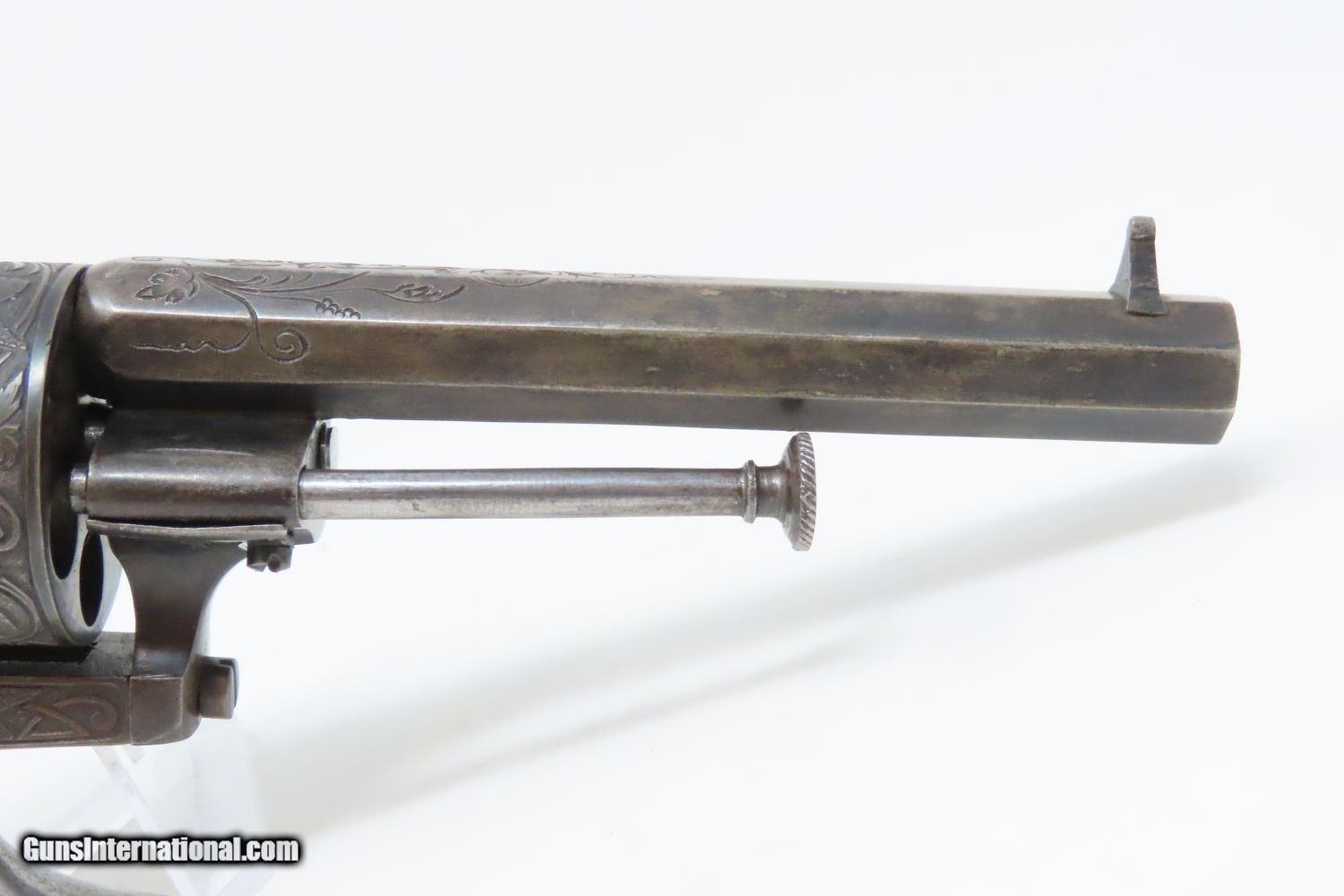 ENGRAVED Antique BELGIAN Proofed 9mm PINFIRE Revolver with PIPE CASE Folding Trigger European Sidearm with ANTIQUE IVORY GRIPS!