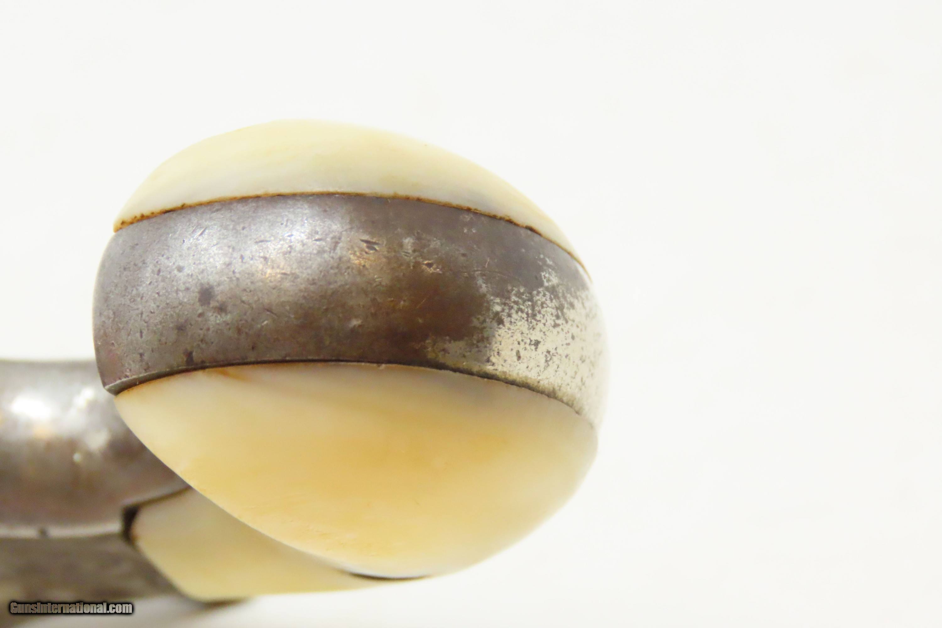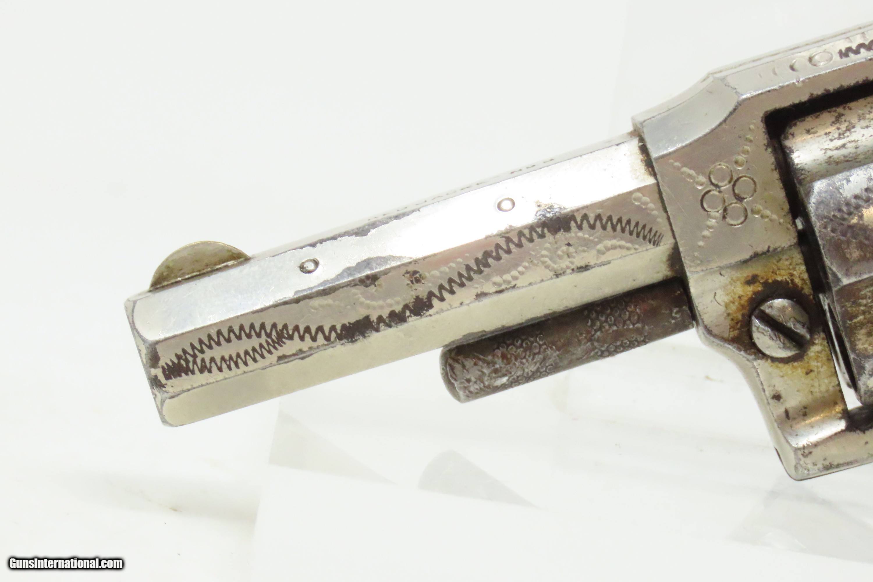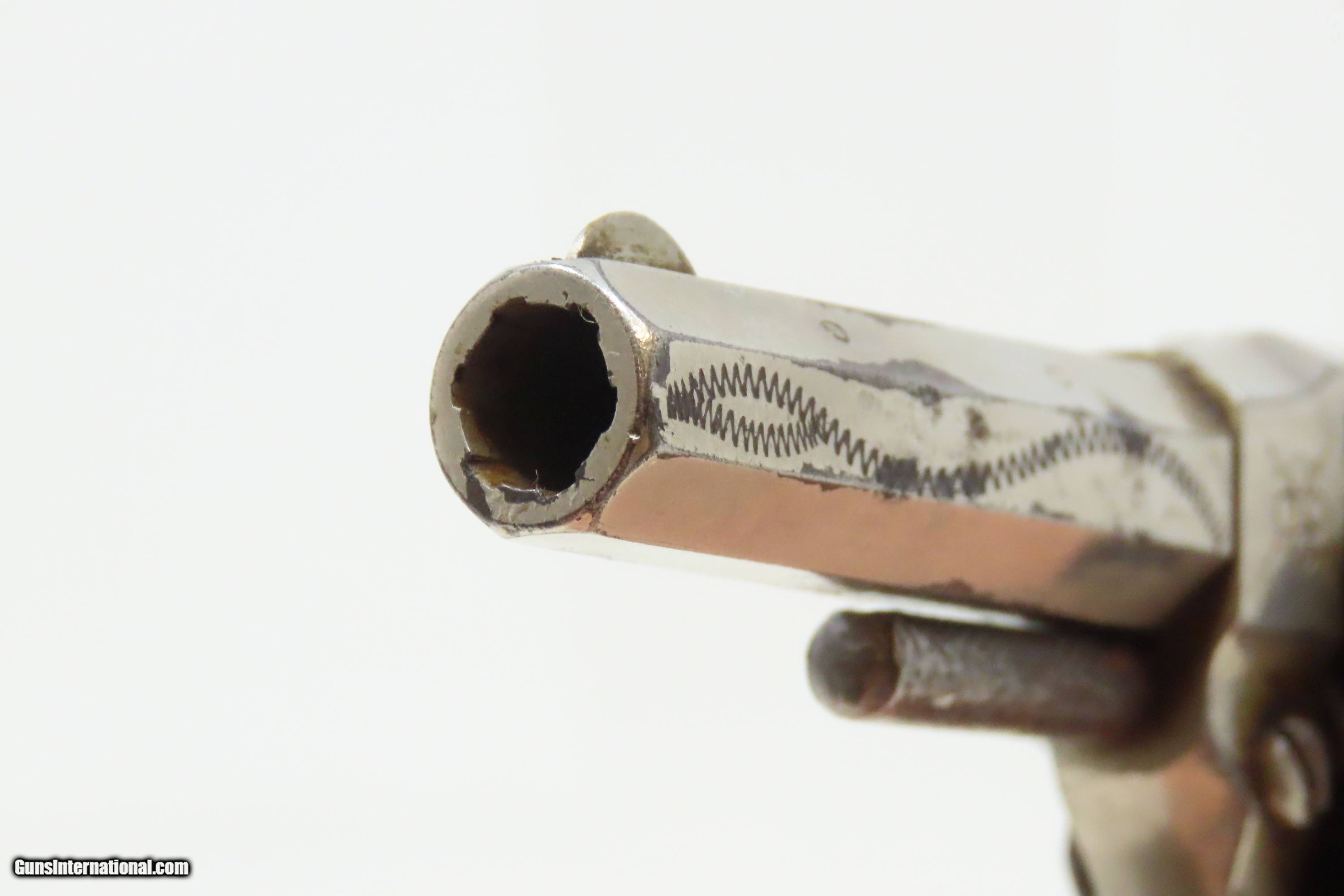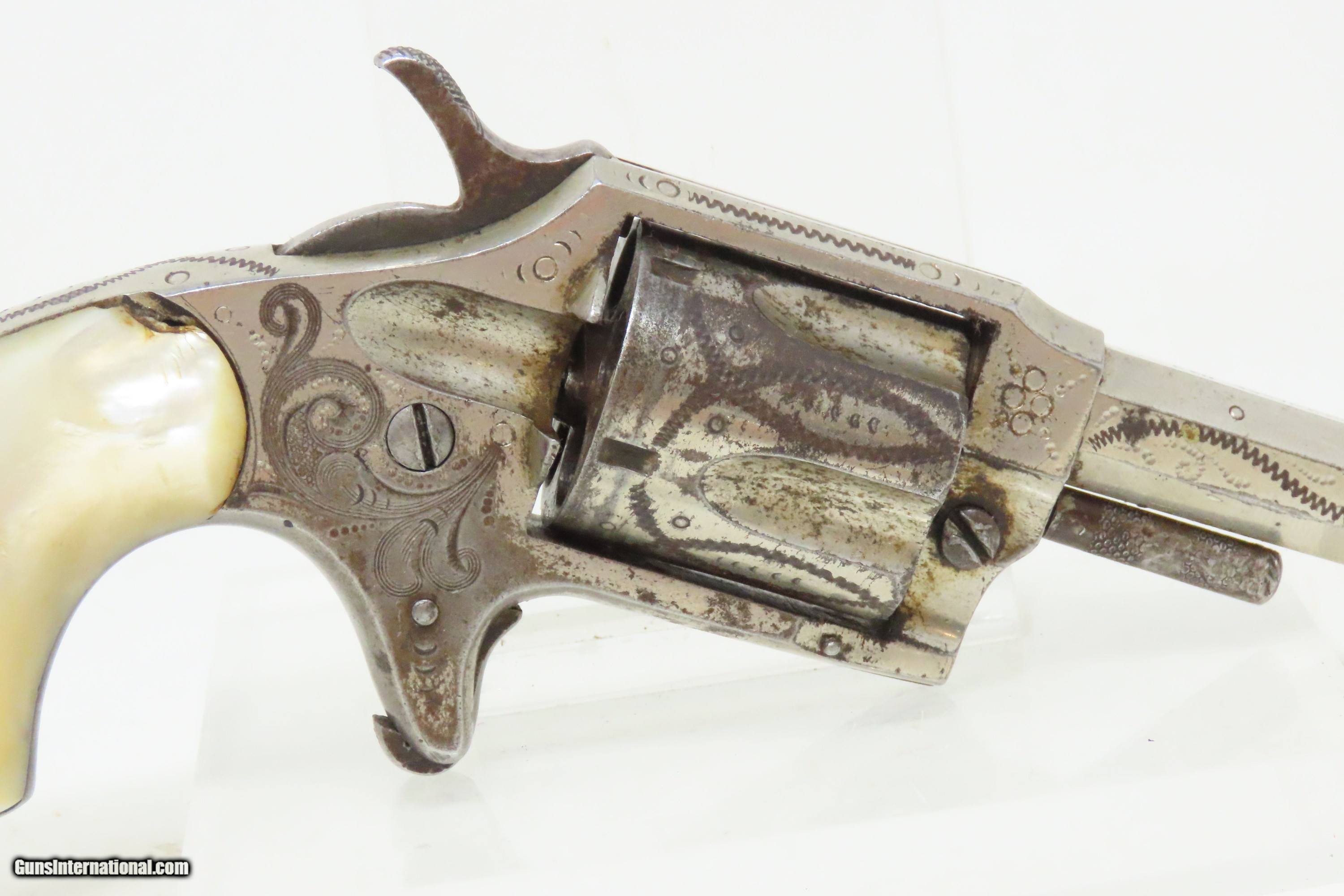 Description: ENGRAVED Antique LEE ARMS COMPANY “RED JACKET” No. 3 Spur Trigger Revolver Wild West Sidearm with PEARL GRIPS! Here we present an antique Lee Arms Co. “Red Jacket No. 3” Spur Trigger Pocket Revolver, made circa 1877 to 1880 in Wilkes-Barr, Pennsylvania. These pocket-sized revolvers and many like them were made by various companies such that the price easily undercut better known and established companies like Colt. As a result, many of Colt’s similar lines were shut down for their inability to compete. During a time when many, if not most people carried a firearm, these affordable little revolves were small enough to conceal and carry, yet provide some level of protection or peace of mind, even when the town did not allow firearms within its limits. Sometimes the name on this revolver causes confusion. "Red Jacket" was a brand name used by both the Lee Arms Company of Wilkes-Barre, PA and Hopkins & Allen. But this little .32 rimfire is marked as a Red Jacket No. 3, a designation used only by the Lee Arms Company from 1877 to 1880. The overall condition is good. Original nickel finish. Good bore for its age. The action does not function. Both pearl grips are in good shape with a small chip missing from the right side. Legible markings. The cylinder pin can be removed without pressing the release. This is a legitimate antique and not a reproduction. Barrel is 2-1/4 inches. Caliber: .32 Rimfire Overall condition as seen in photos. Very Fast. Very Safe. FREE SHIPPING WORLDWIDE. Delivered directly to your door by express mail! Guaranteed AUTHENTIC & Includes CERTIFICATE OF AUTHENTICITY. ancestryguns $1000 #240817 SOLD Antique: Yes |