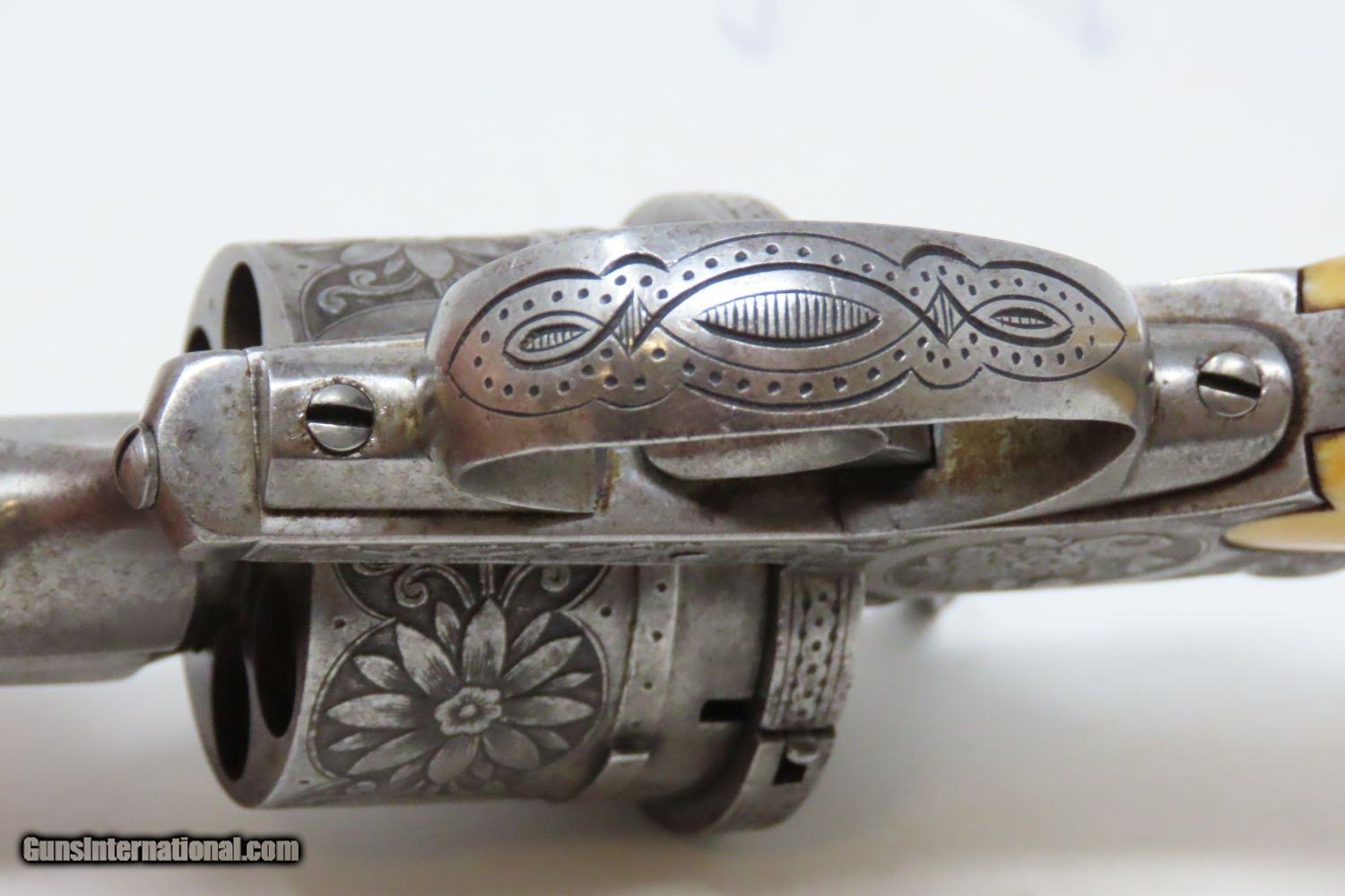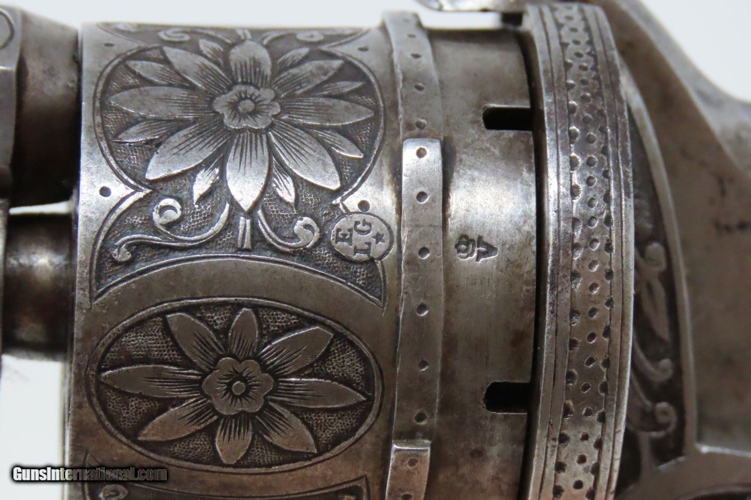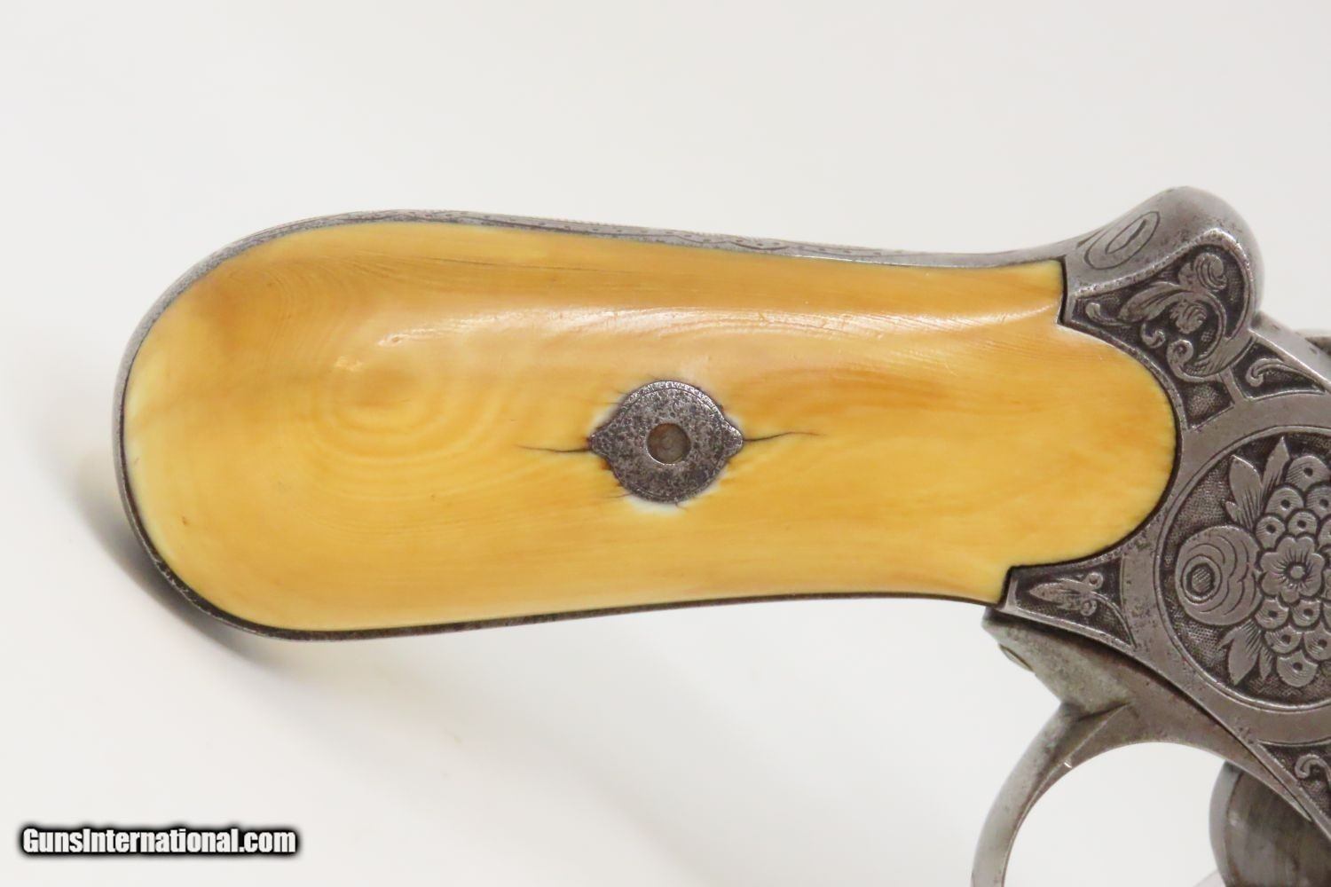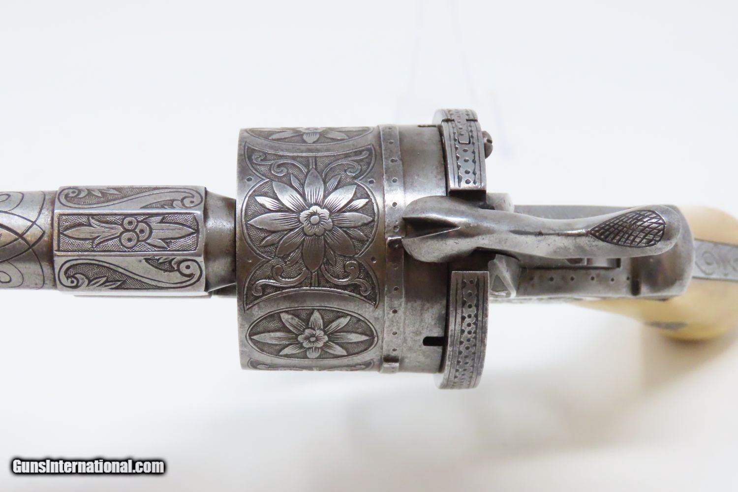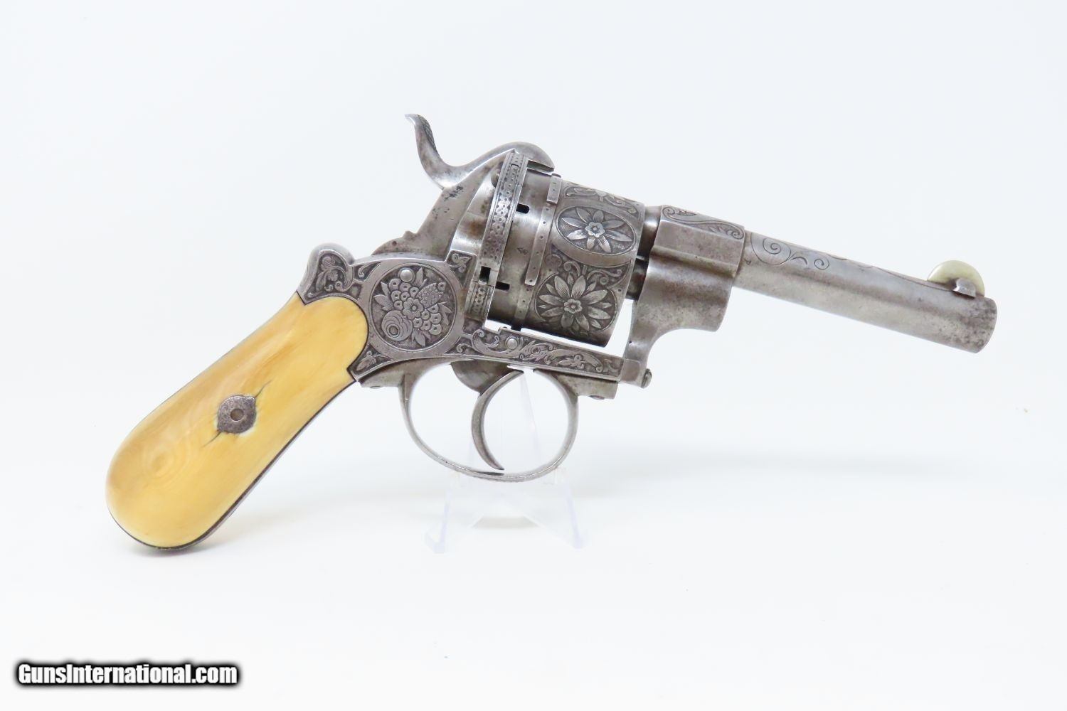 ENGRAVED, IVORY GRIPPED European Antique PINFIRE REVOLVER Double Action Liege Proofed Mid-19th European Sidearm