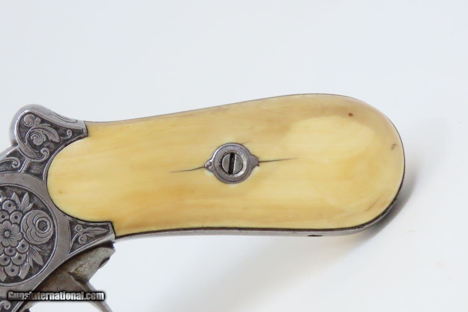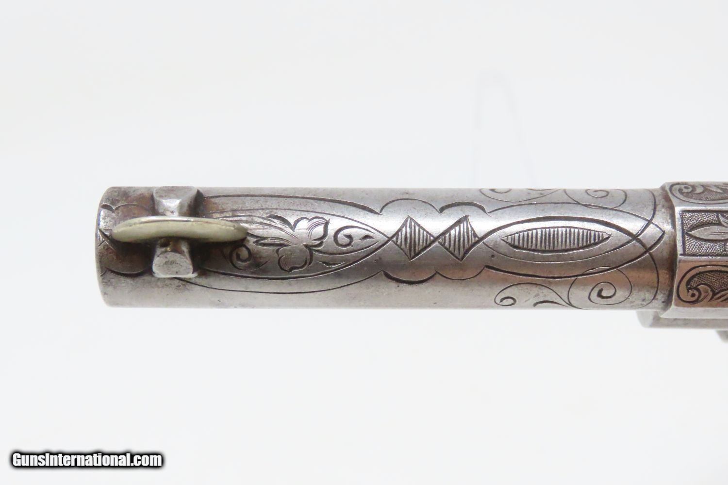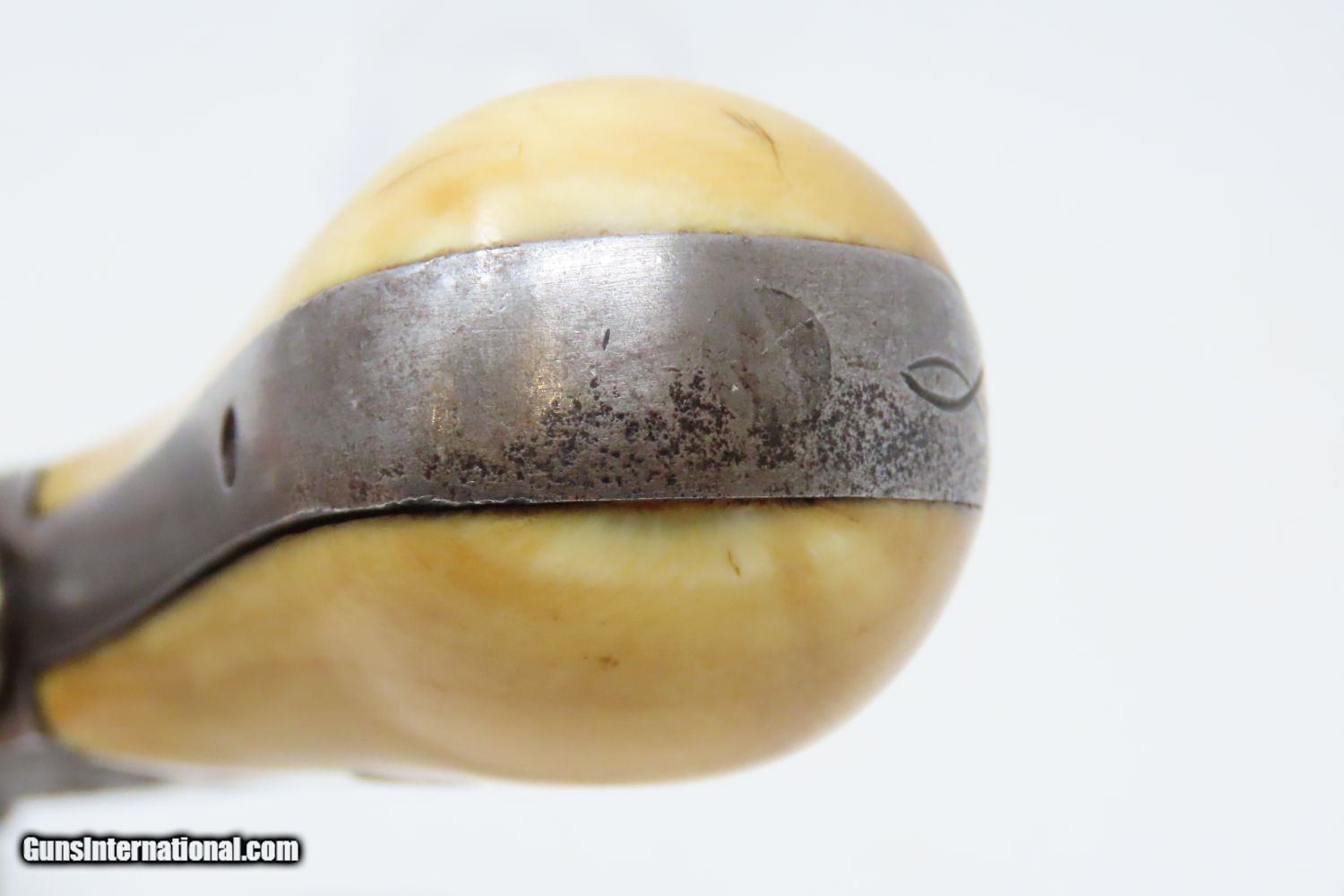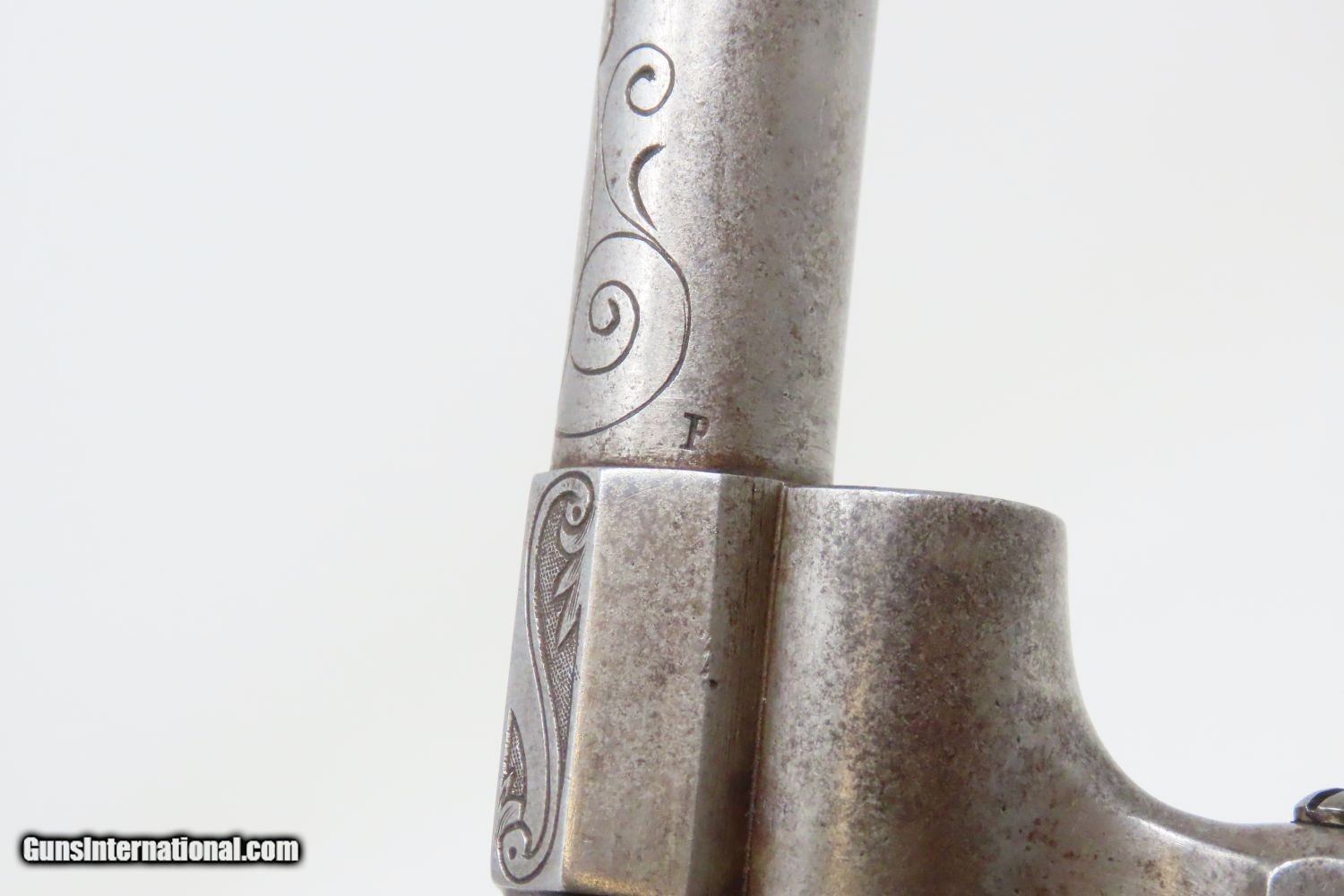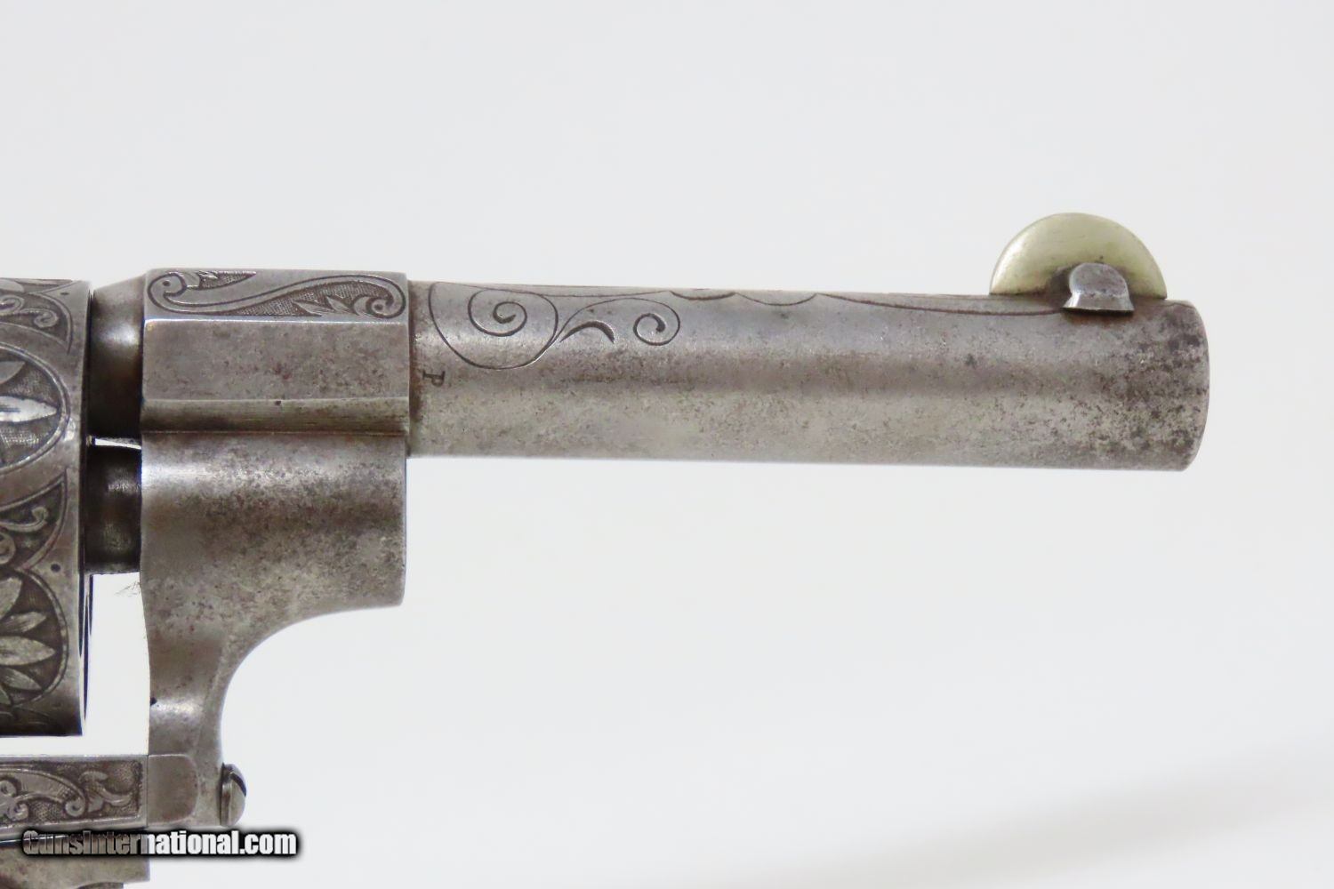 ENGRAVED, IVORY GRIPPED European Antique PINFIRE REVOLVER Double Action Liege Proofed Mid-19th European Sidearm