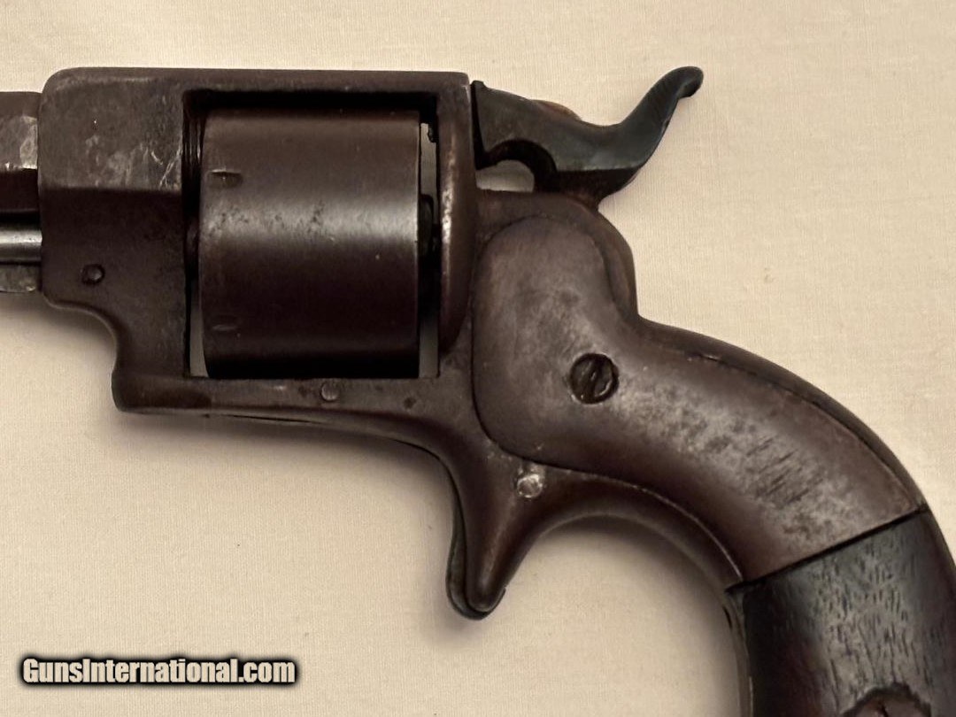 Description: Best for parts or simple display as it has a repaired hammer, cleaned oxidation on exterior and pitted bore. Bolt stop works but seldom rotates the cylinder. Hammer cocks and stays. Replacdement cylinder pin; missing spring for its latch. There are no visible markings. Sold as is with no returns or inspections; please ask any questions before buying. Shipped only from my FFL to yours. I know it is antique. How your FFL dispenses it is not under my control. Antique: Yes Handgun Caliber: .32 Rimfire Manufacturer: Ethan Allen Model: Side Hammer Serial Number: 847 Barrel Length: 4 Chambers: good Condition: fair Metal Condition: fair Wood Condition: fair Bore Condition: pitted Barrel Type: Octagon Action: Single Triggers: Spur Stock: Rosewood Sights: Dovetailed brass Manufacture Date: 1850's to 1860's Price: $200.00 Shipping: $25.00 Buy Now Contact Seller |