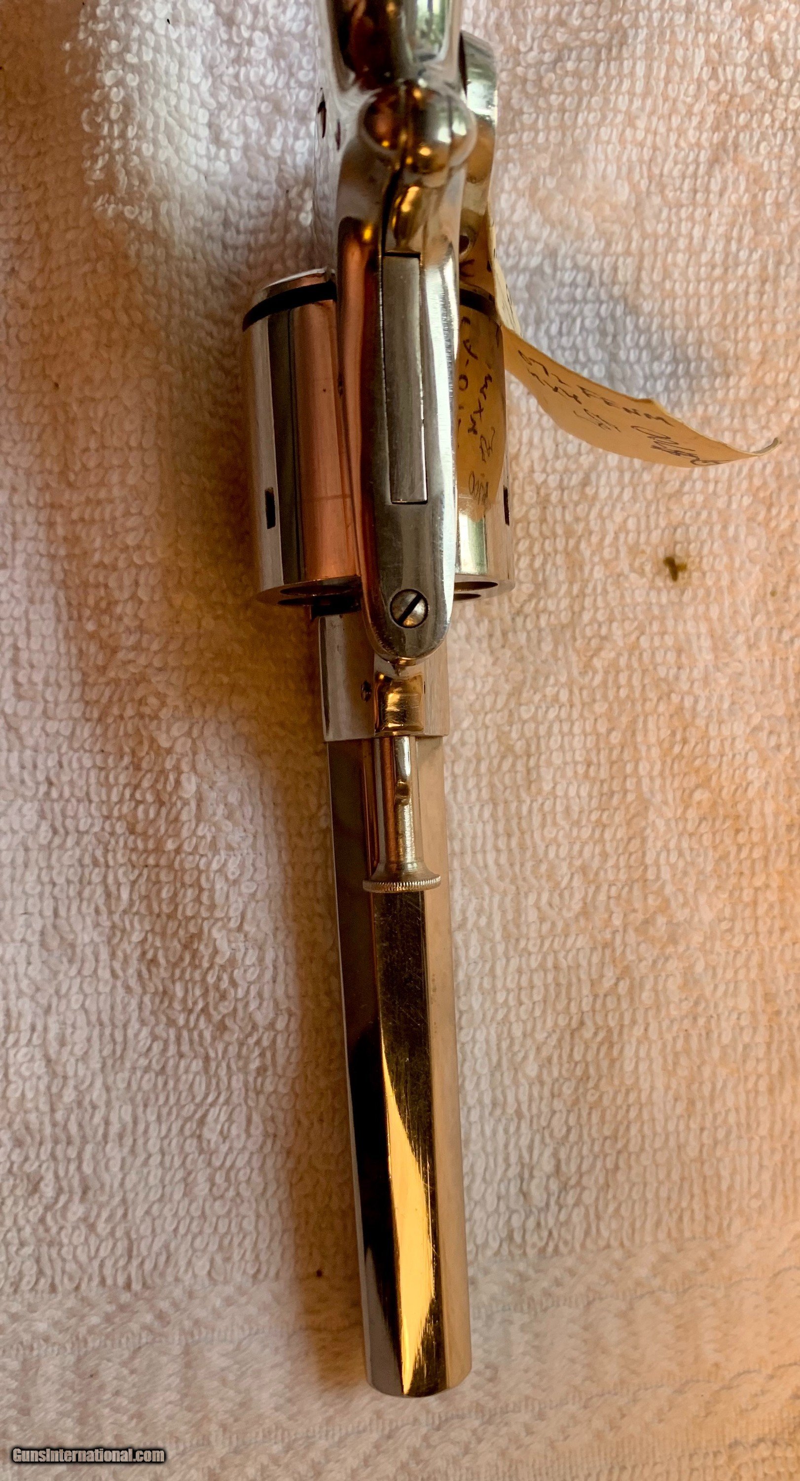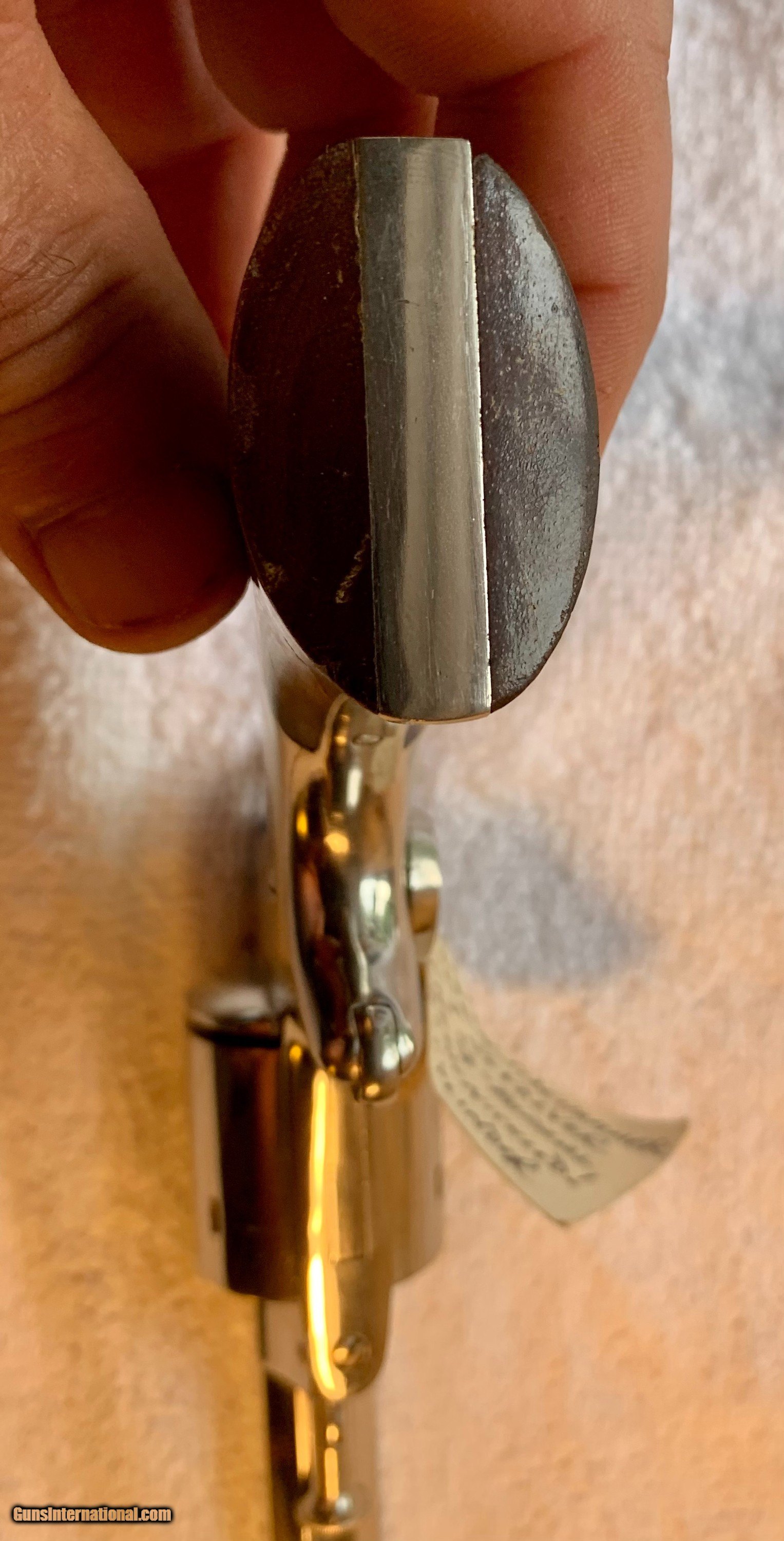 Description: Factory nickel and shows as new, .32 caliber, all mechanics function as they should and tight, 3 7/8" barrel, 3rd model 1 1/8" cylinder SOLD Antique: Yes |