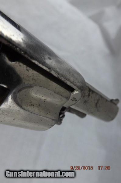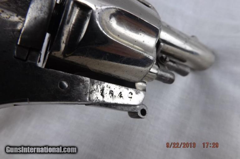 Description: Unknown maker european folding trigger revolver. Very nice pearl grips. Nickel is over 90% SOLD Antique: Yes Manufacturer: Unknown Serial Number: 1642 Caliber Info: 38? Condition: Fine Barrels: 1 3/4 Stock: Pearl Finish: Nickel |