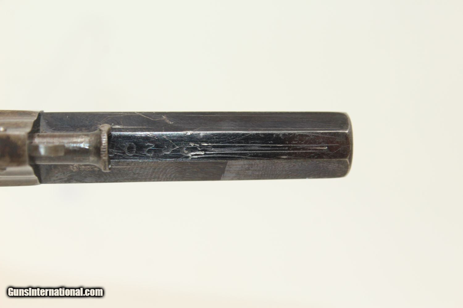 Description: FINE Antique FOREHAND & WADSWORTH Side Hammer REV HOLSTERED 1870s 7-Shot .22 Rimfire Pocket Revolver Here we present an antique holstered Forehand & Wadsworth Side Hammer Revolver Pocket Revolver, manufactured circa the 1870s. This revolver features 7 shots of .22 Rimfire and would have been an alternative to the Colt Open Top or the S&W No. 1 revolvers of the time. This design goes back to Ethan Allen’s original design and was manufactured by Allen’s sons-in-law: Sullivan Forehand & Henry C. Wadsworth. This one features a very neat old belt holster for this little gun. This holster is old and not marked. The pebble grained leather is still supple. Construction is both riveted and stitched. One of the most distinctive features of this revolver is the side-mounted hammer. The left side of the barrel is marked “FOREHAND & WADSWORTH WORCESTER, MASS./PATS SEPT. 24 & OCT.22.1861”. The overall condition is very fine. The original blue finish is 80%. Vibrant case colors remain. The markings are clear. The rosewood grips have virtually all of the original varnish. The bore is clean with sharp rifling. The action is excellent. Own the original! This is a legitimate antique and not a reproduction. Barrel is 2-3/8 inches. Caliber: .22 Rimfire Overall condition as seen in photos. Very Fast. Very Safe. FREE SHIPPING WORLDWIDE. Delivered directly to your door by express mail! Guaranteed AUTHENTIC & Includes CERTIFICATE OF AUTHENTICITY. ancestryguns $1100 #190209 SOLD Antique: Yes |