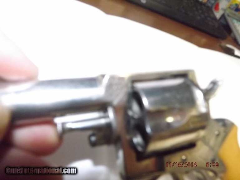 Description: Really fine big bore Forehand & Wadsworth Nickel plated, 2 1/2" barrel, and bone grips. Chambered in a large 45 caliber, I'm not sure but think it's probably the 450 CF. Retains over 90% of its original nickel plating thats starting to flake, especially in the cylinder flutes. SALES HOLD SOLD Antique: Yes Serial Number: 878 |