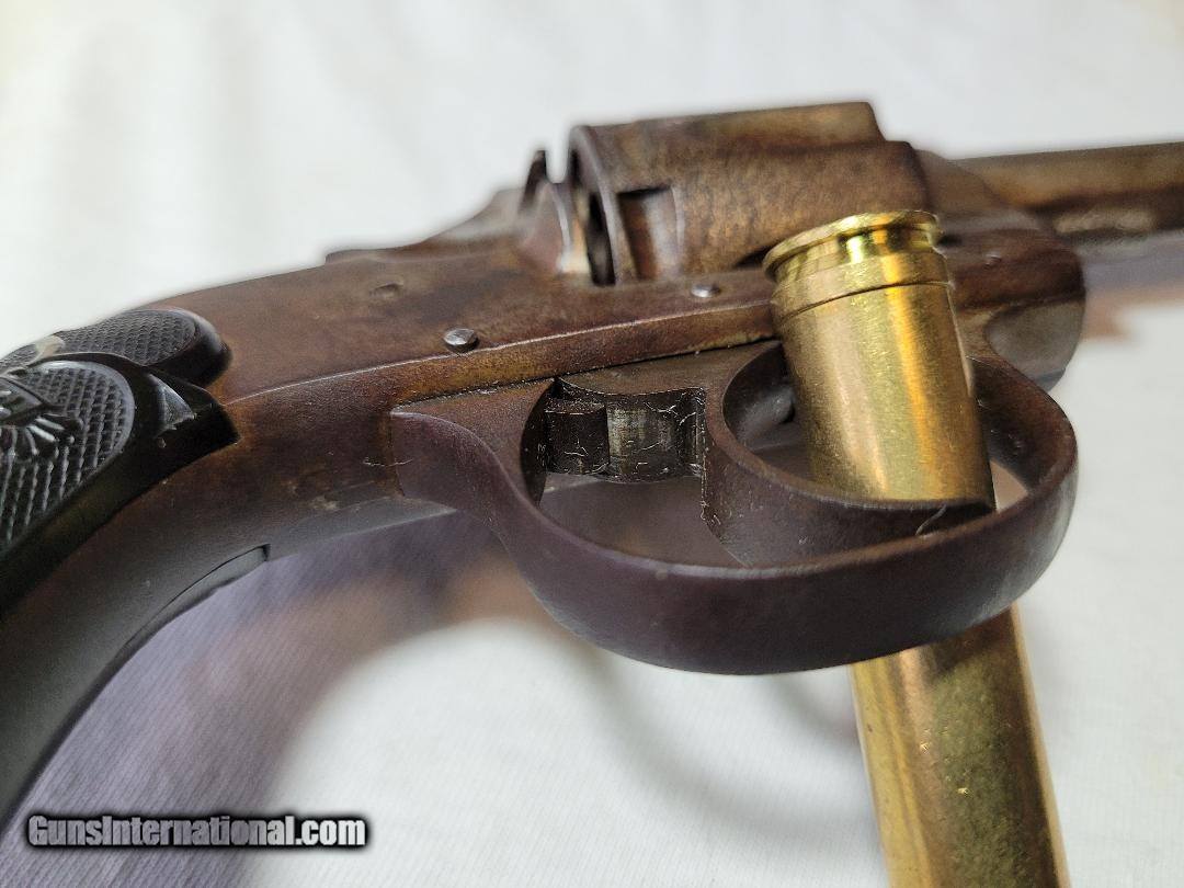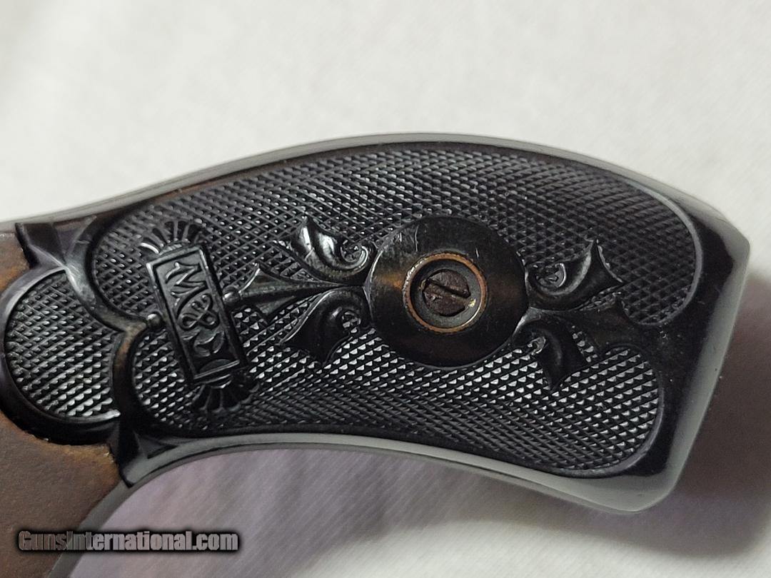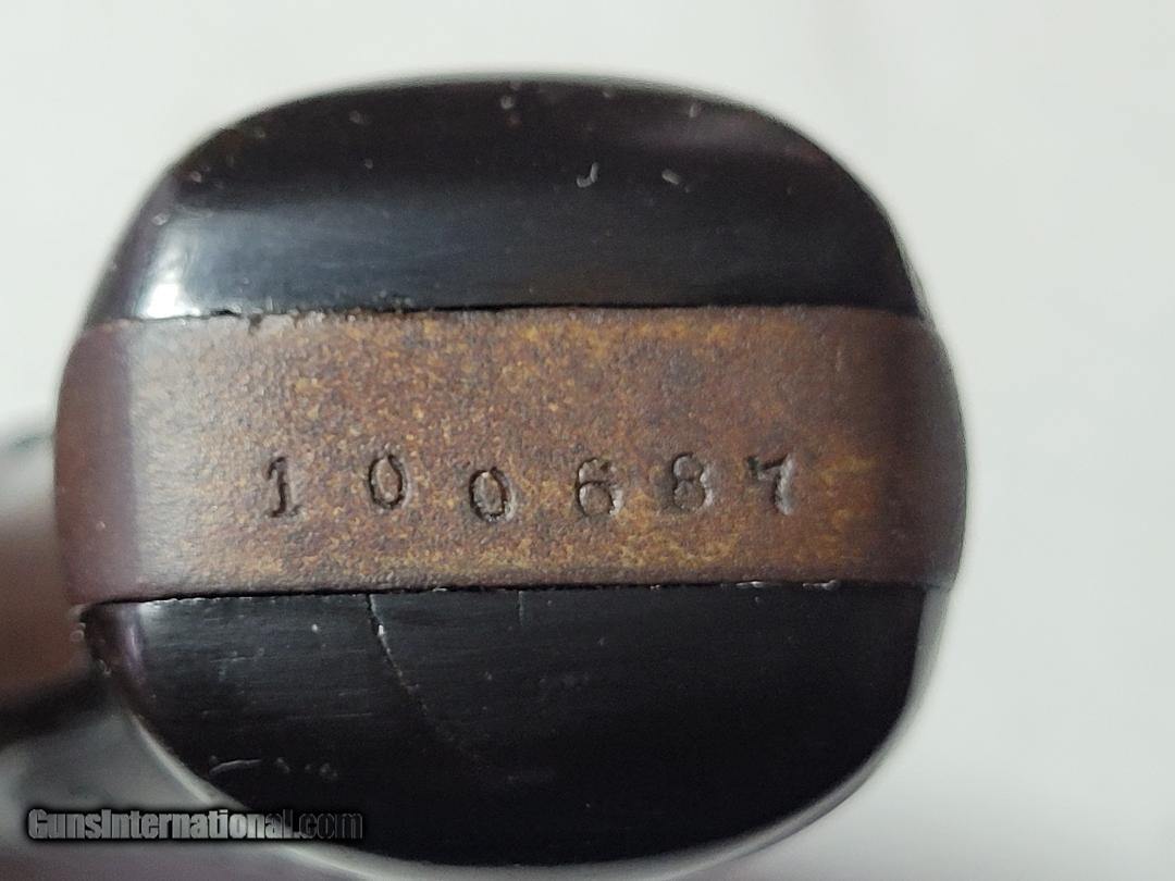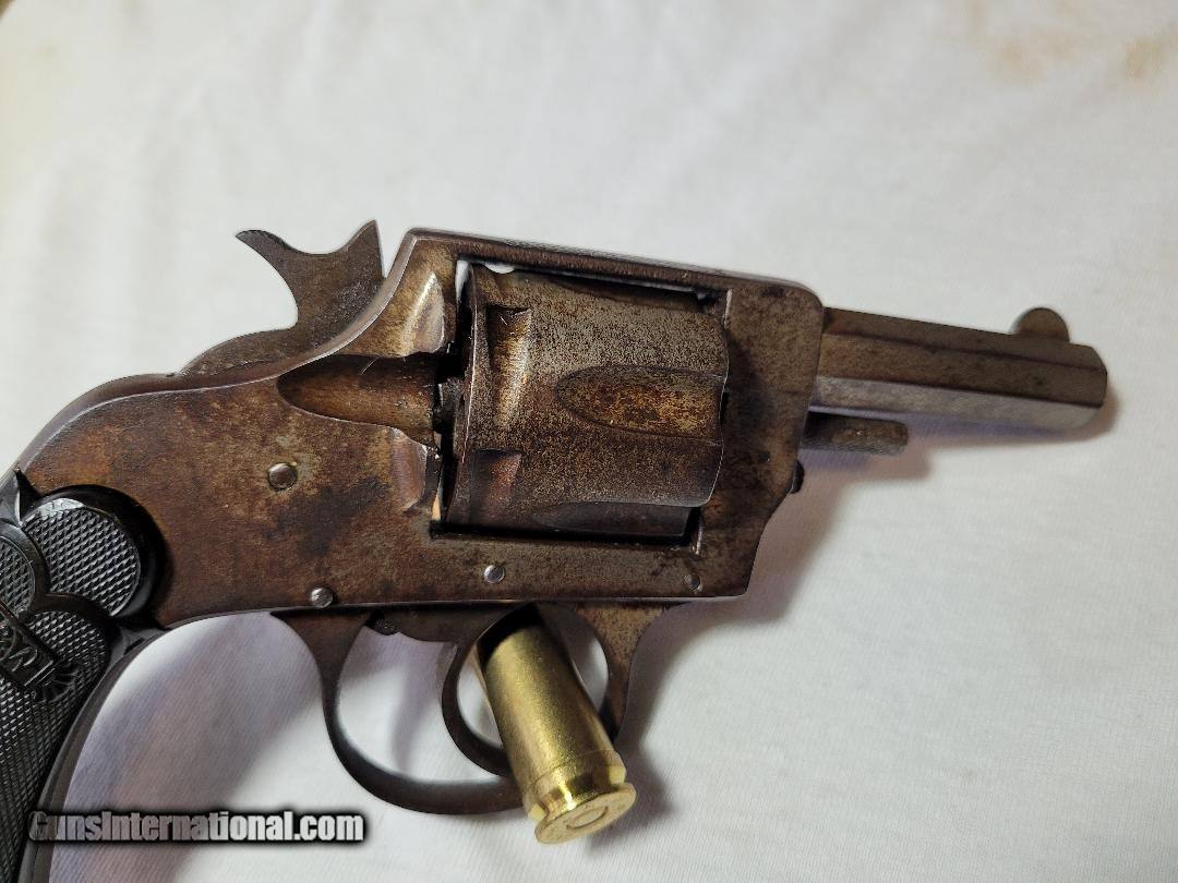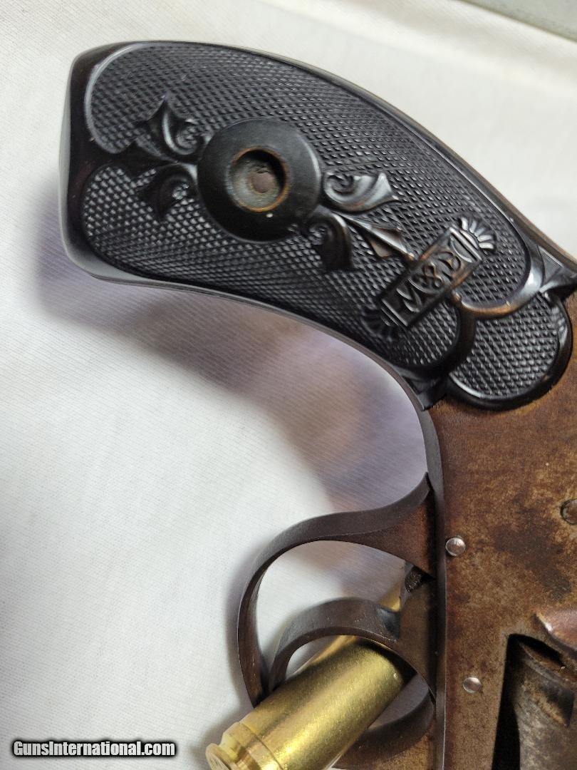 Description: This firearm must not be considered safe to shoot unless inspected by a gunsmith!! It is an old revolver that could be restored, or salvaged for parts. The double action feature works, but the lock-up does not provide solid alignment from cylinder to barrel. This is typical for quite a few of the inexpensive pistols built during this time period. It has excellent original grips and many other usable parts. SOLD Curio/Relic: Yes Handgun Caliber: .32 S&W Manufacturer: Forehand & Wadsworth Model: 32 DA |
