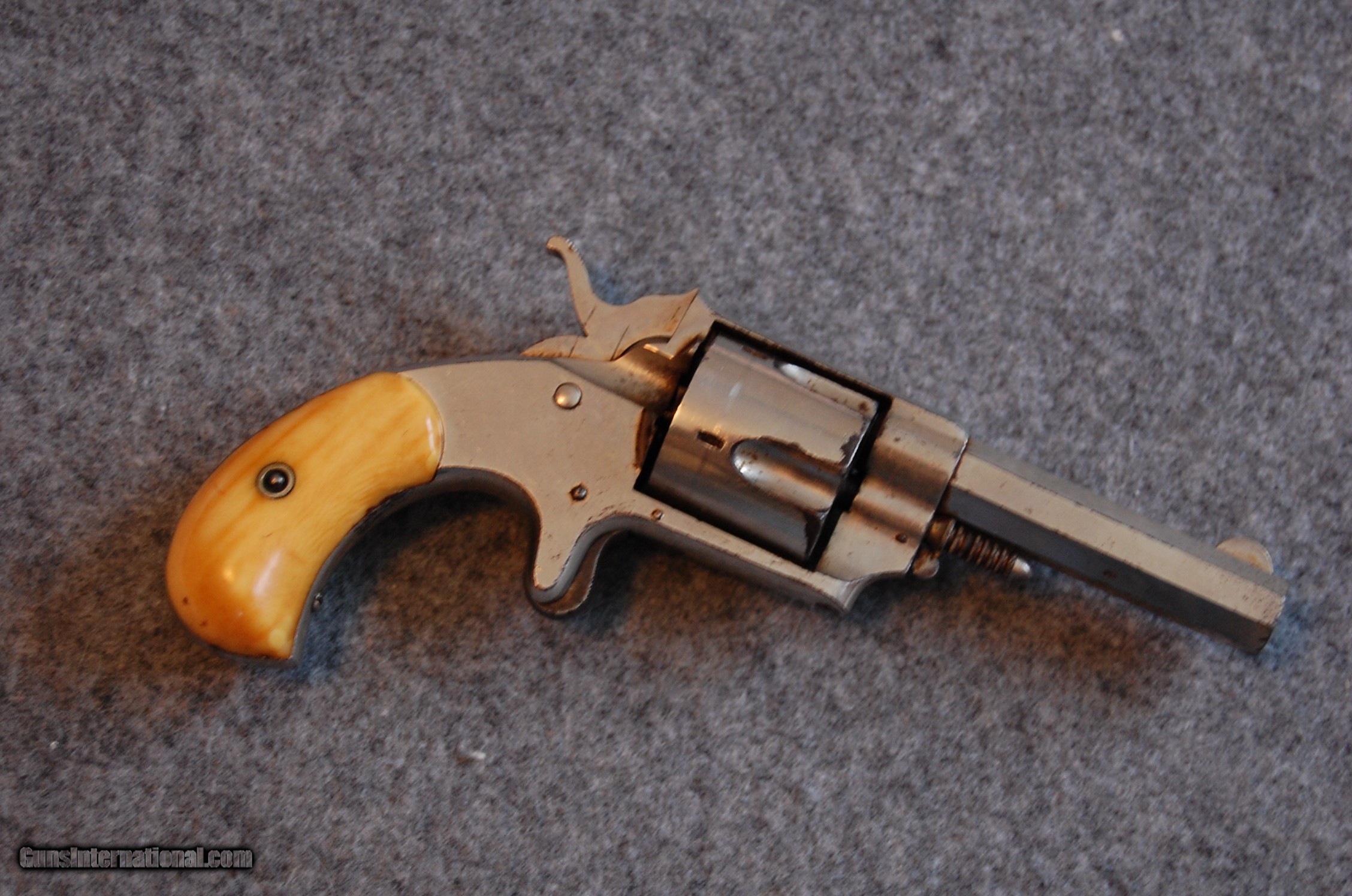 Description: Antique Forehand and Wadsworth Bulldog .38cal S# 111 Nickel finish, ivory grips, very nice condition Mechanically excellent Very nice piece from my collection SOLD Antique: Yes |