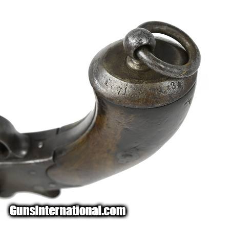 Description: German Model 1879 Reichs Revolver. Made by Dreyse. Butt is unit marked 71.A.1.43. Field artillery regiment 71 Batterie 1. Metal has a gray and brown patina. Bore is very good with strong rifling. Action works perfectly. Very good overall condition. SOLD |