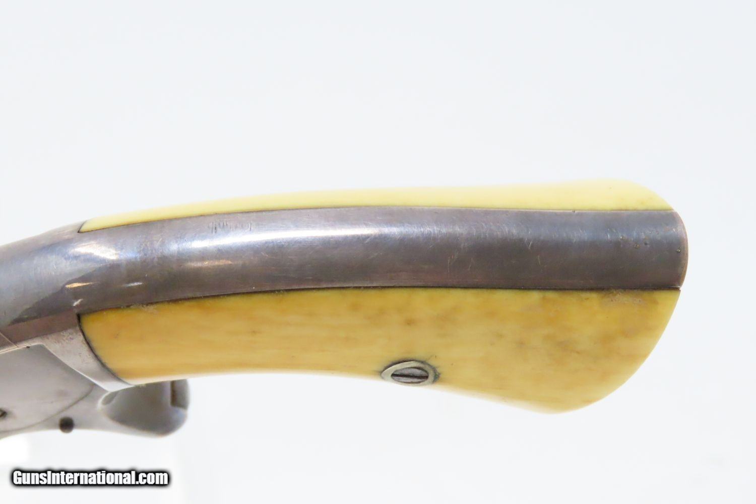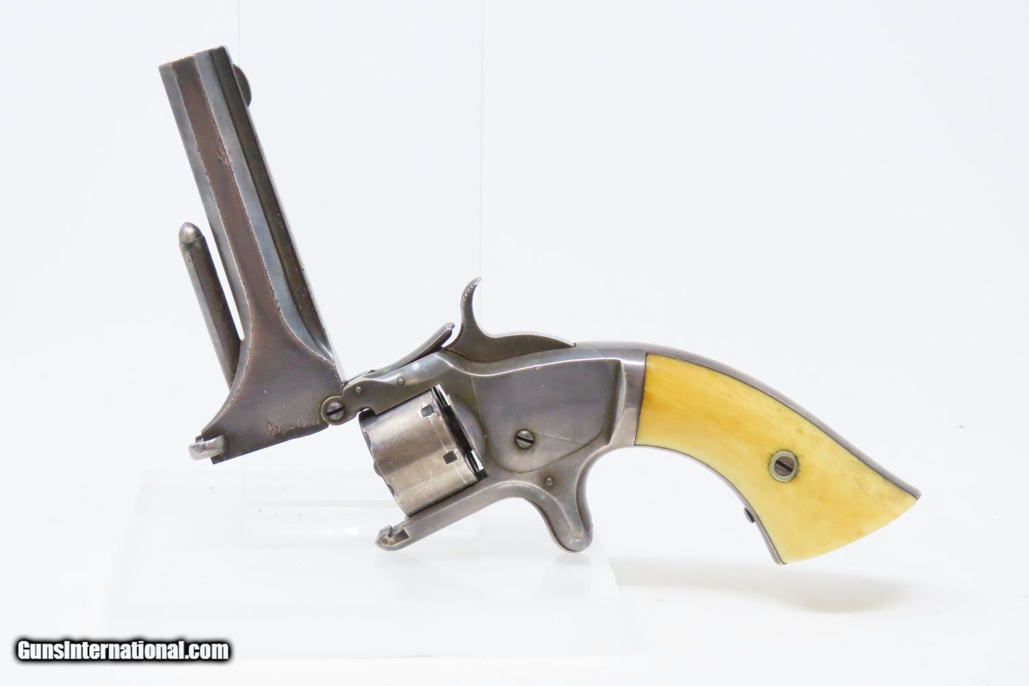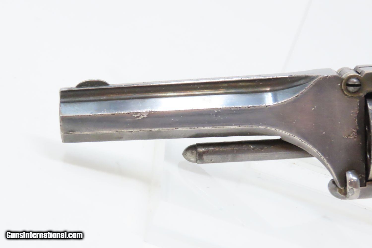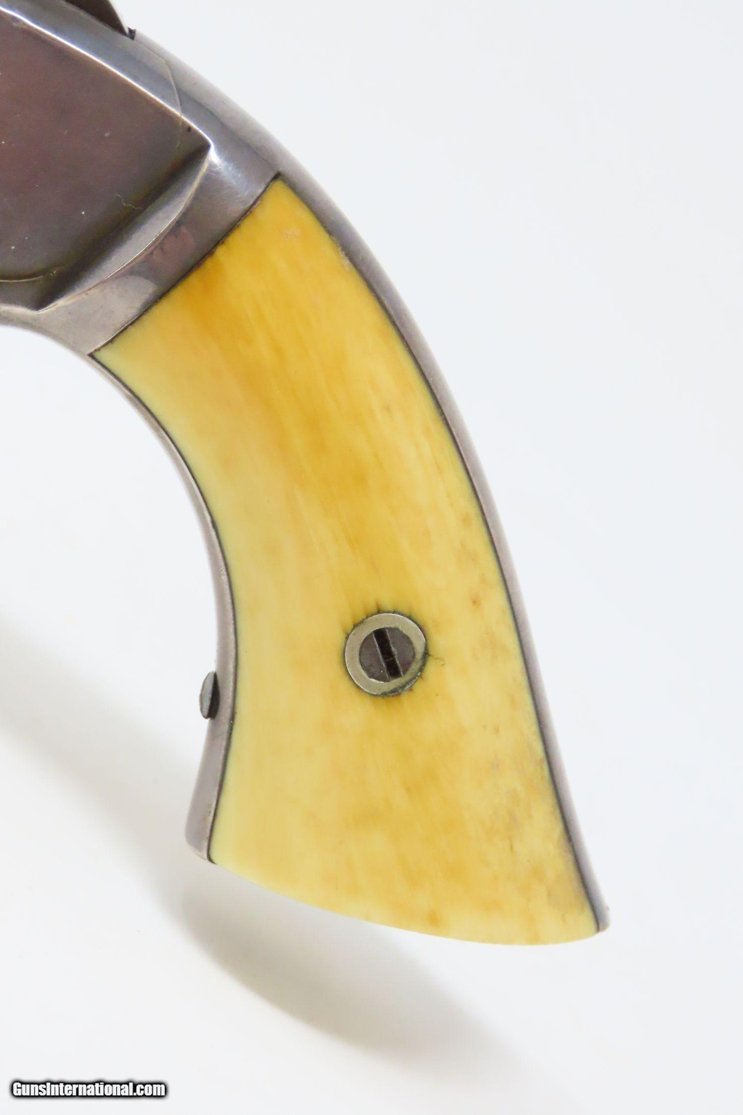 Description: GUTTA PERCHA CASED Antique SMITH & WESSON No. 1 .22 Rimfire REVOLVER VERY RARE MOLDED FACTORY BOX! Here we present an antique Smith & Wesson Model No. 1, Second Issue Revolver, manufactured circa 1860 to 1868 in Springfield, Massachusetts. Smith & Wesson manufactured approximately 115,000 of these revolvers between 1860 and 1868. Serial numbers started around 11000 where the 1st Issue left off and continued to 126400. The No. 1 was Smith & Wesson’s first metallic cartridge firearm. It utilized the idea of the “bored through cylinder”, which was patented by Rollin White and subsequently exclusively licensed by Smith & Wesson. This concept has forever changed revolving firearms design, and is the same idea used in revolvers today. S&W, via Rollin White himself, aggressively sued any patent infringers and were able to hold their monopoly on the American market for cartridge revolvers from about 1857 to 1870, whereupon their patent expired. The results were a very profitable business, a broke Rollin White, and a grudging U.S. Chief of Ordnance Alexander Dyer, who was still angry in 1870 about not being able to use the technology during the Civil War. The U.S. government ended up giving Colt their contracts since they valued the larger .44 caliber in the Colt 1860 Armies over the .32 caliber full sized No. 2 Armies. This small revolver is a 7-shot .22 rimfire. It was specifically designed to be a pocket gun, being very small and light. The No. 1 was the precursor to larger firearms that were simply scaled up to be more suitable for use as martial weapons. Though not a primary military arm during the American Civil War, handguns were commonly privately purchased by soldiers for use on the battlefield. Whether legend or fact, it is interesting to note something commonly read about pocket revolvers of the day: that while they could be used for self-defense against the enemy, many soldiers kept them on their person to defend themselves against an unwanted amputation in the primitive field hospitals that were notorious, even in their day. This case is quite a rarity. Very few have survived, especially in this condition as the choice of material is quite brittle. They were made for Smith & Wesson by Littlefield Parsons & Company. It is made of gutta percha, a hard-rubber-like substance derived from a tree that was in use for pistol grips and similar purposes in the mid-to-late-19th Century. This was molded with the figure of the revolver, the company’s information and the detail around the borders. The inside is lined with a burgundy-colored velvet with a fancy embossed portion on the inside of the lid. The lower portion of the case has space for a revolver and a block with spaces for ammunition. The cases themselves are extremely collectible! The overall condition is fine. Lovely silver plate finish throughout. Solid ivory grips. The action is strong. The bore is reflective with good rifling. The gutta percha factory case has weathered the storm of the years very well, remaining solid and showing a few chips and tiny, hairline cracks. It comes with a fully loaded ammunition holder with original cartridges, many of which are somewhat corroded. This is a very rare little set! Own the original! This is a legitimate antique and not a reproduction. Barrel is 3-3/16 inches. Caliber: .22 Rimfire (Short; black powder) Overall condition as seen in photos. Very Fast. Very Safe. FREE SHIPPING WORLDWIDE. Delivered directly to your door by express mail! Guaranteed AUTHENTIC & Includes CERTIFICATE OF AUTHENTICITY. ancestryguns $4225 #215135 SOLD Antique: Yes |
