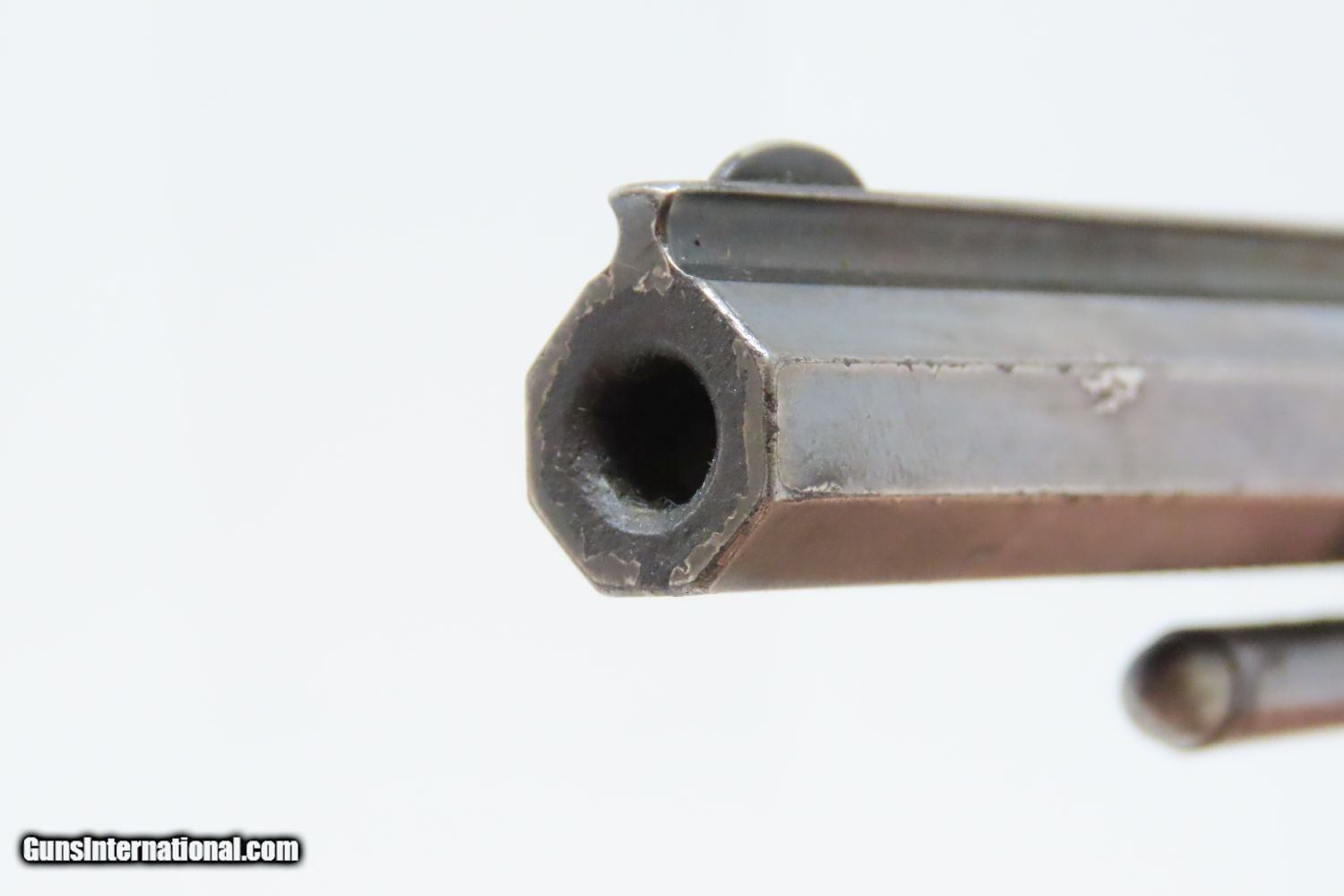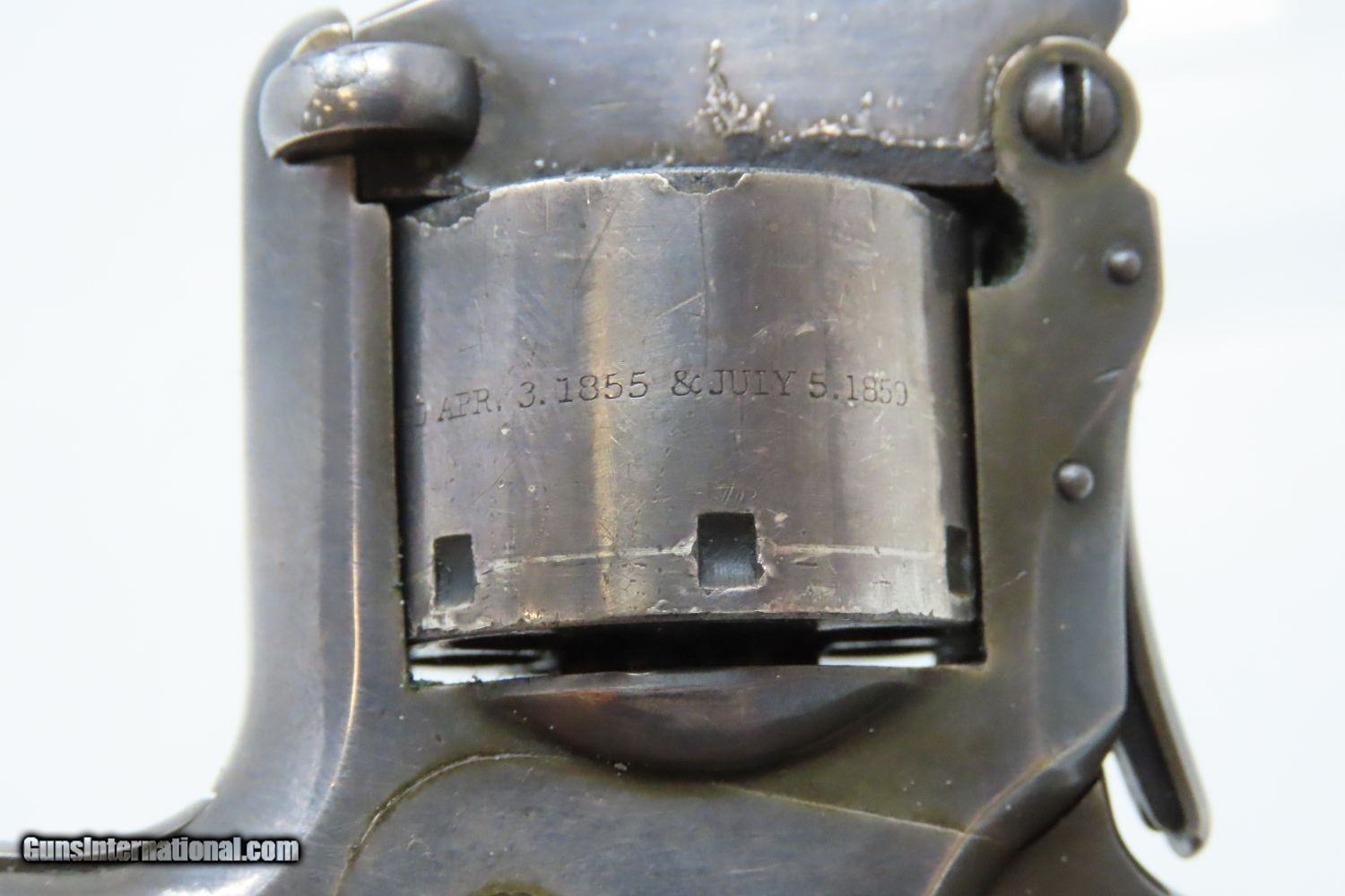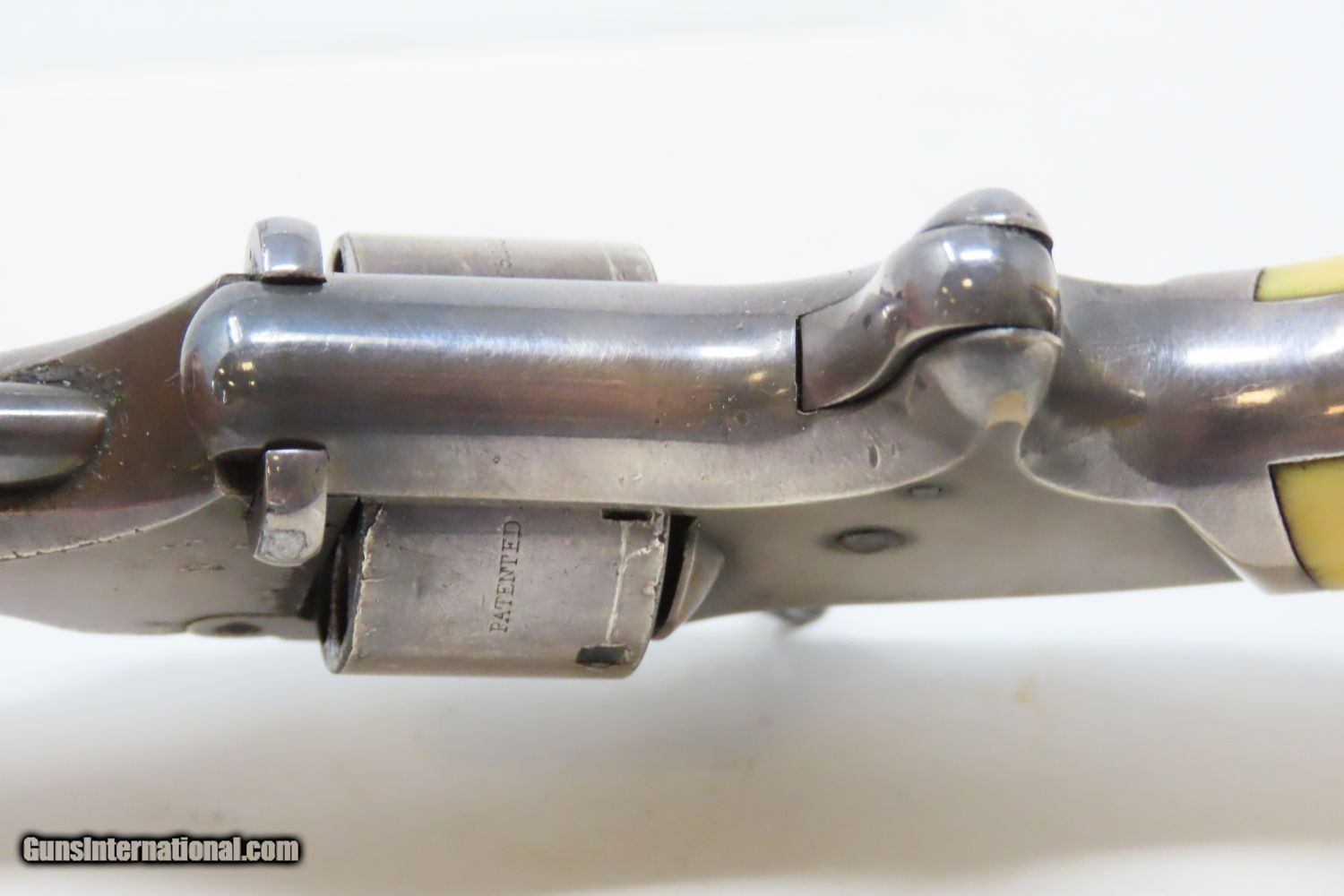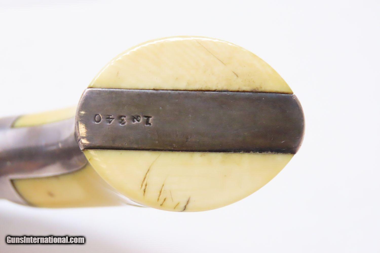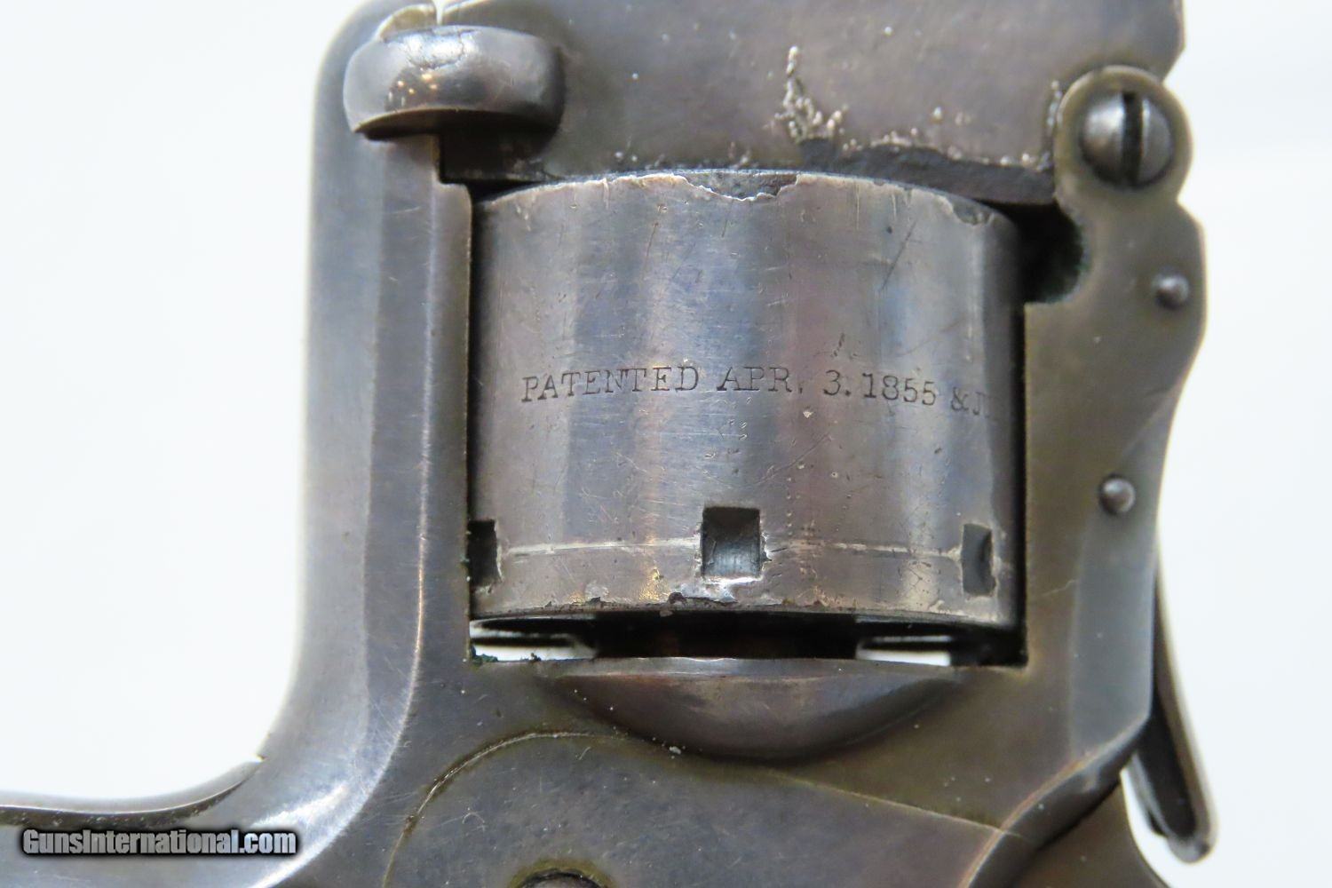Description: GUTTA PERCHA CASED Antique SMITH & WESSON No. 1 .22 Rimfire REVOLVER VERY RARE MOLDED FACTORY BOX! Here we present an antique Smith & Wesson Model No. 1, Second Issue Revolver, manufactured circa 1860 to 1868 in Springfield, Massachusetts. Smith & Wesson manufactured approximately 115,000 of these revolvers between 1860 and 1868. Serial numbers started around 11000 where the 1st Issue left off and continued to 126400. The No. 1 was Smith & Wesson’s first metallic cartridge firearm. It utilized the idea of the “bored through cylinder”, which was patented by Rollin White and subsequently exclusively licensed by Smith & Wesson. This concept has forever changed revolving firearms design, and is the same idea used in revolvers today. S&W, via Rollin White himself, aggressively sued any patent infringers and were able to hold their monopoly on the American market for cartridge revolvers from about 1857 to 1870, whereupon their patent expired. The results were a very profitable business, a broke Rollin White, and a grudging U.S. Chief of Ordnance Alexander Dyer, who was still angry in 1870 about not being able to use the technology during the Civil War. The U.S. government ended up giving Colt their contracts since they valued the larger .44 caliber in the Colt 1860 Armies over the .32 caliber full sized No. 2 Armies. This small revolver is a 7-shot .22 rimfire. It was specifically designed to be a pocket gun, being very small and light. The No. 1 was the precursor to larger firearms that were simply scaled up to be more suitable for use as martial weapons. Though not a primary military arm during the American Civil War, handguns were commonly privately purchased by soldiers for use on the battlefield. Whether legend or fact, it is interesting to note something commonly read about pocket revolvers of the day: that while they could be used for self-defense against the enemy, many soldiers kept them on their person to defend themselves against an unwanted amputation in the primitive field hospitals that were notorious, even in their day. This case is quite a rarity. Very few have survived, especially in this condition as the choice of material is quite brittle. They were made for Smith & Wesson by Littlefield Parsons & Company. It is made of gutta percha, a hard-rubber-like substance derived from a tree that was in use for pistol grips and similar purposes in the mid-to-late-19th Century. This was molded with the figure of the revolver, the company’s information and the detail around the borders. The inside is lined with a burgundy-colored velvet with a fancy embossed portion on the inside of the lid. The lower portion of the case has space for a revolver and a block with spaces for ammunition. The cases themselves are extremely collectible! The overall condition is fine. Lovely silver plate finish throughout. Solid ivory grips. The action is strong. The bore is reflective with good rifling. The gutta percha factory case has weathered the storm of the years very well, remaining solid and showing a few chips and tiny, hairline cracks. It comes with a fully loaded ammunition holder with original cartridges, many of which are somewhat corroded. This is a very rare little set! Own the original! This is a legitimate antique and not a reproduction. Barrel is 3-3/16 inches. Caliber: .22 Rimfire (Short; black powder) Overall condition as seen in photos. Very Fast. Very Safe. FREE SHIPPING WORLDWIDE. Delivered directly to your door by express mail! Guaranteed AUTHENTIC & Includes CERTIFICATE OF AUTHENTICITY. ancestryguns $4225 #215135 SOLD Antique: Yes |