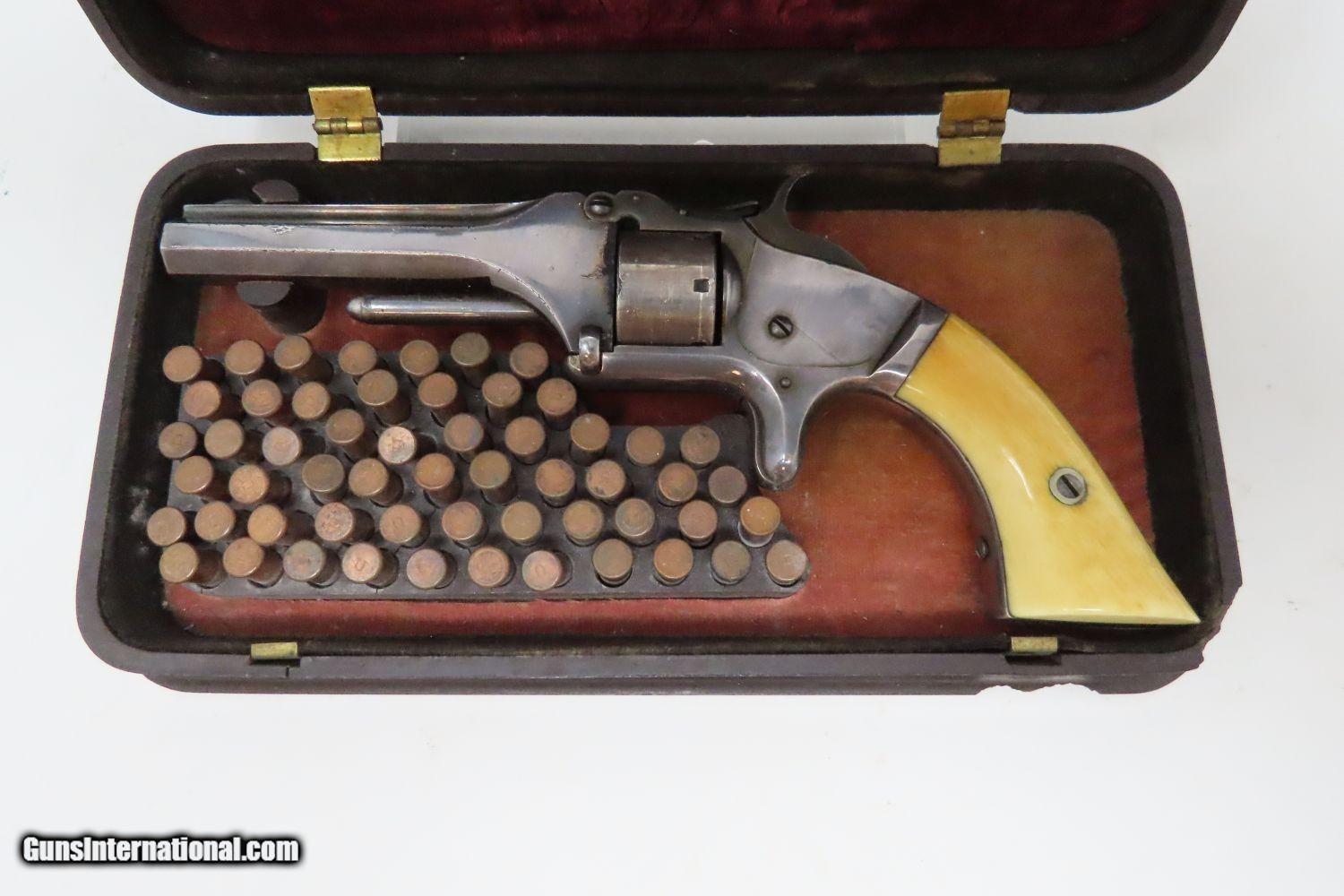 GUTTA PERCHA CASED Antique SMITH & WESSON No. 1 .22 Rimfire REVOLVER VERY RARE MOLDED FACTORY BOX!