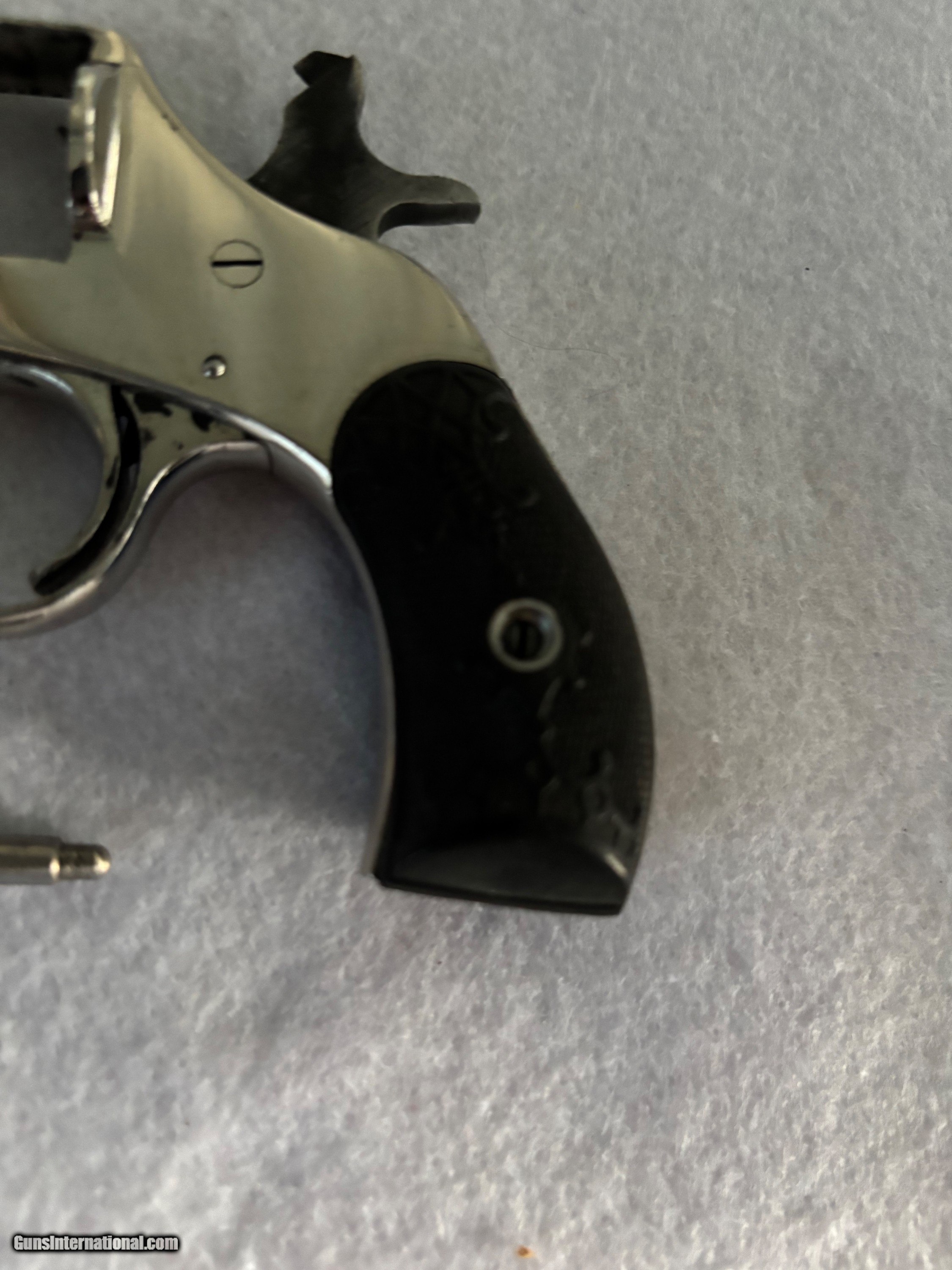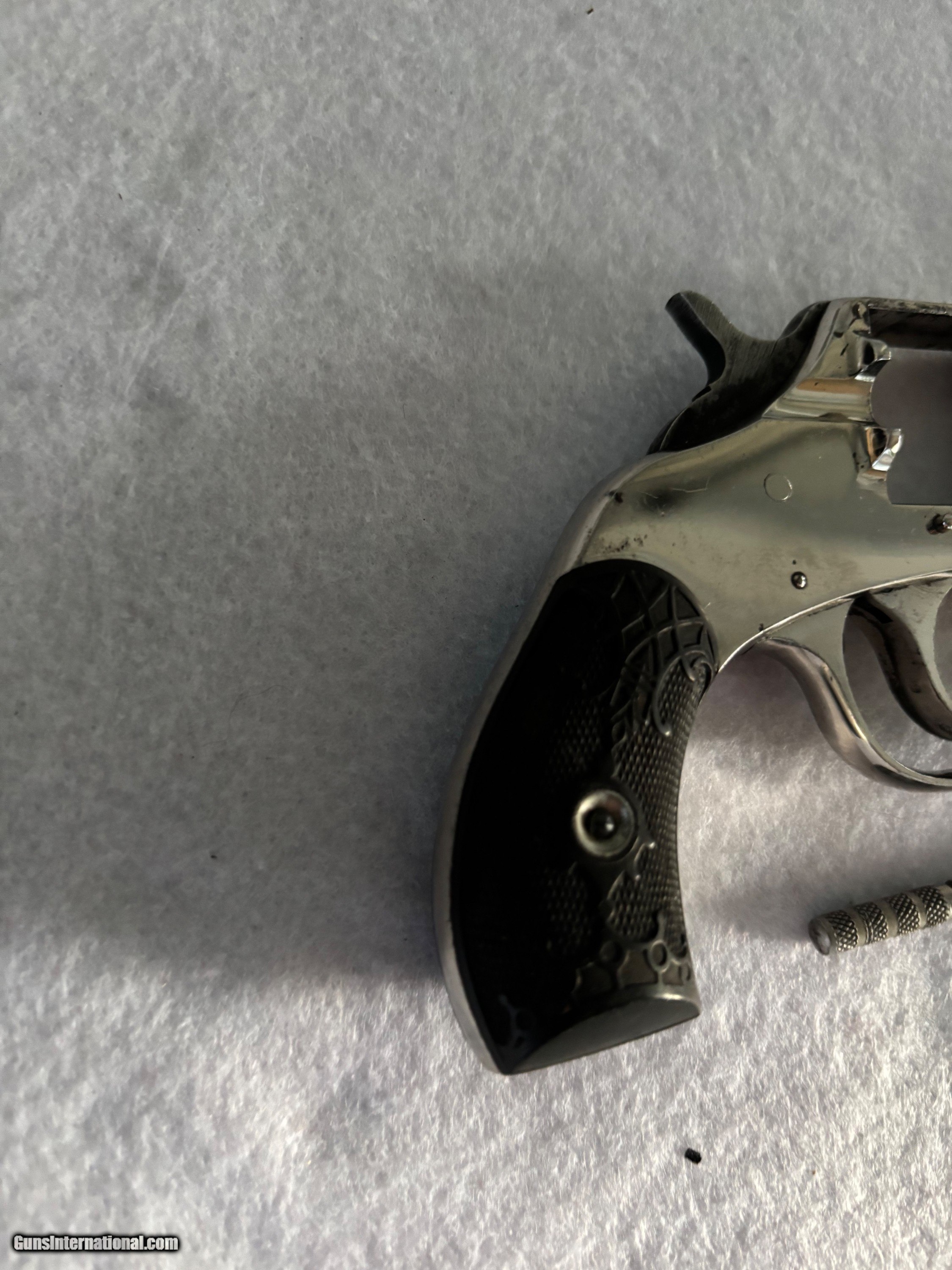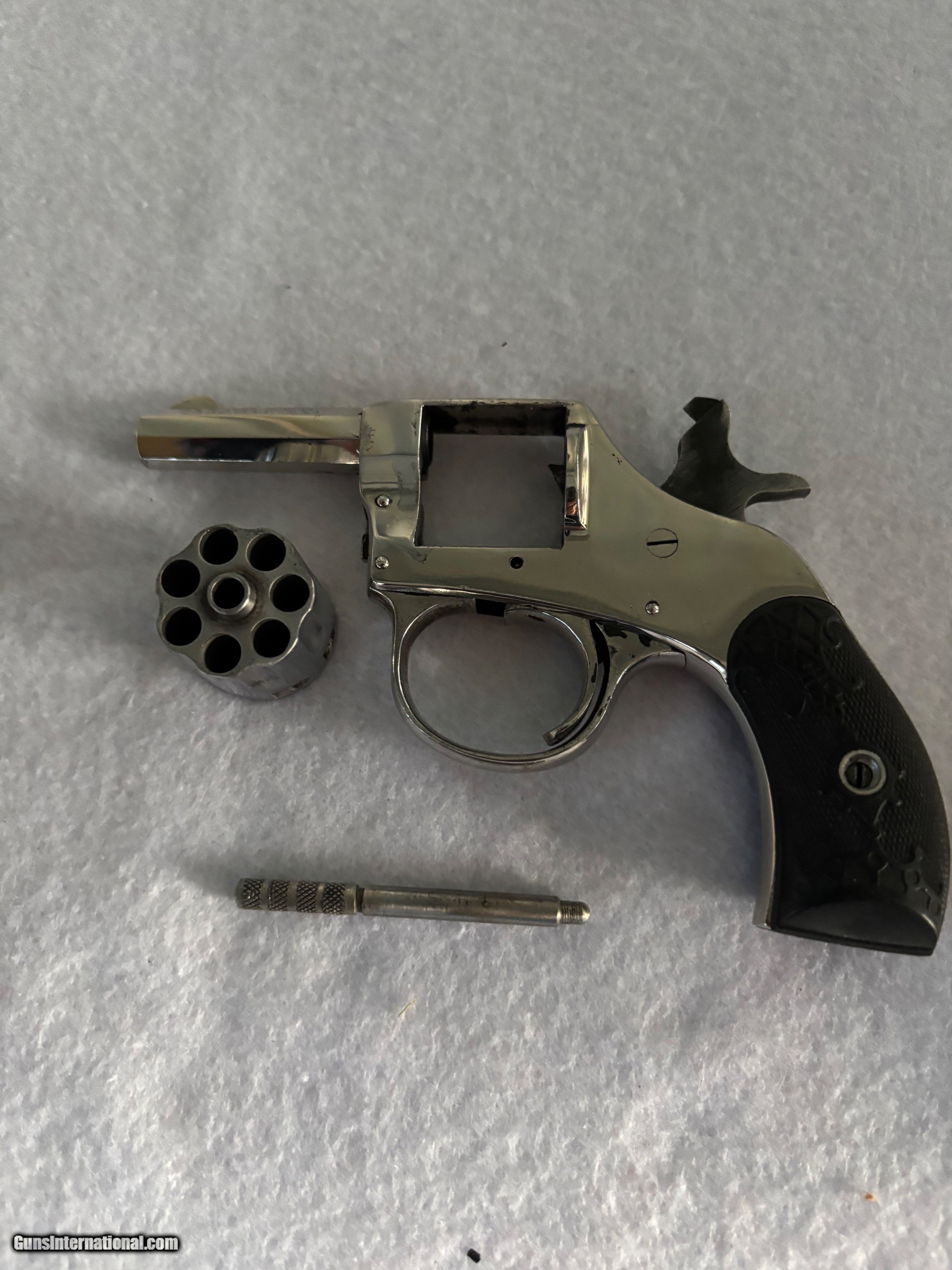Description: Harrington & Richardson - “ Young America ” - small frame Double Action Revolver. First Model , 2nd Variation Solid Frame, Nickel finish, 7 shot — 2” Octagon barrel — Ammo used: .22 Rimfire short and long. SN 6999. These revolvers were manufactured from 1888-1897 and made for black powder cartridges Top of barrel: YOUNG AMERICA DOUBLE ACTION SIDE OF BARREL: H&R ARMS COMPANY WORCESTER.MA.U.S.A Condition: 2 ” octagon barrel with a nice bore showing a very small area of fine pitting and strong rifling throughout. The metal surfaces retain about most of the original nickel and shows the typical very light scratches and handling marks for a revolver this age but still looks extremely nice . Correct original grips remain in very good condition with light handling marks. Please judge for yourself from the photos. Mechanically works excellent in single and double action with good timing and lock-up. This revolver is a complete, with matching numbers. Nice example of an H&R solid frame .22 and would make a nice addition to any Harrington & Richardson collection This is an antique and no FFL required. Will ship USPS “ FREE SHIPPING “. This gun is sold "as-is" as a collectible with no refund and no return. Payment can be made with bank check, postal money order, or personal check. Credit card payment is available through Gun Tab at checkout. If you prefer instant payment and shipping please email me for account info, I can take Venmo, Zelle or Cash App. Antique: Yes Handgun Caliber: .22 Long Manufacturer: Harrington & Richardson Model: Young America Serial Number: 6999 Barrel Length: 2 Price: $325.00 Buy Now Pay with