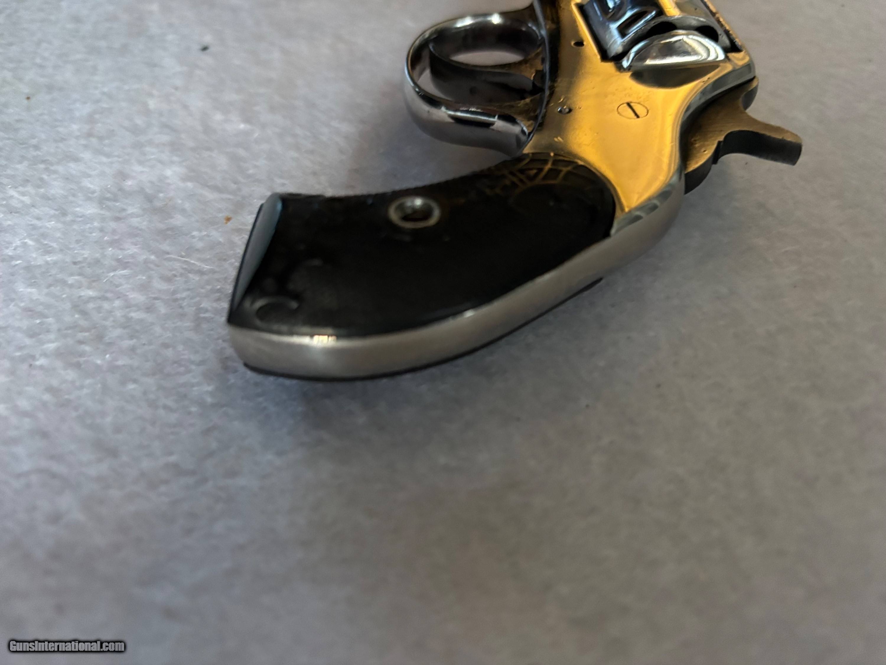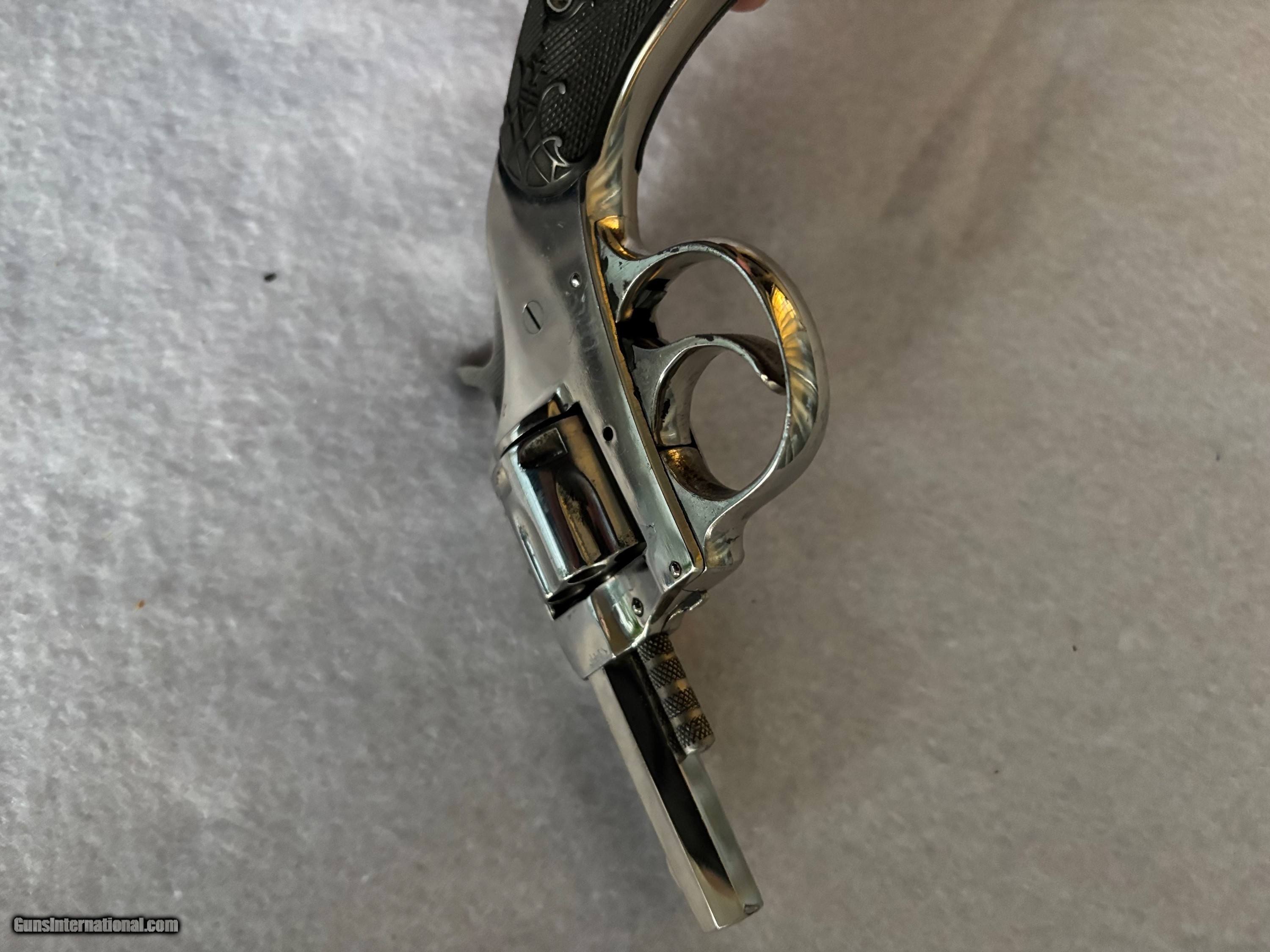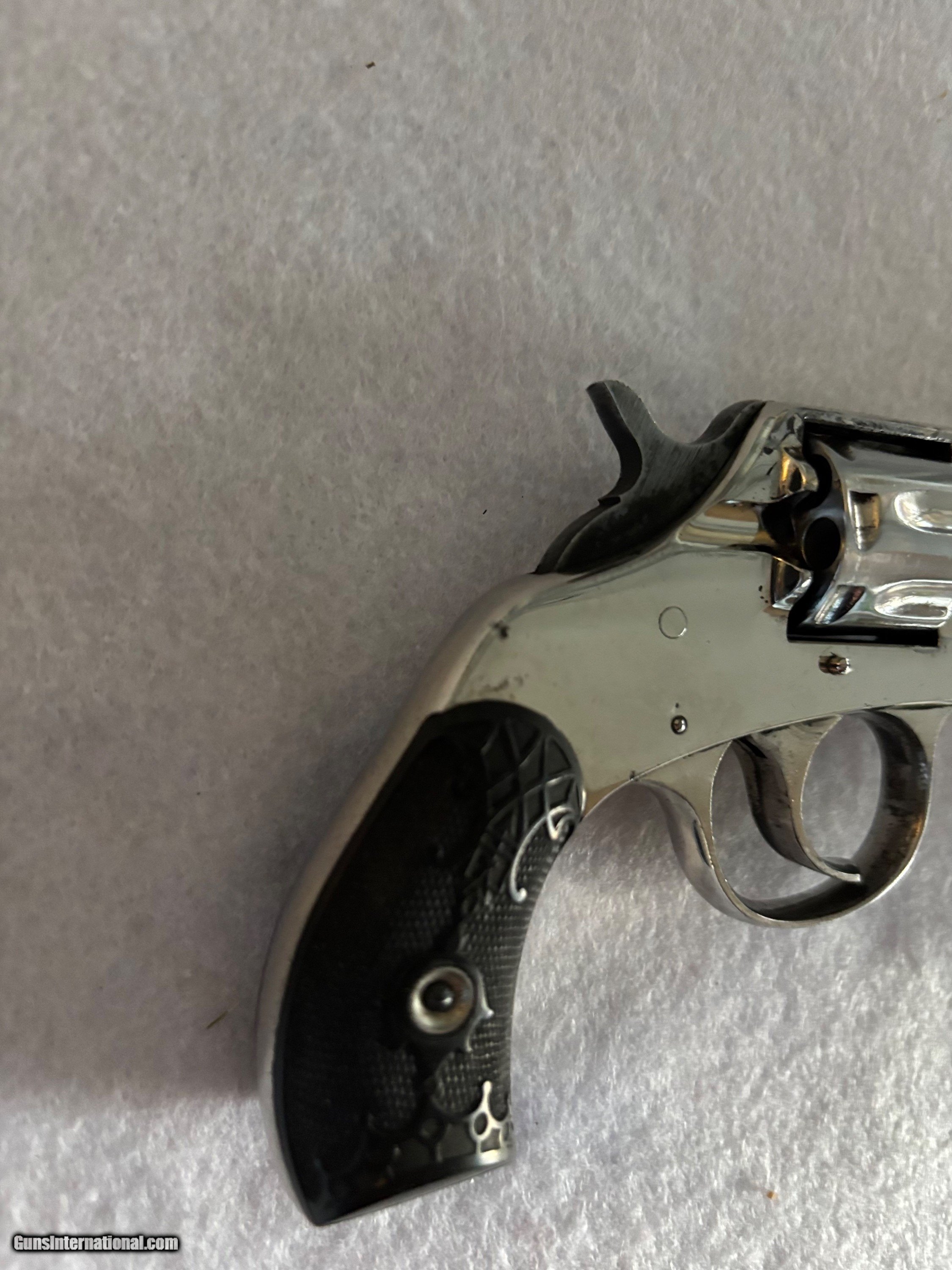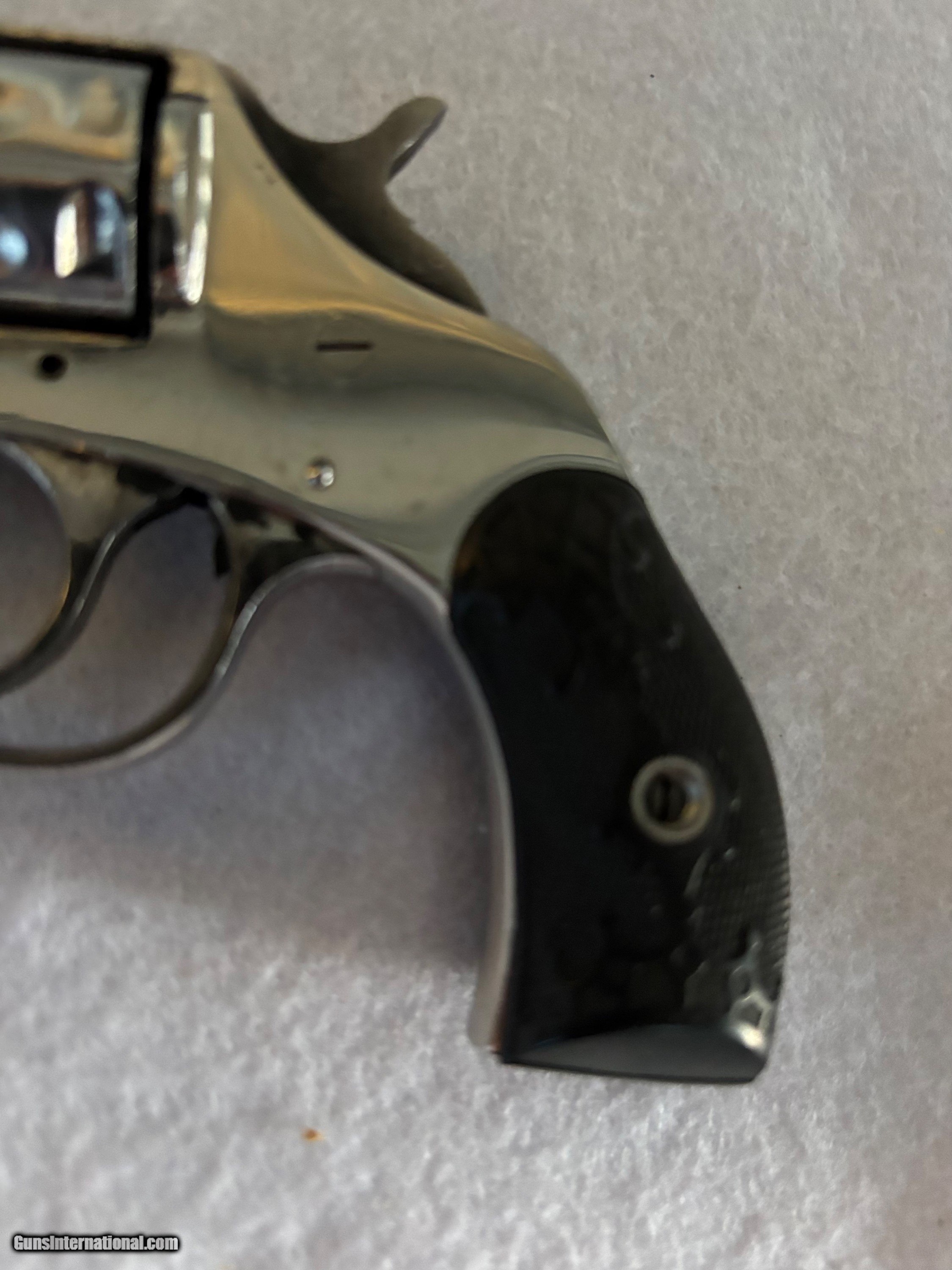 Description: Harrington & Richardson - “ Young America ” - small frame Double Action Revolver. First Model , 2nd Variation Solid Frame, Nickel finish, 7 shot — 2” Octagon barrel — Ammo used: .22 Rimfire short and long. SN 6999. These revolvers were manufactured from 1888-1897 and made for black powder cartridges Top of barrel: YOUNG AMERICA DOUBLE ACTION SIDE OF BARREL: H&R ARMS COMPANY WORCESTER.MA.U.S.A Condition: 2 ” octagon barrel with a nice bore showing a very small area of fine pitting and strong rifling throughout. The metal surfaces retain about most of the original nickel and shows the typical very light scratches and handling marks for a revolver this age but still looks extremely nice . Correct original grips remain in very good condition with light handling marks. Please judge for yourself from the photos. Mechanically works excellent in single and double action with good timing and lock-up. This revolver is a complete, with matching numbers. Nice example of an H&R solid frame .22 and would make a nice addition to any Harrington & Richardson collection This is an antique and no FFL required. Will ship USPS “ FREE SHIPPING “. This gun is sold "as-is" as a collectible with no refund and no return. Payment can be made with bank check, postal money order, or personal check. Credit card payment is available through Gun Tab at checkout. If you prefer instant payment and shipping please email me for account info, I can take Venmo, Zelle or Cash App. Antique: Yes Handgun Caliber: .22 Long Manufacturer: Harrington & Richardson Model: Young America Serial Number: 6999 Barrel Length: 2 Price: $325.00 Buy Now Pay with