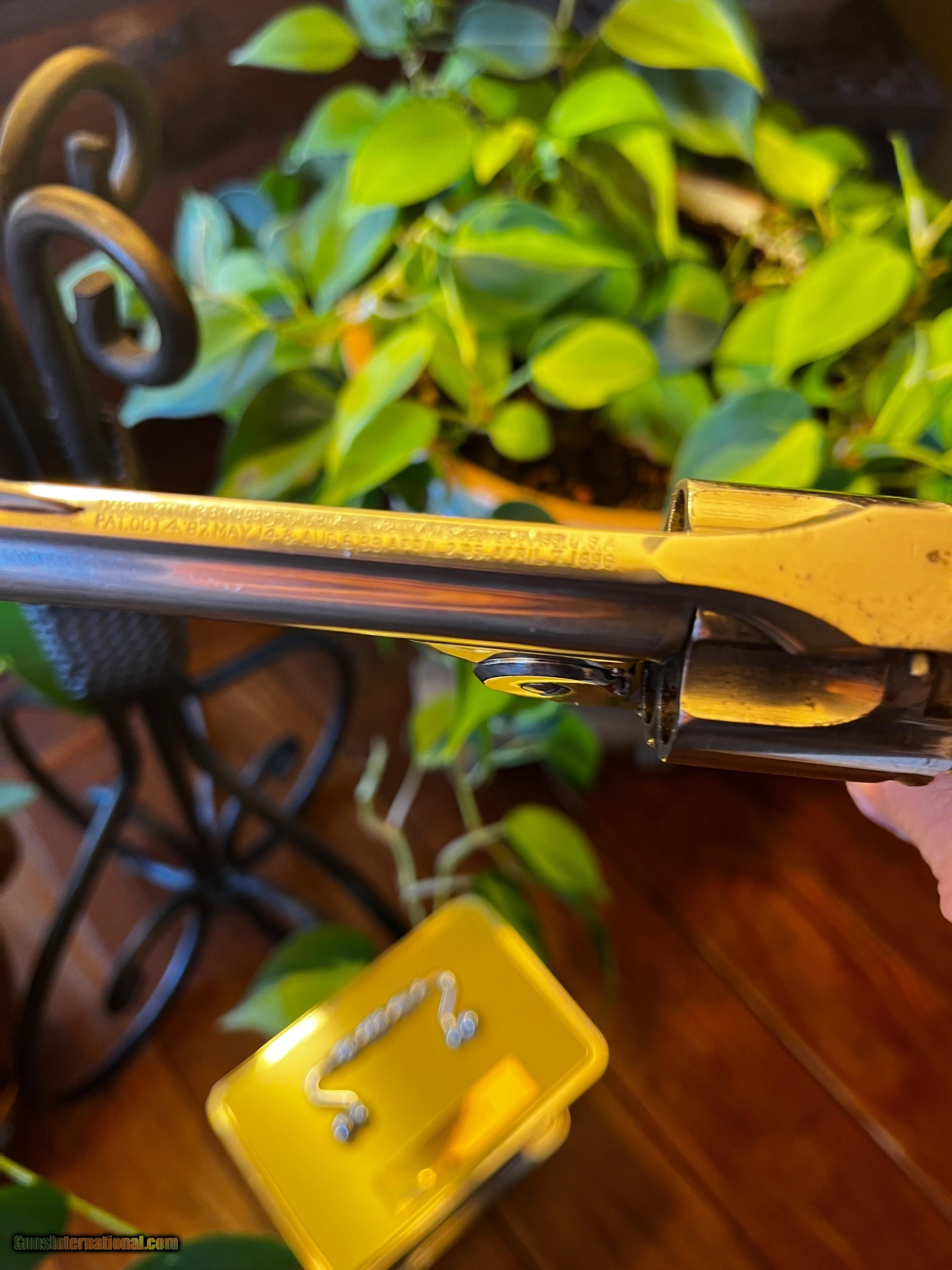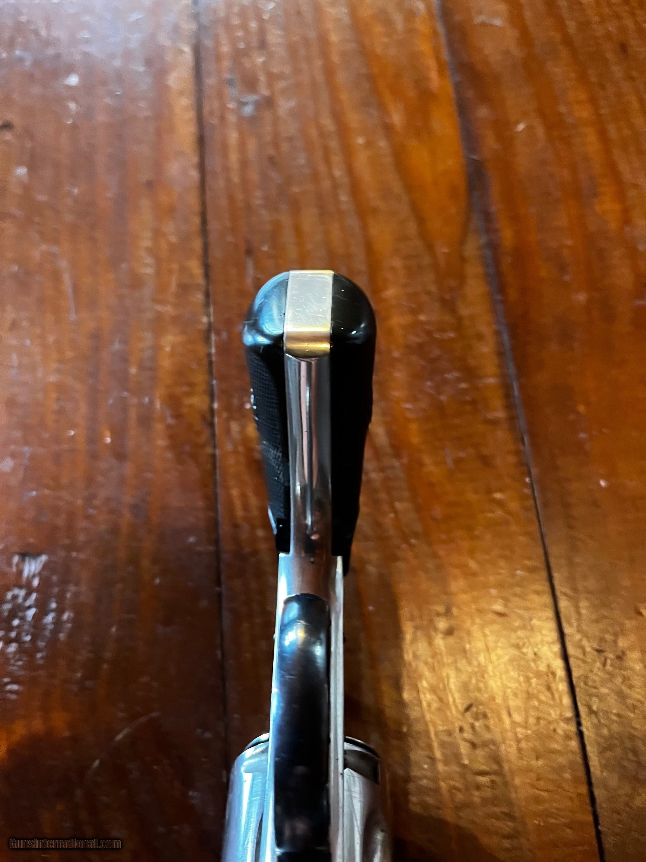 Description: Nice H&R . 38 SW SA 5 shot nickel Topbreak revolver with hard black rubber grips. Serial no. 37539. Test fired well and is accurate. Everything locks up and works well. Must be shipped to an FFL. Will accept money order, bank check or personal check (personal check may take longer to ship as it has to first clear). Handgun Caliber: .38 S&W (.38 Colt New Police, .38 Super Police) Manufacturer: H&R Model: Automatic Ejector Serial Number: 37539 Barrel Length: 3 1/2 Condition: Good Metal Condition: Good Bore Condition: Good Action: Single Sights: Fixed Blade Manufacture Date: 1898? Grips: Hard Boack Rubber Price: $250.00 Shipping: $75.00 Buy Now Contact Seller |