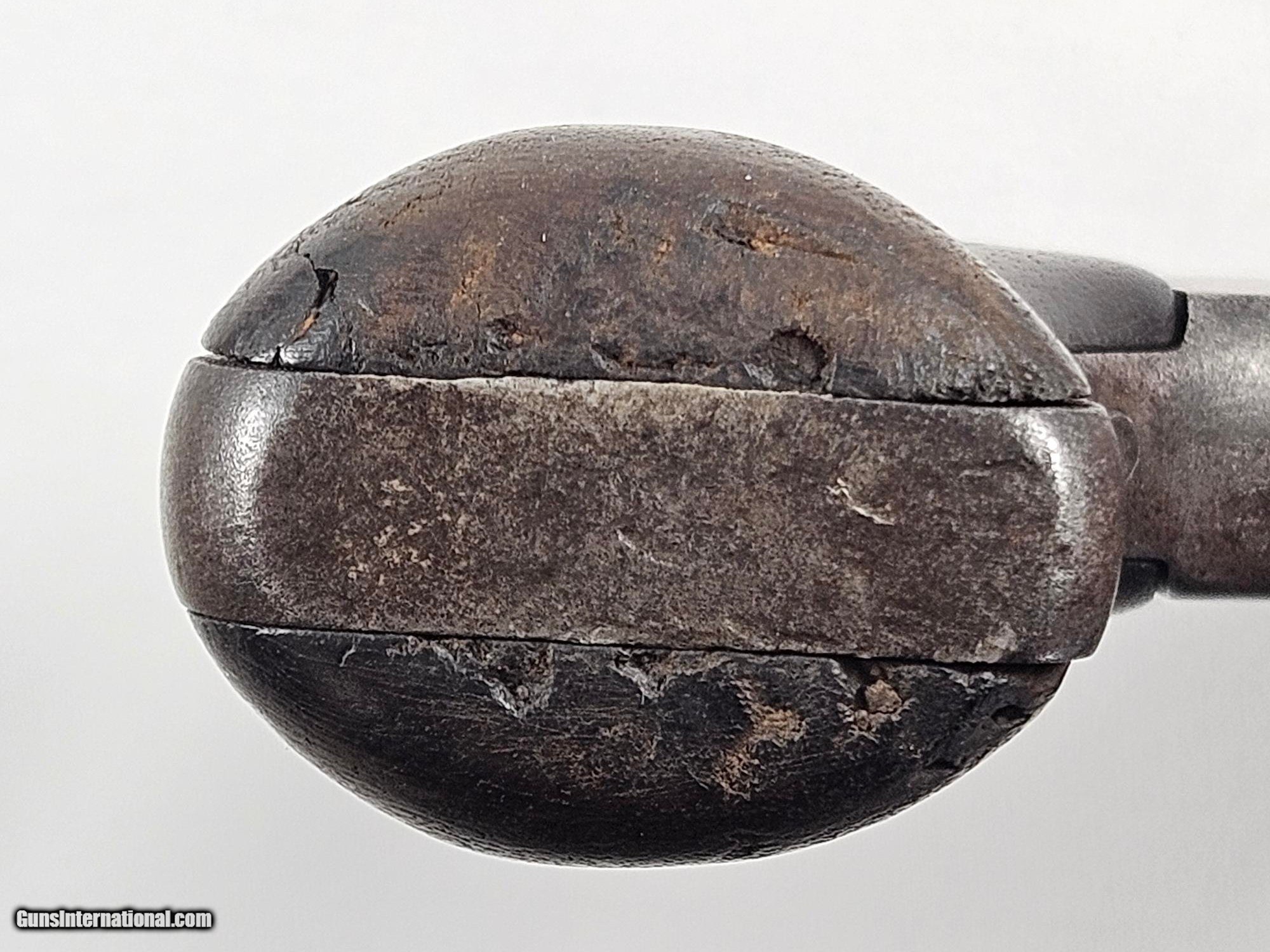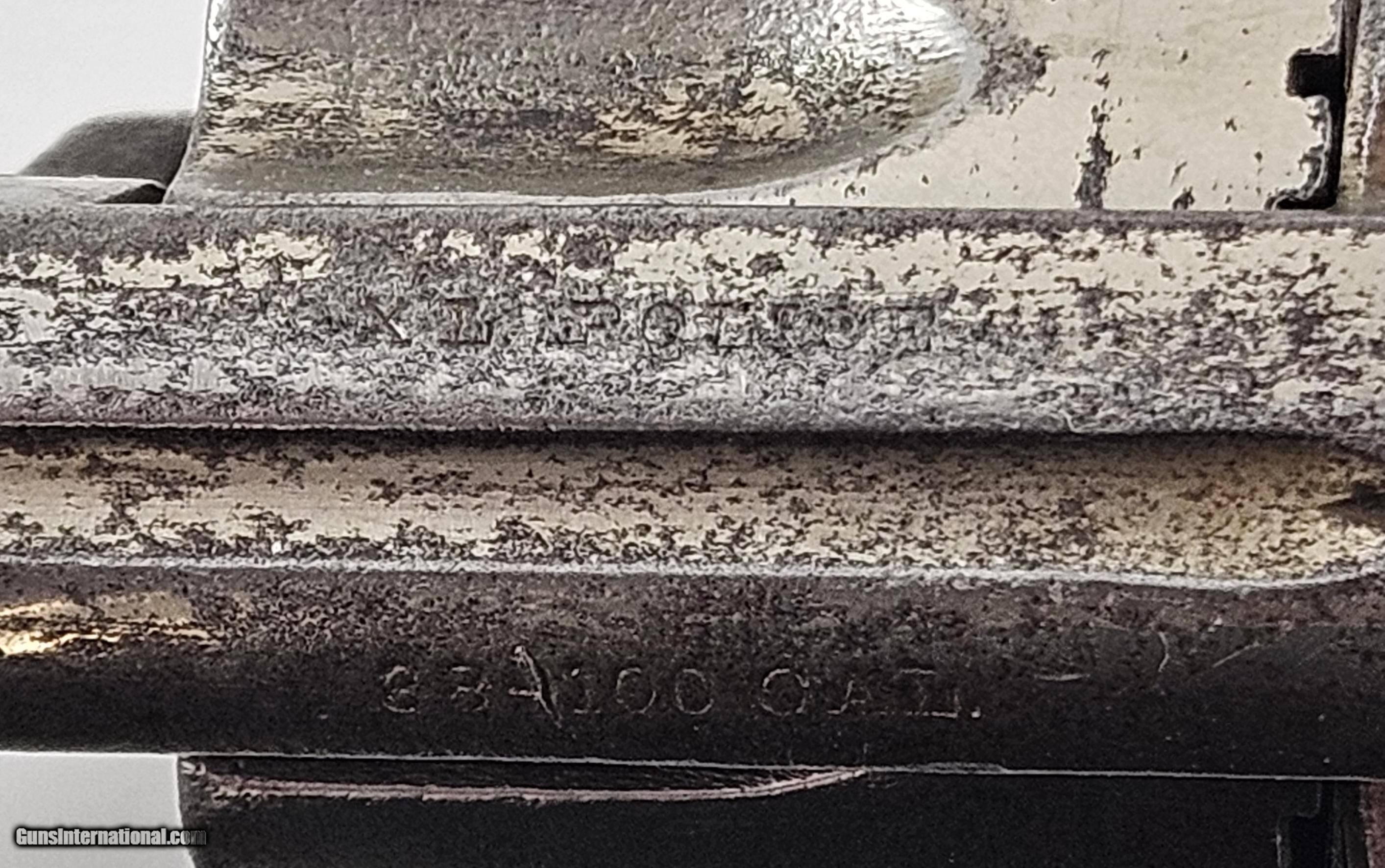 Description: Here is a Hopkins and Allen XL Police in 38 Rimfire. The top strap is labeled correctly with XL Police and with 38-100 cal. The action functions if you point the barrel to the ground so the hand spring is broke. The rest of the action functions correctly with the extractor working. Based on my research they only made a few hundred of these round grip, 4 1/2", XL Police guns. This gun is an antique so it can ship direct to you. Shipping is $25 to the continuous States SOLD Antique: Yes Manufacturer: Hopkins & Allen Model: XL Police Serial Number: 1356 |