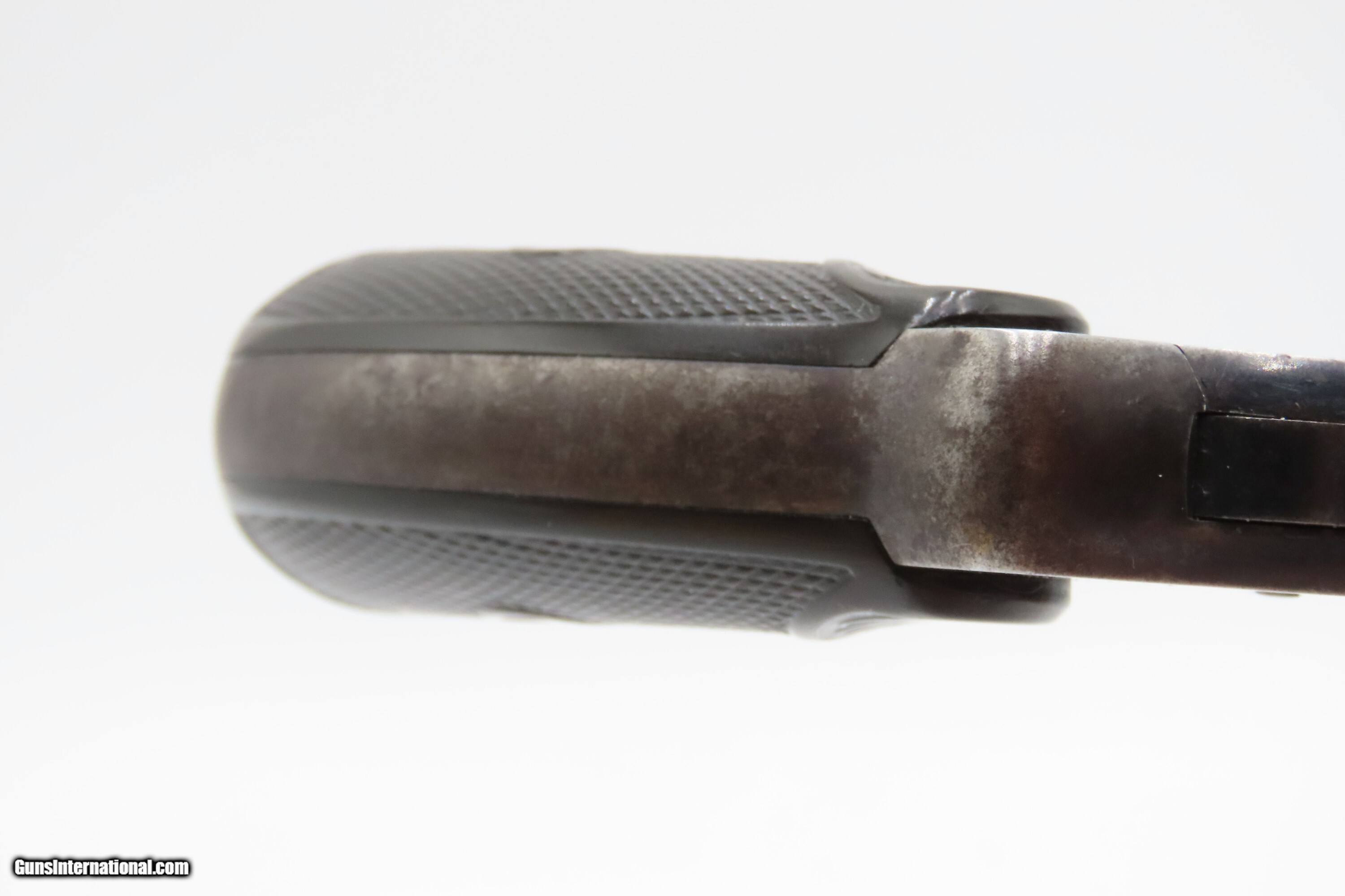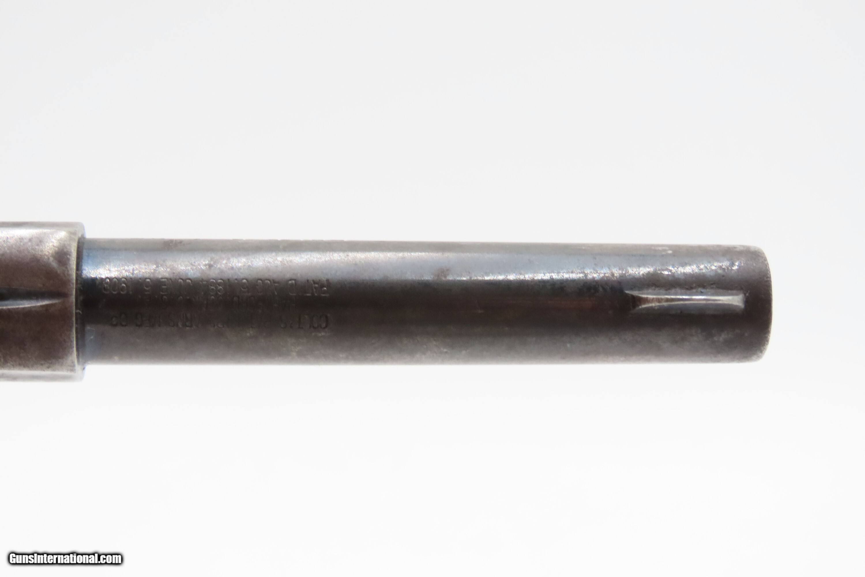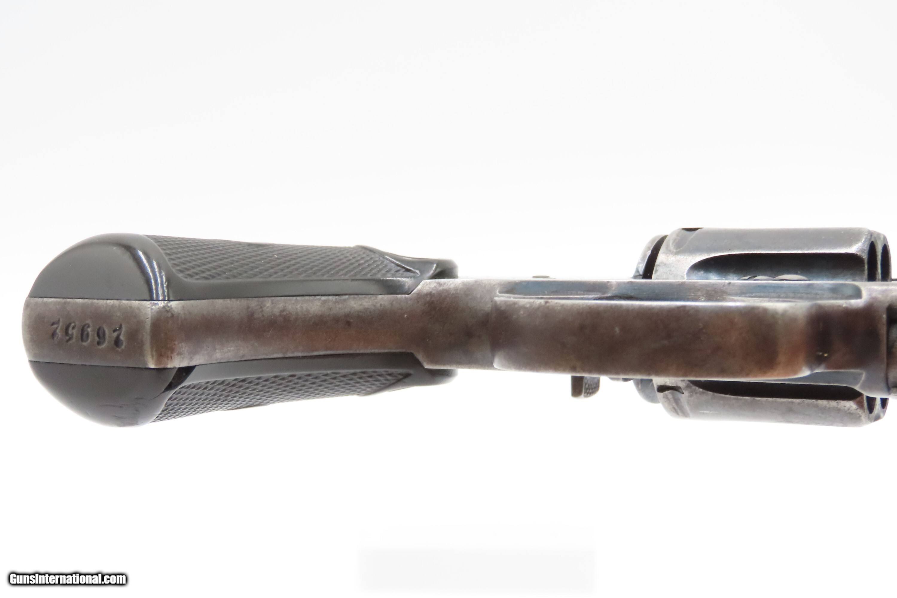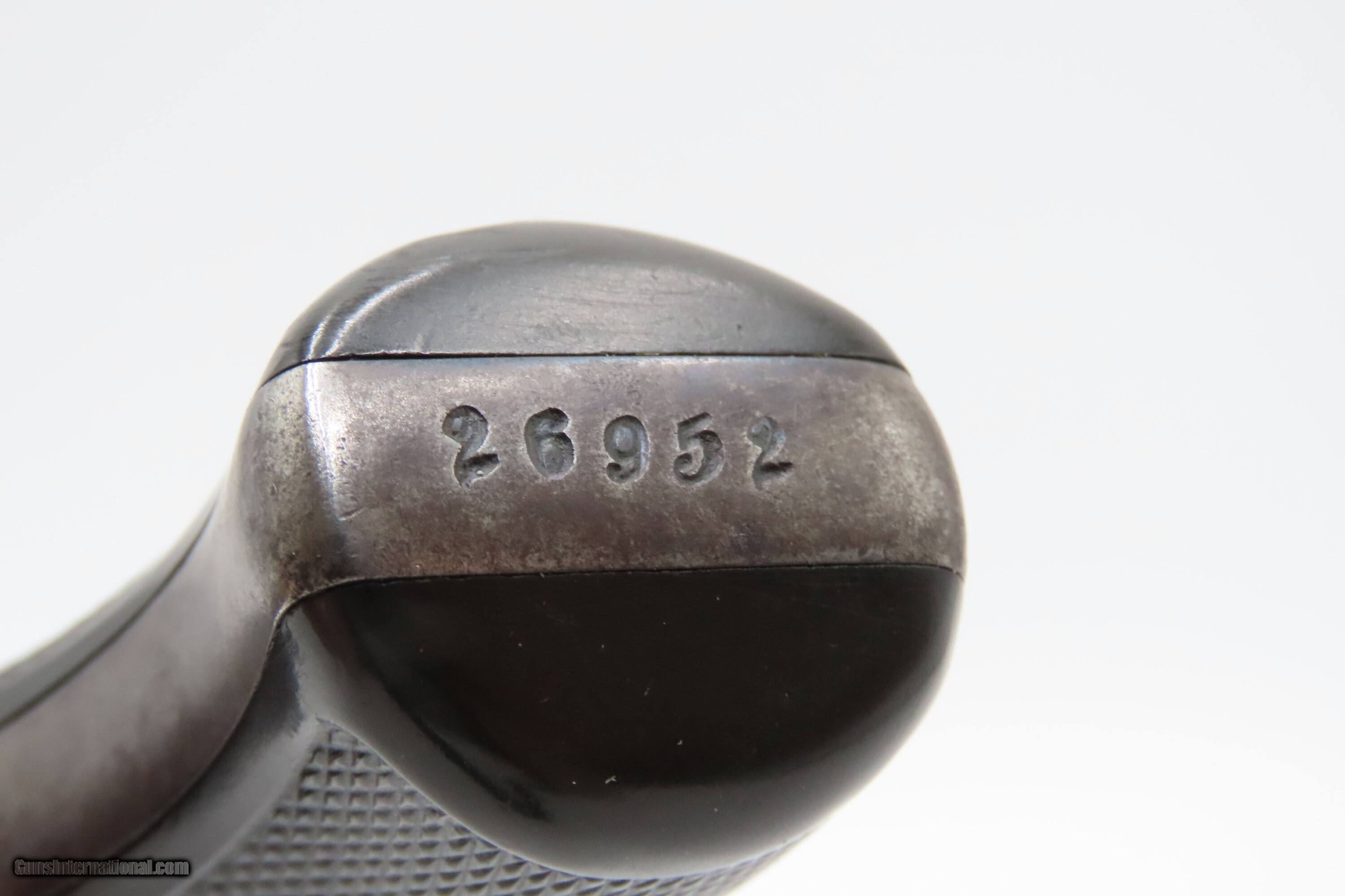 Description: JOHNSON COUNTY, KANSAS SHERIFF DEPUTY COLT “New Pocket” Revolver .32 C&R With BILLY CLUB, BADGE, I.D. CARD, and OBITUARY Here we present a C&R Kansas Deputy Sheriff Colt New Pocket Revolver, made in 1905 by the Colt Manufacturing Company with a production run from 1893 through 1905 in Hartford, Connecticut. This set belonged to Robert E. Hays, who at various points of his life was a master mechanic, Justice of the Peace, and Sheriff’s Deputy in Johnson County, Kansas. In addition to the Colt there is his badge, his appointment as Special Deputy Sheriff, a billy club, and his obituary. The New Pocket followed the introduction of Colt’s first large frame Double Action revolvers known as the Model 1889 Navy and Model 1892 New Army and Navy. These were the first Colts with a swing-out cylinder, with most of these early revolvers going to the U.S. Navy and U.S. Army and is a design concept that is still found today on all modern day double action revolvers. This revolver was available in both .32 Long Colt and .32 S&W. It holds 6 shots and was offered in barrel lengths of 2-1/2”, 3-1/2”, 5”, and 6”. The frame is stamped “Colt’s New Pocket” and was available in either a blued or nickel plated finish. There were approximately 30,000 of the little self defense revolvers manufactured during its 12 year production run. This is actually a pretty scarce little revolver. The overall condition is fine. Much original blue is preserved. Excellent action. The bore has dimmed with some light spotting and maintains serviceable rifling. Both grips are fine. Markings are sharp. The oath card was in tatters but has been professionally restored so as to be legible. The accessories and accoutrements are in good shape and seem to have the stories to tell! Own the original! This is a legitimate antique and not a reproduction. Barrel is 3-1/2 inches. Caliber: .32 Colt Overall condition as seen in photos. Very Fast. Very Safe. FREE SHIPPING WORLDWIDE. Delivered directly to your door by express mail! Guaranteed AUTHENTIC & Includes CERTIFICATE OF AUTHENTICITY. ancestryguns $1600 #250013 Antique: Yes Price: $1,600.00 Buy Now Pay with
