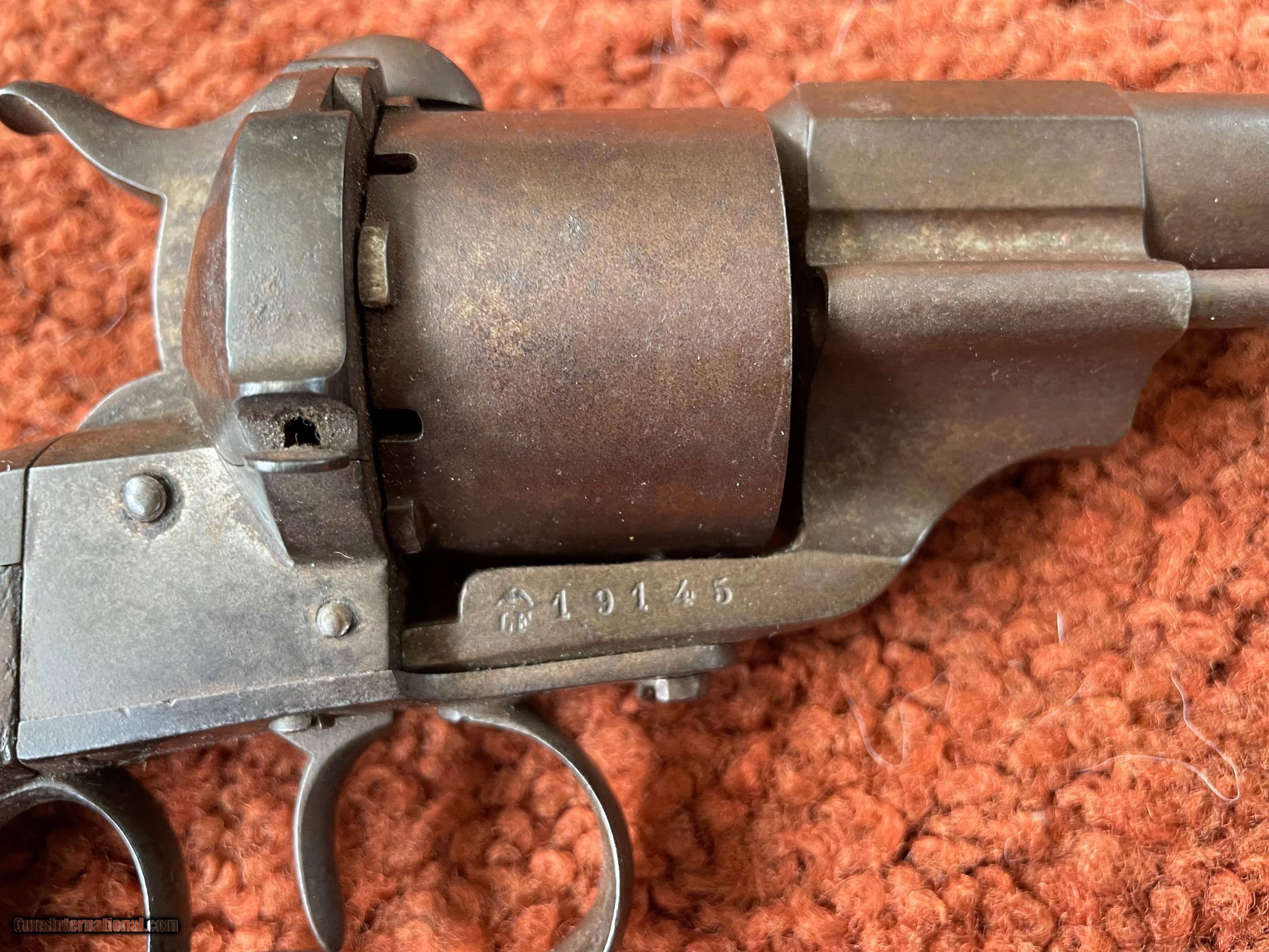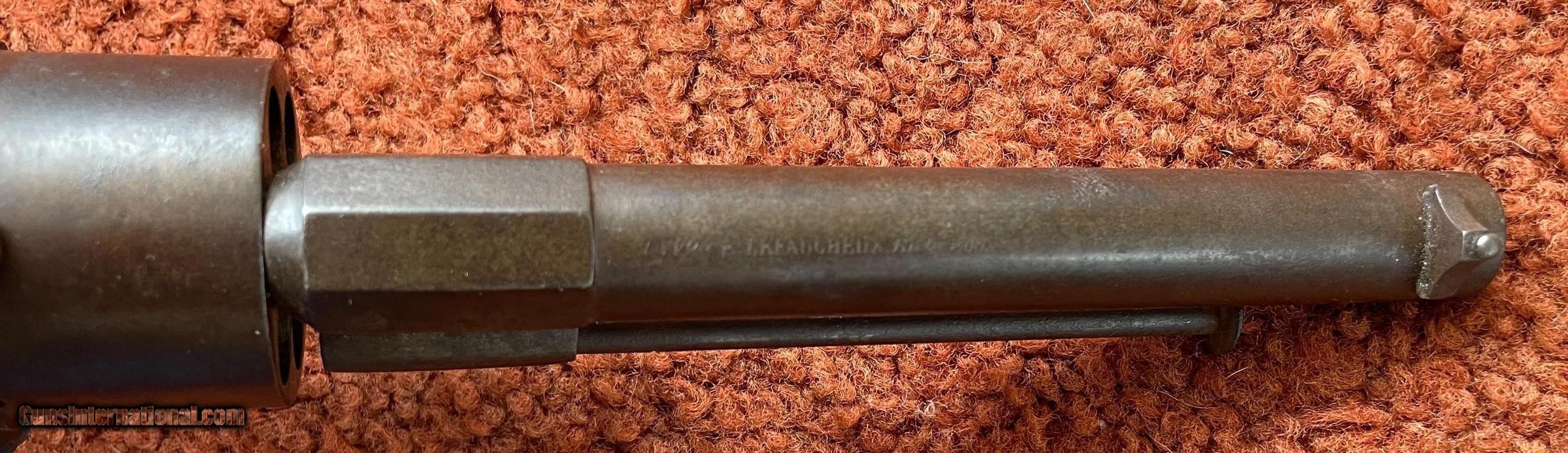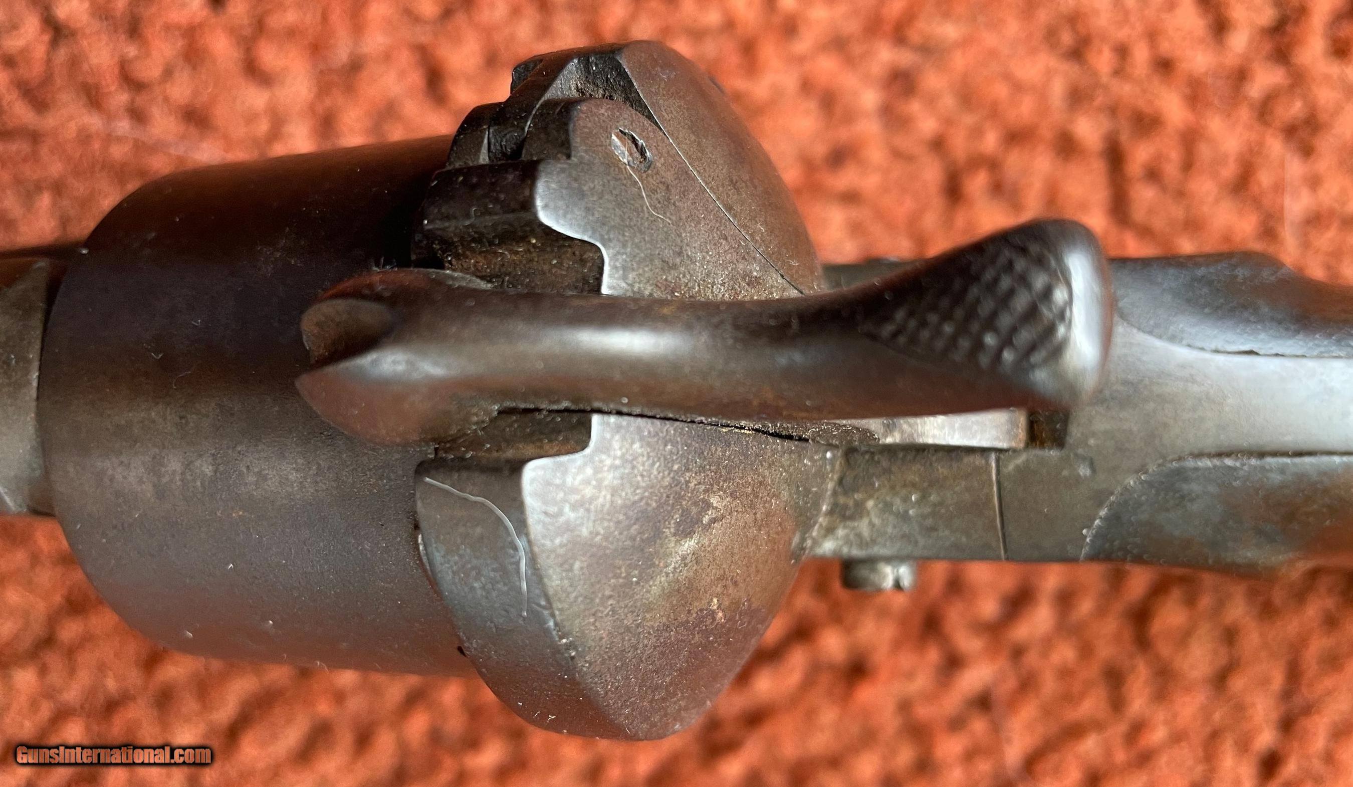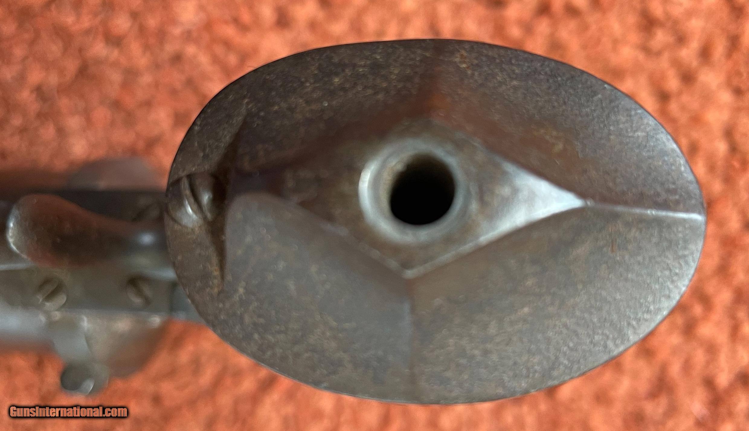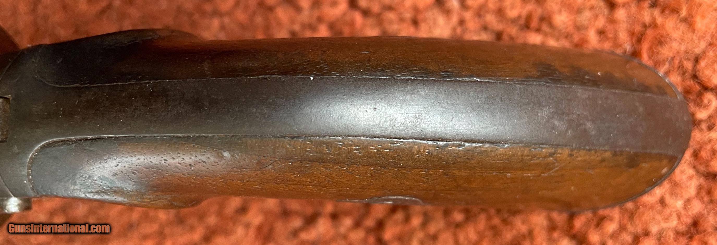 Description: Overall length 11.5' Barrel length 6.12" Bore measures 11.1MM The action operates perfectly The lanyard ring is missing. See photos for condition. SOLD Antique: Yes Serial Number: 191145 |