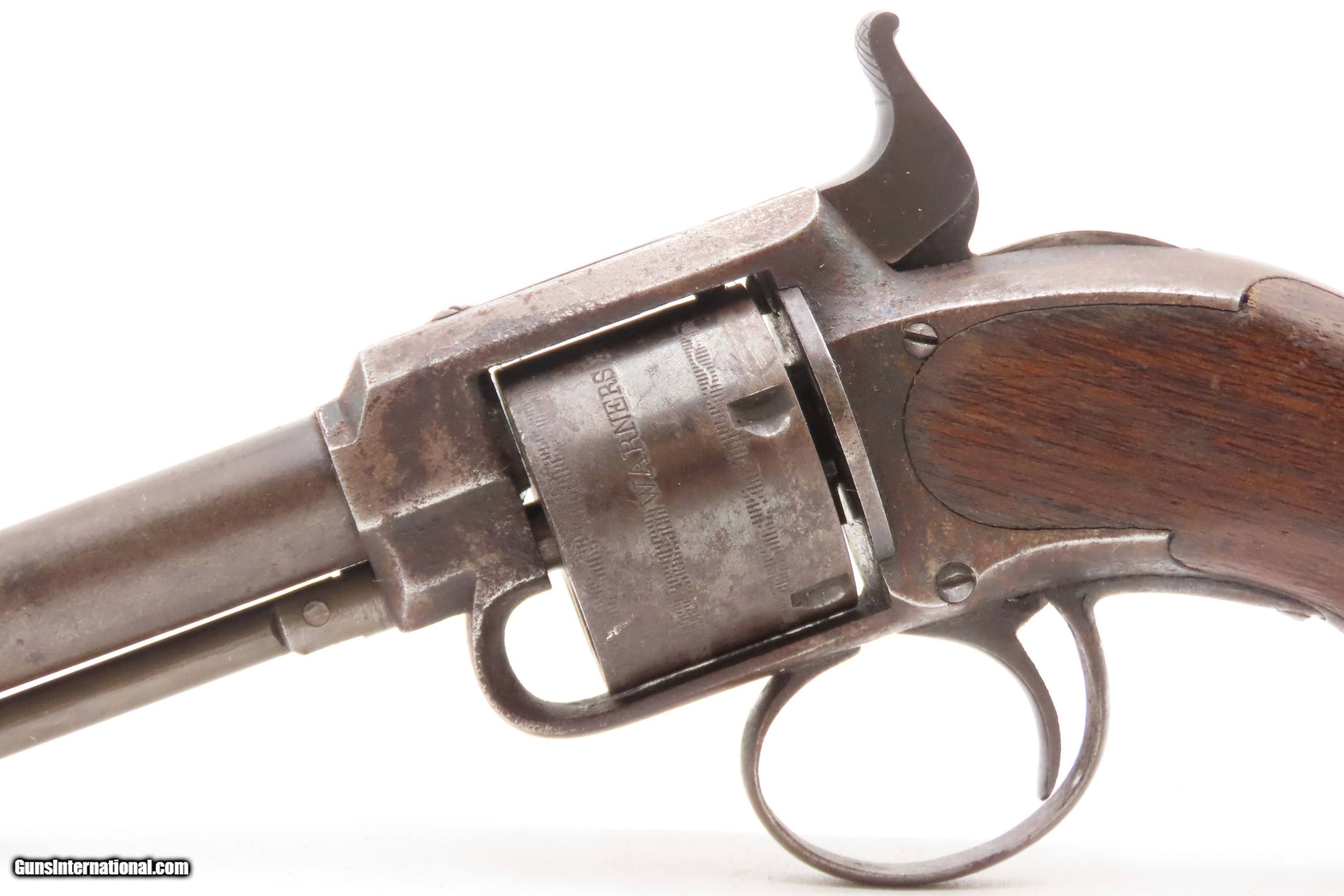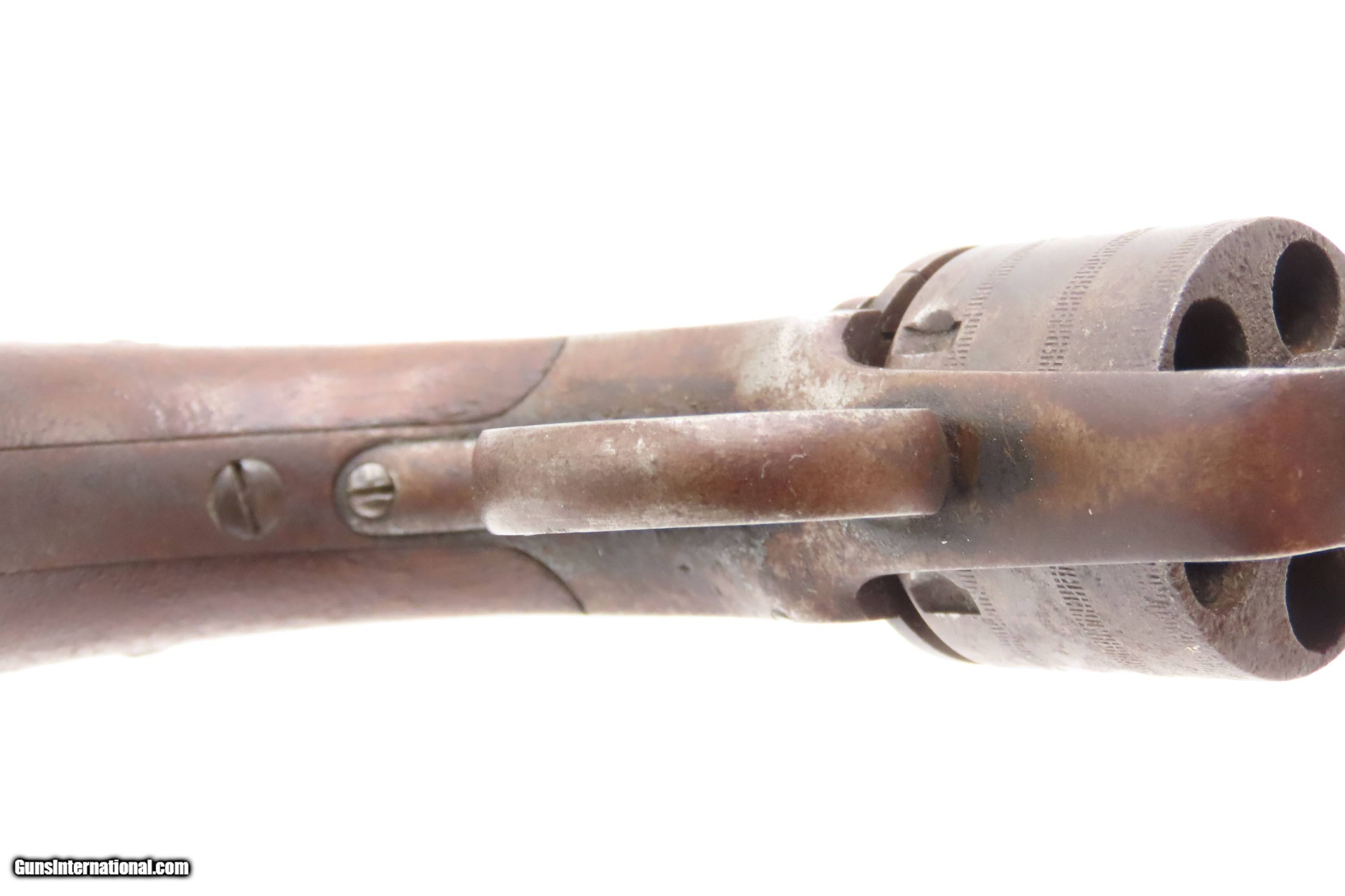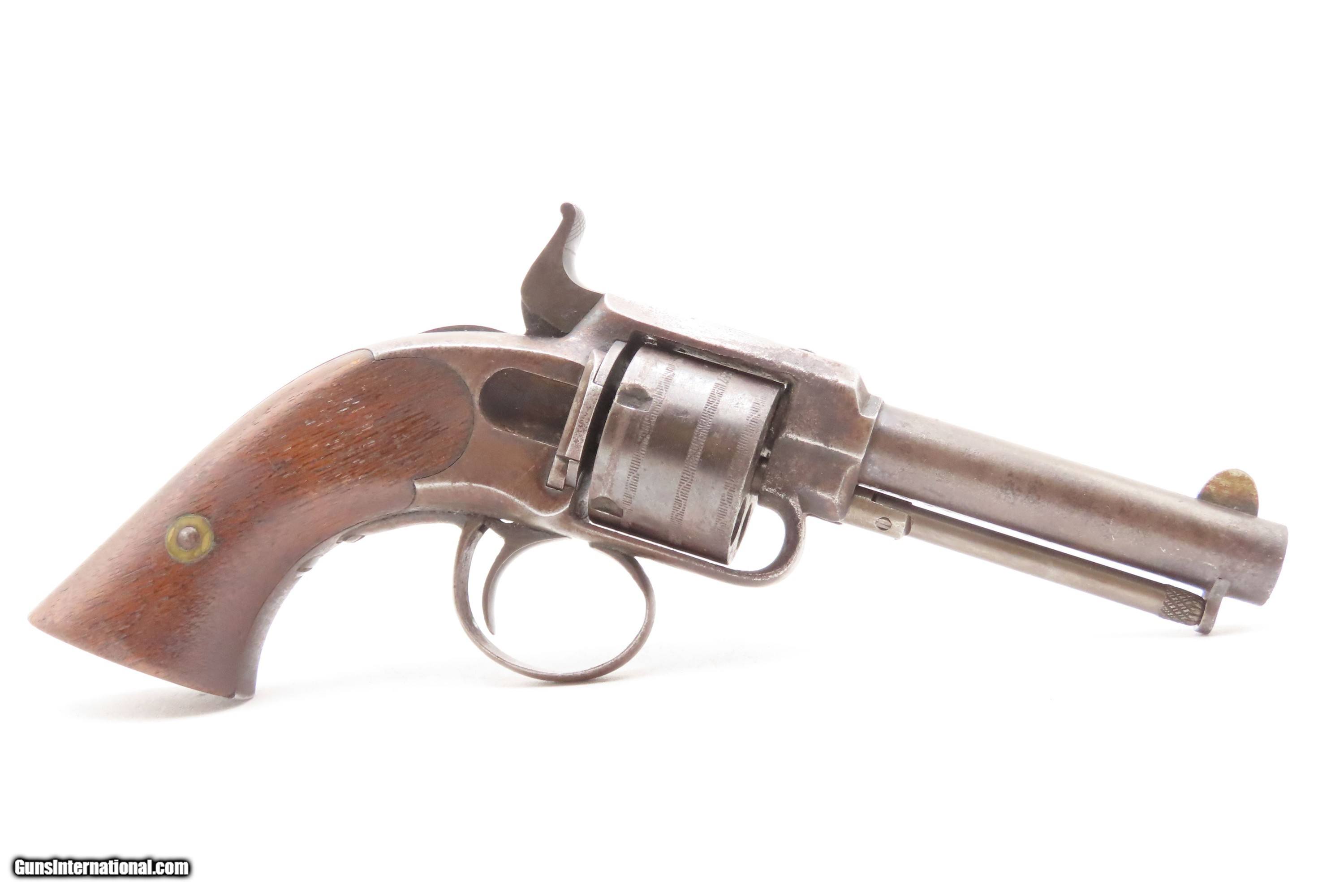 Description: Late 1860s VERY RARE Antique JAMES WARNER .30 RF Cartridge POCKET Revolver NICE & SCARCE Pocket Pistol; 1 of only 1,000 Made Here Ancestry Guns presents an antique James Warner Patent Cartridge Pocket Revolver, one of only around 1000 made circa the late 1860s, in Springfield, Massachusetts. James Warner was a prolific inventor and gun maker who was at one time or another engaged with the following gun makers: Springfield Arms Co., Massachusetts Arms Company, Edwin Wesson, Wesson Stevens & Miller, and Warner & Wesson. Production of this cartridge revolver was halted due to violation of the Rollin White patent. Earlier Warner percussion revolvers were also removed from production due to patent infringement suits. Because of these suits, Warner managed to distinguish himself from many other gun makers by being sued for patent infringement and losing twice, to Colt and to Smith & Wesson, respectively—once with his percussion design and once for this cartridge design. As would be expected, he had to stop production in each instance. The first occasion was with Warner’s preemptive manufacture of a revolving percussion rifle, since Colt’s patent was about to expire, when, in fact, Colt received a patent extension. He was forced to cease production and label his guns for S&W on the second occasion. The overall condition is good. This example shows a mix of gray and brown patinas. The action functions, but the cylinder does not lock up. Good bore for its age with serviceable rifling. Solid grips, remain good with average wear. Markings are discernable. Numbers match. Own the original! This is a legitimate antique and not a reproduction. Barrel is 3 inches. Caliber: .30 Rimfire Overall condition as seen in photos. Very Fast. Very Safe. FREE SHIPPING WORLDWIDE. Delivered directly to your door by express mail! Guaranteed AUTHENTIC & Includes CERTIFICATE OF AUTHENTICITY. $1500 #259801 Antique: Yes Price: $1,500.00 Buy Now Pay with