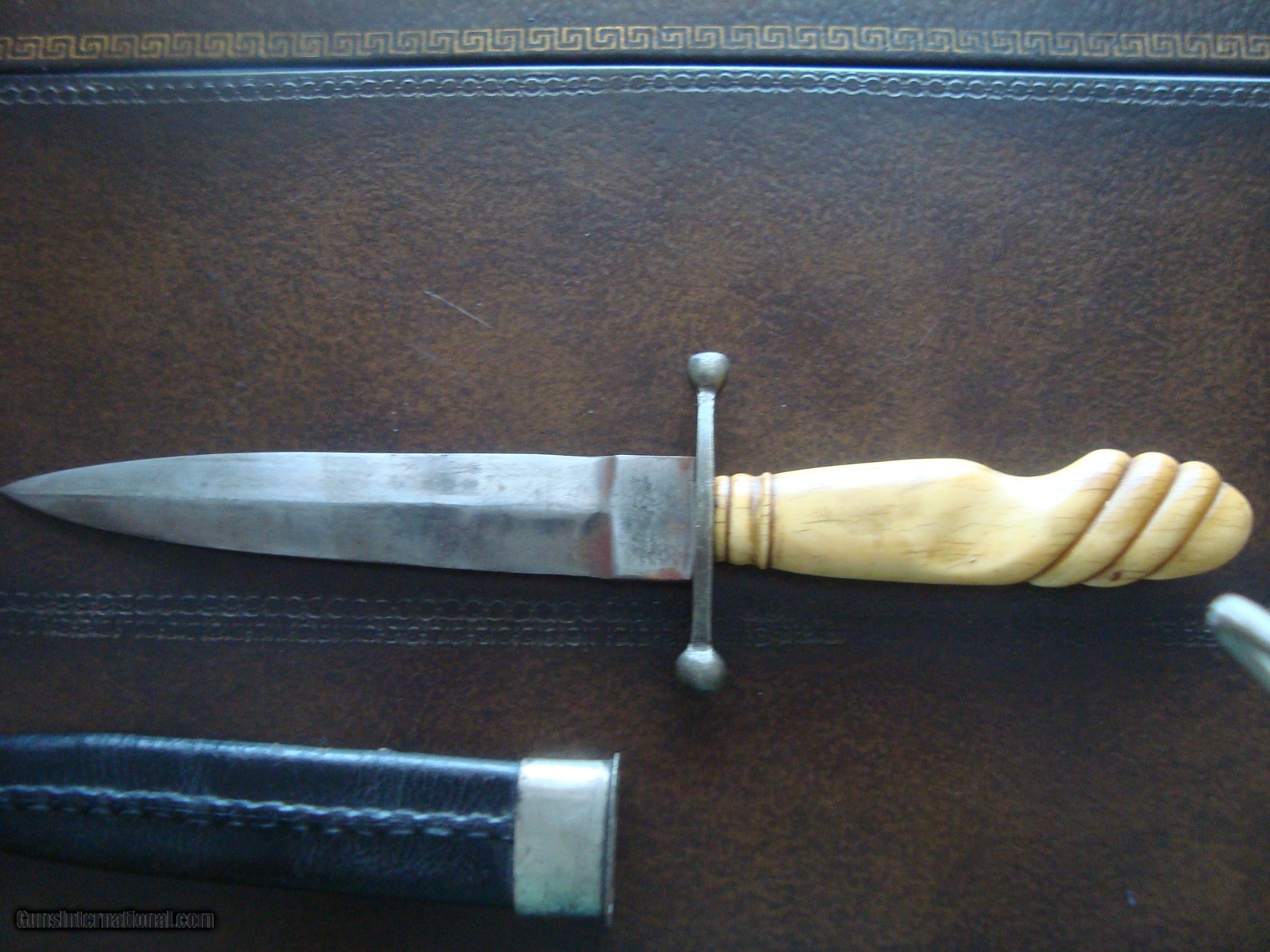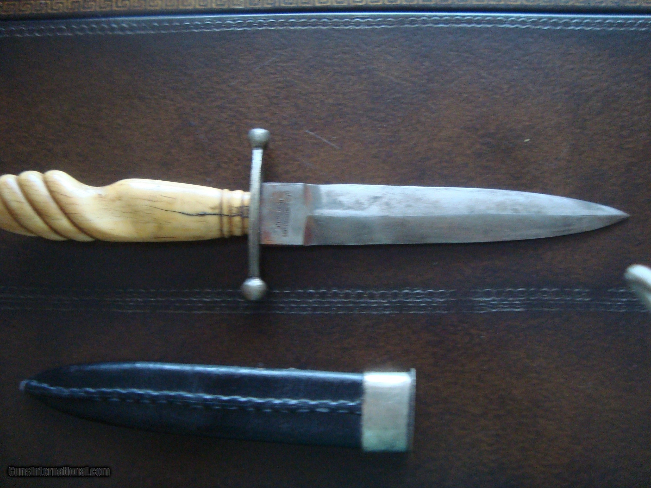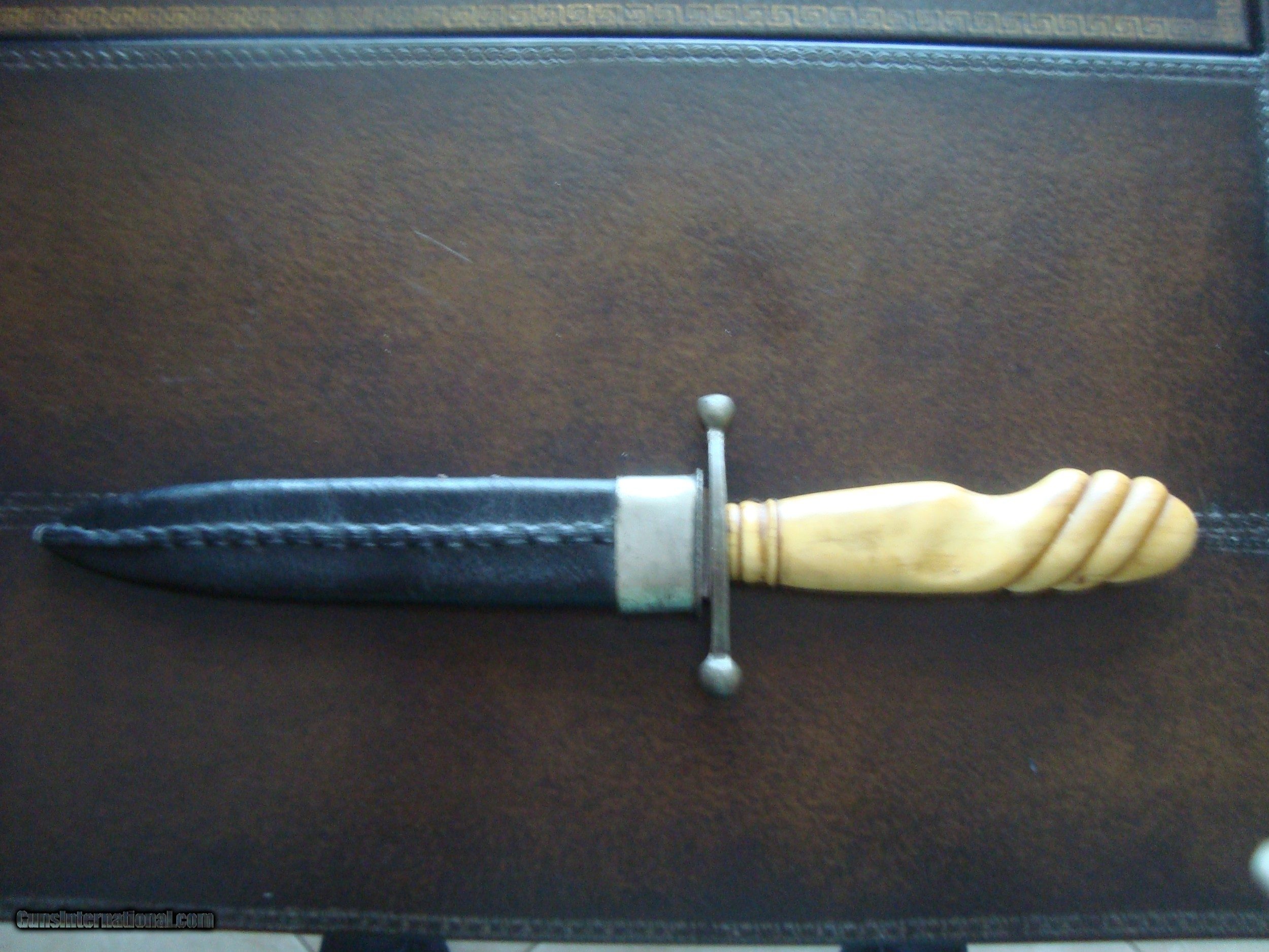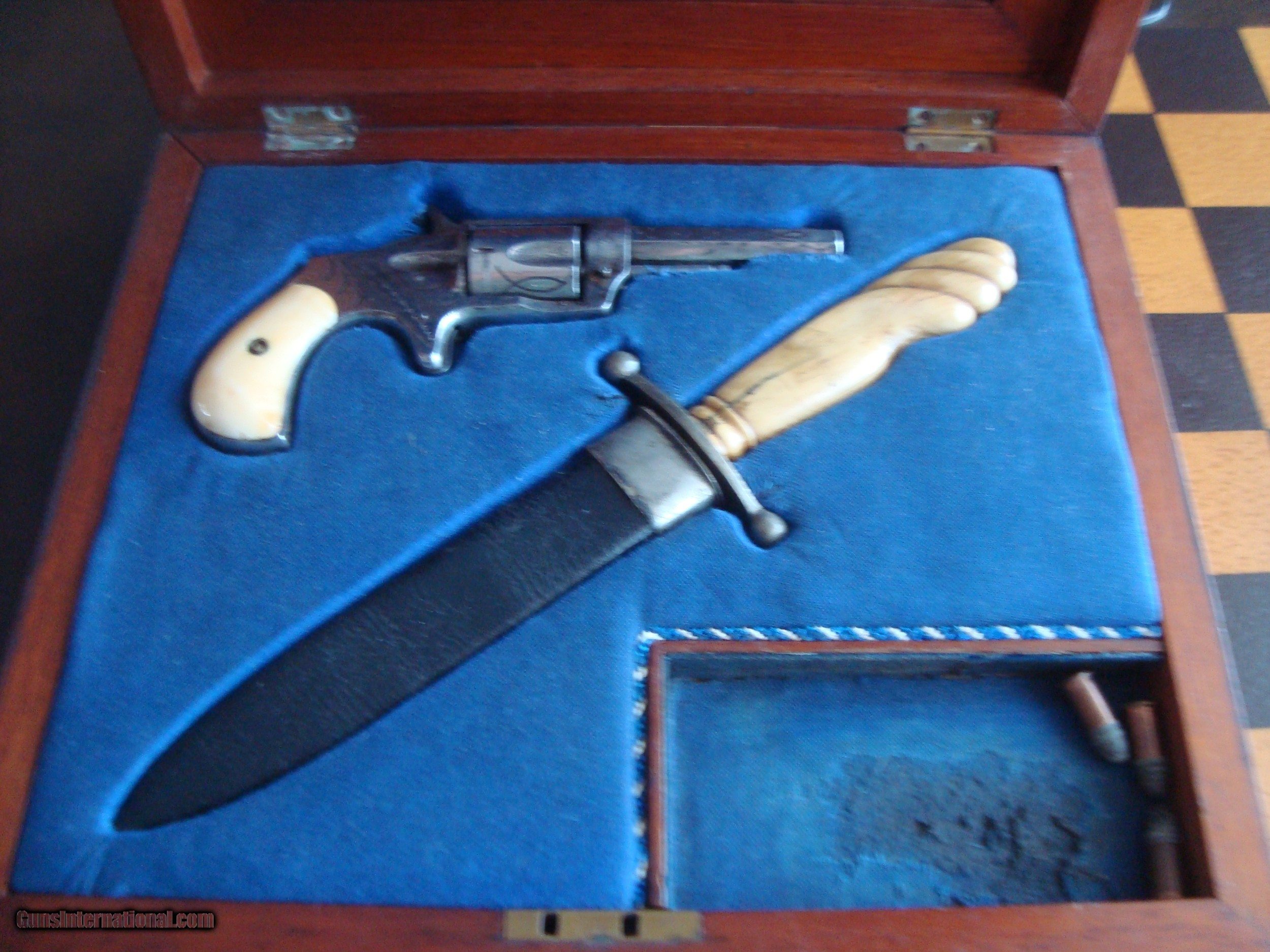 Description: This is a superb 1800's Spear Point Bowie knife made by J.D.Chrvlier New York with a leather sheath bone grip. Along with a sper trigger, nickel plated, engraved Long Star No.2 pistol in good working order. Manufactured. by The New York Pistol Company.with bone grips, Sn.1888, and a patent date of 1875, in cal 32 rim fire. In a nice old walnut presentation case. Shipping and Insurance $ 35.00 Priority Mail to the lower 48 states, no sales out of the USA. SOLD Antique: Yes Handgun Caliber: .32 Rimfire |