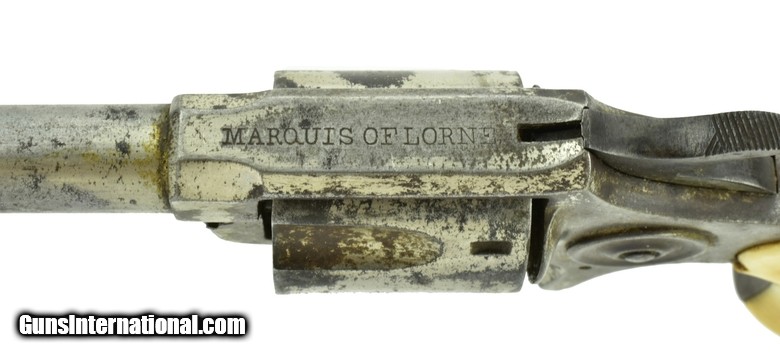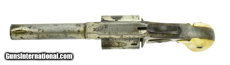 Marquis of Lorne by Hoode Firearms. .32 Caliber. 30% of the original nickel. This gun has ivory grips. The action cocks, but the cylinder does not revolve.