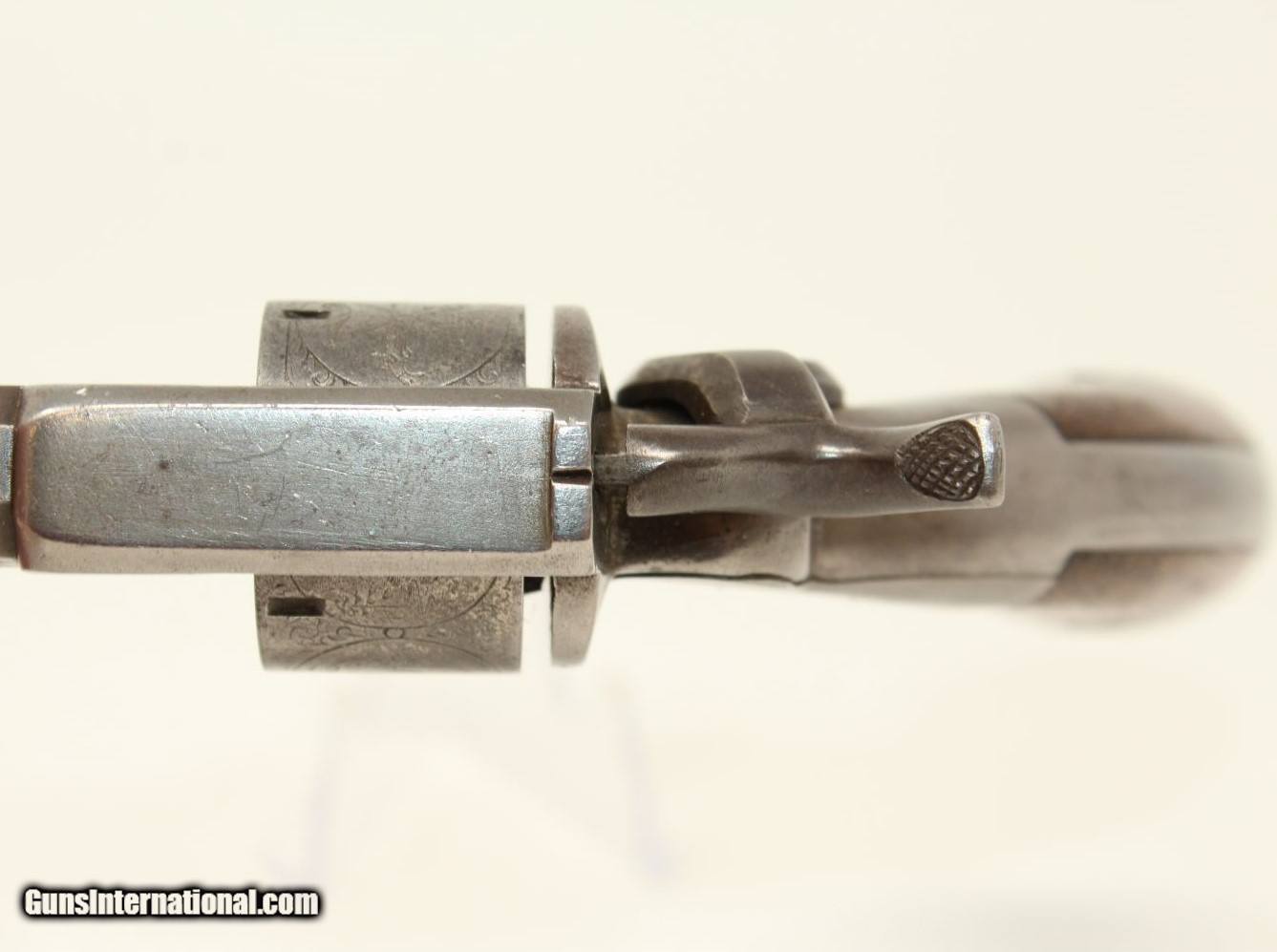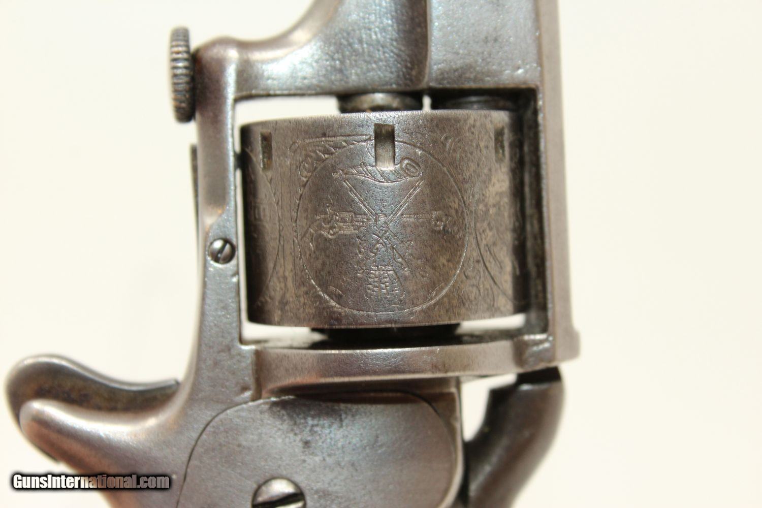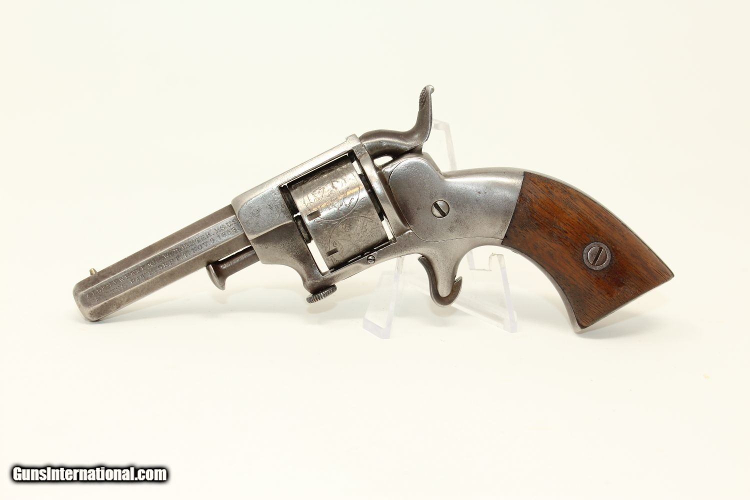 Description: MASSACHUSETTS Themed Cylinder Scenes Allen & Wheelock SIDEHAMMER Revolver 5-Panel Cylinder Scene and Walnut Grips! Here we present an antique Allen & Wheelock Sidehammer Revolver, made circa 1858 in Worcester, Massachusetts. There we 8 different variants of this revolver made between 1858 and 1865, and only 1,500 are thought to have been made total, making this a very scarce little revolver. The most immediately eye-catching feature on this revolver is the side-mounted hammer on the right side of the gun. The next is the 5-panel cylinder scene featuring a version of the Massachusetts State seal with a Native American and a star, a collection of cannon and other small arms, a horseman charging with a spear raised overhead, crossed rifles and handguns, and ship with a fort in the background. The left side of the barrel is marked “ALLEN & WHEELOCK. WORCESTER. MASS./ALLEN’S PAT’S. SEPT. 7. NOV. 9. 1858.” The overall condition is Very Good+. The bore is in good condition with nice 3-groove rifling. The action is as strong as ever in this little guy. The markings are all very clear, notably and impressively, the cylinder scenes. A very attractive little pocket revolver from the 1860s! Own the original! This is a legitimate antique and not a reproduction. Barrel is 2-1/2 inches. Caliber: .22 Rimfire Overall condition as seen in photos. Very Fast. Very Safe. FREE SHIPPING WORLDWIDE. Delivered directly to your door by express mail! Guaranteed AUTHENTIC & Includes CERTIFICATE OF AUTHENTICITY. ancestryguns $1150 #190667 SOLD Antique: Yes |