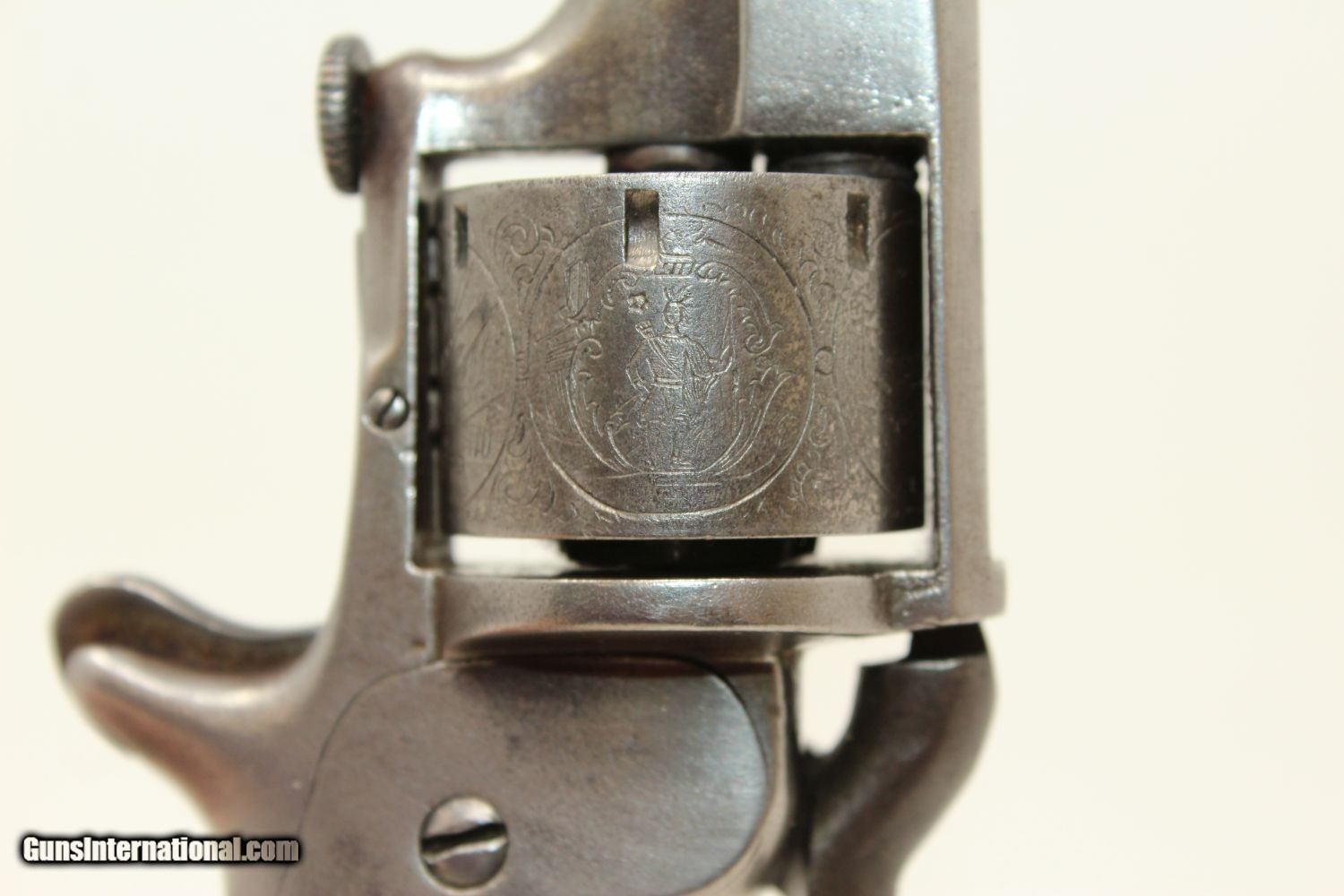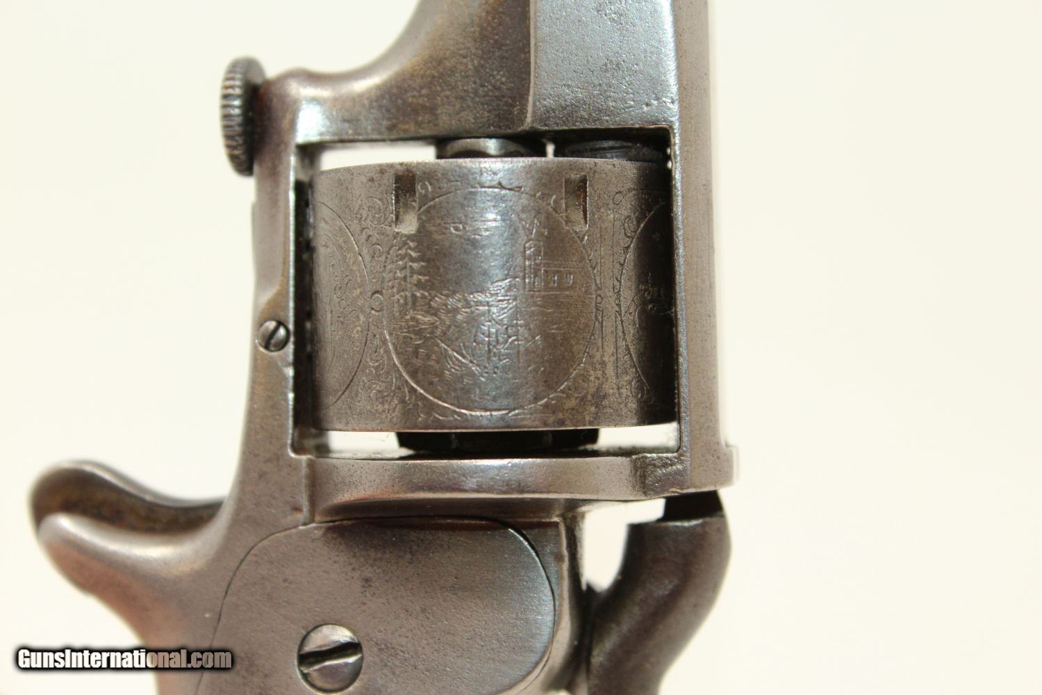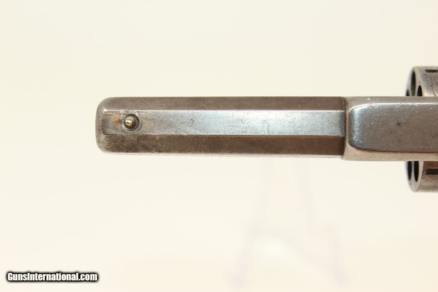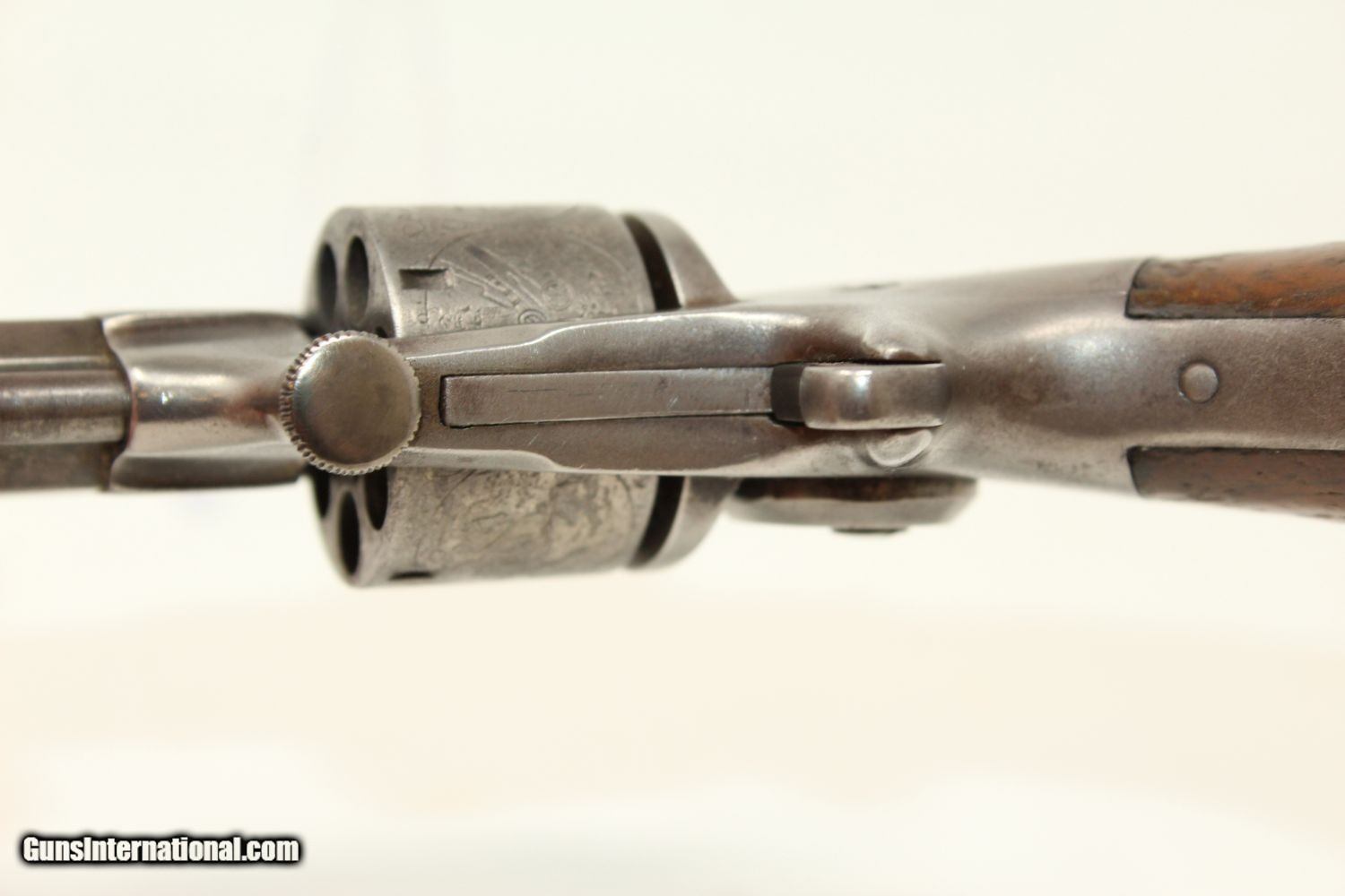 Description: MASSACHUSETTS Themed Cylinder Scenes Allen & Wheelock SIDEHAMMER Revolver 5-Panel Cylinder Scene and Walnut Grips! Here we present an antique Allen & Wheelock Sidehammer Revolver, made circa 1858 in Worcester, Massachusetts. There we 8 different variants of this revolver made between 1858 and 1865, and only 1,500 are thought to have been made total, making this a very scarce little revolver. The most immediately eye-catching feature on this revolver is the side-mounted hammer on the right side of the gun. The next is the 5-panel cylinder scene featuring a version of the Massachusetts State seal with a Native American and a star, a collection of cannon and other small arms, a horseman charging with a spear raised overhead, crossed rifles and handguns, and ship with a fort in the background. The left side of the barrel is marked “ALLEN & WHEELOCK. WORCESTER. MASS./ALLEN’S PAT’S. SEPT. 7. NOV. 9. 1858.” The overall condition is Very Good+. The bore is in good condition with nice 3-groove rifling. The action is as strong as ever in this little guy. The markings are all very clear, notably and impressively, the cylinder scenes. A very attractive little pocket revolver from the 1860s! Own the original! This is a legitimate antique and not a reproduction. Barrel is 2-1/2 inches. Caliber: .22 Rimfire Overall condition as seen in photos. Very Fast. Very Safe. FREE SHIPPING WORLDWIDE. Delivered directly to your door by express mail! Guaranteed AUTHENTIC & Includes CERTIFICATE OF AUTHENTICITY. ancestryguns $1150 #190667 SOLD Antique: Yes |