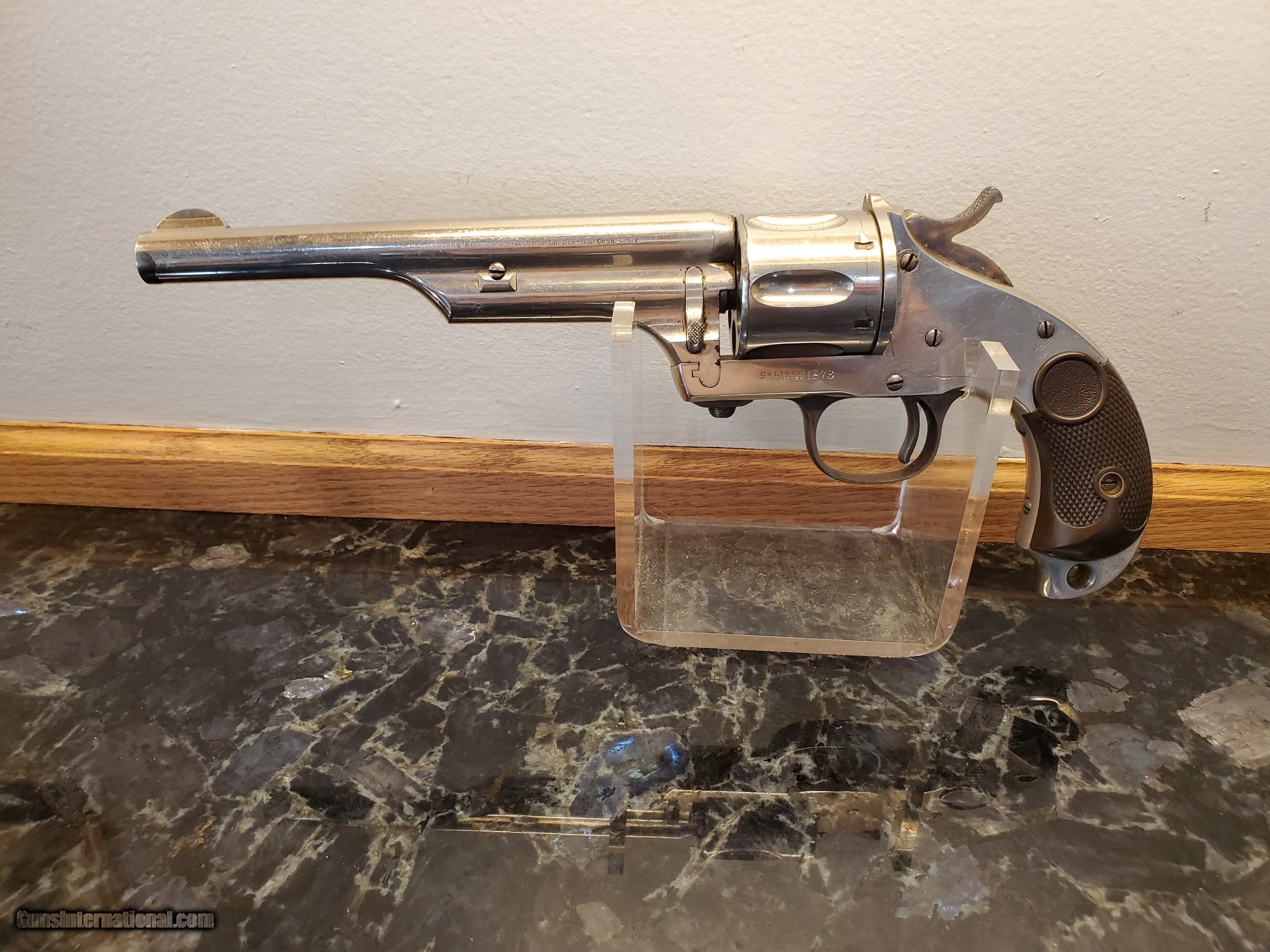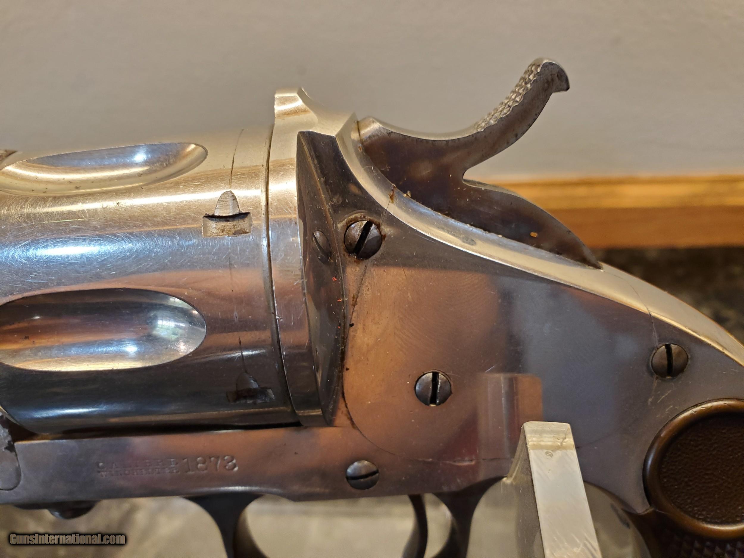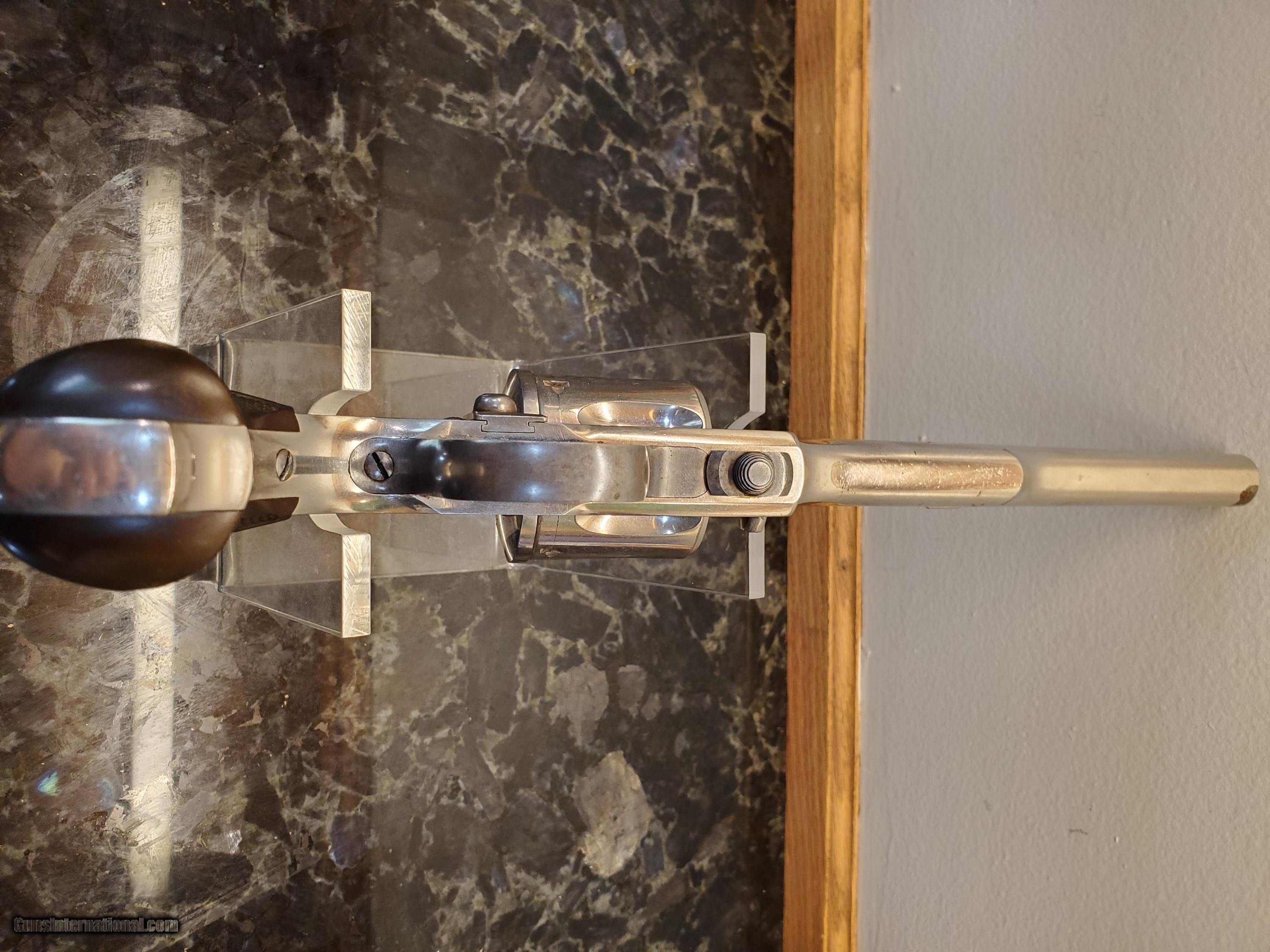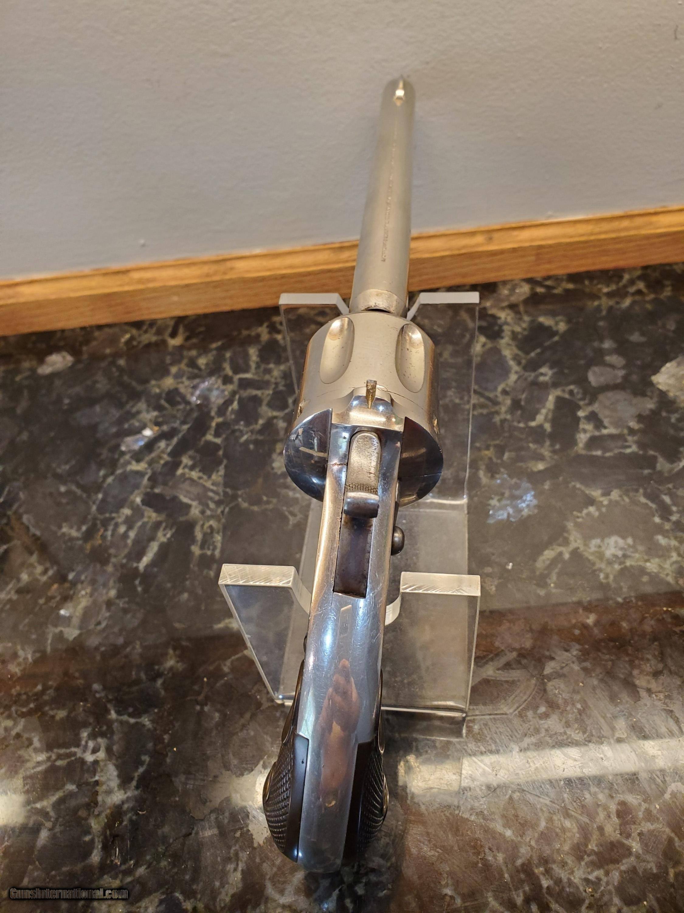 Description: sold Early, Merwin & Hulbert 44-40 revolver, all matching and original, this is the best I have ever owned from my collection. I will let the photos speak for themself. Excellent plus grips, finish the action. All spectacular if you want the best here it is. SOLD Antique: Yes Handgun Caliber: .44-40 Winchester (.44 WCF) Manufacturer: Merwin & Hulbert Model: single action Serial Number: 4782 Bore: excellent |