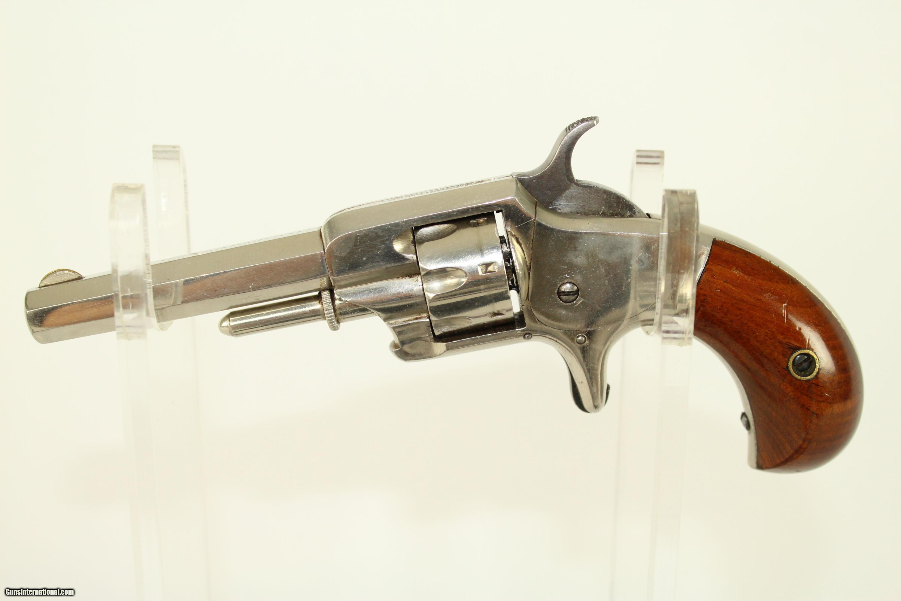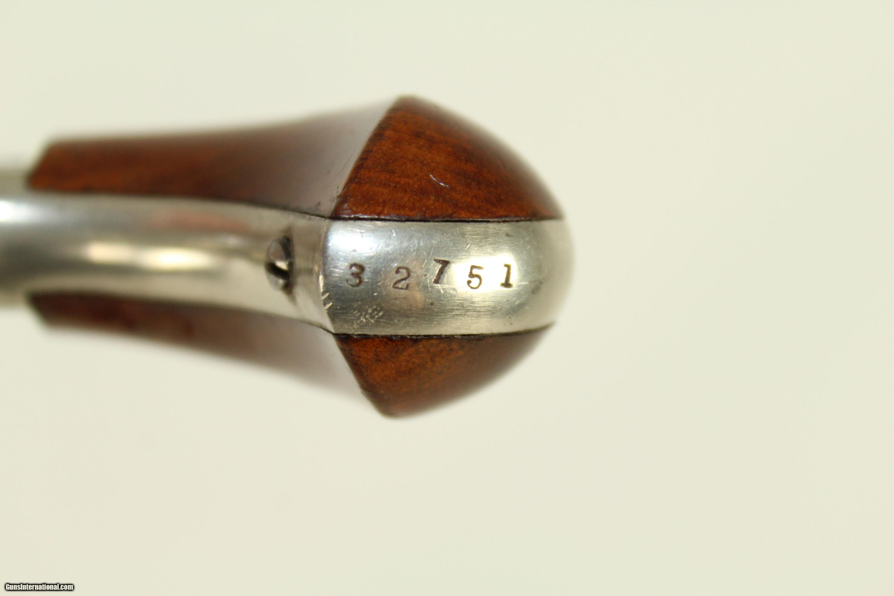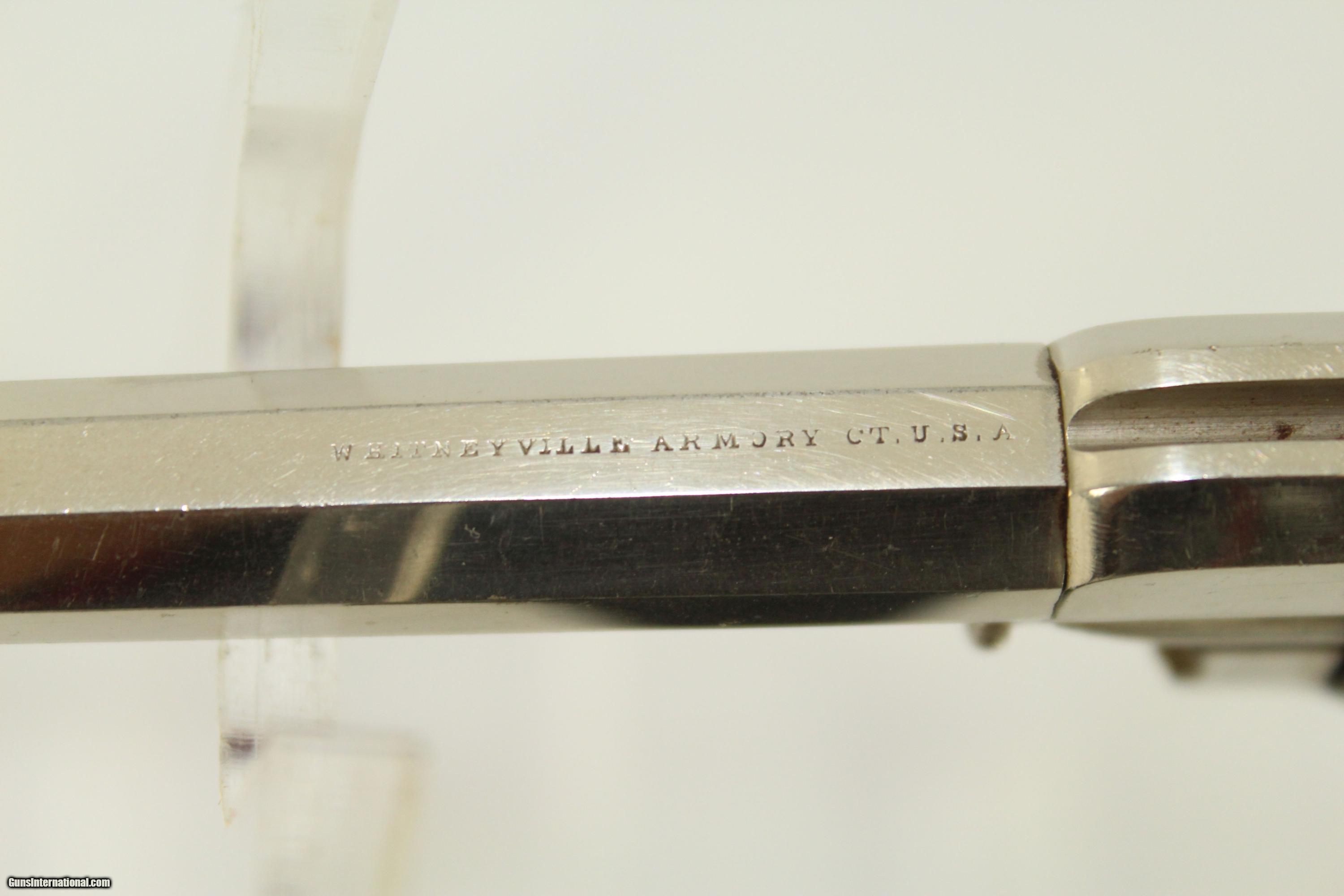 Description: Antique Whitneyville No. 1 Spur Trigger Revolver .22 Short Mint Condition Revolver from Eli Whitney’s Arms Company Here we present an antique Whitneyville No. 1 Spur Trigger Revolver in .22 rimfire short. Only about 3500 of these were made circa 1870s. Whitneyville Armory was founded by Eli Whitney Sr., inventor of the famous cotton gin, in 1798. His son, Eli Whitney Jr. took over the business in the mid-19th century. The No. 1 is chambered for .22 rimfire short and holds 7 of the tiny cartridges in the short-fluted cylinder. Like many other spur trigger revolvers of the time, this was designed to be a handy little pocket pistol. You could always have it with you and it had just enough firepower to get one out of most garden-variety scrapes. This represents a type of pistol that was very popular in the late 1800s, both in Western boomtowns and big Eastern cities. This specimen is in excellent condition. All nickel finish is intact. The case colors on the hammer and trigger are also nearly perfect. Wood grips are in fine condition. All markings are crisp and clear. Serial numbers match. Bore is excellent. Action is excellent. This gun is like new. This gun appears to be unfired and stored in a prime environment for the last 140 years. Here is a prime collector’s item that would be perfect for shooting. This is a legitimate antique and not a reproduction. Barrel is 3.25 inches in length. Caliber: .22 rimfire short Bore is in excellent condition. The firearm is in excellent working order. Overall condition as seen in photos. You won’t find a better example anywhere. Very Fast. Very Safe. FREE SHIPPING WORLDWIDE. Delivered directly to your door by express mail! Guaranteed AUTHENTIC & Includes CERTIFICATE OF AUTHENTICITY. ancestryguns $1050 #21557 SOLD Antique: Yes |