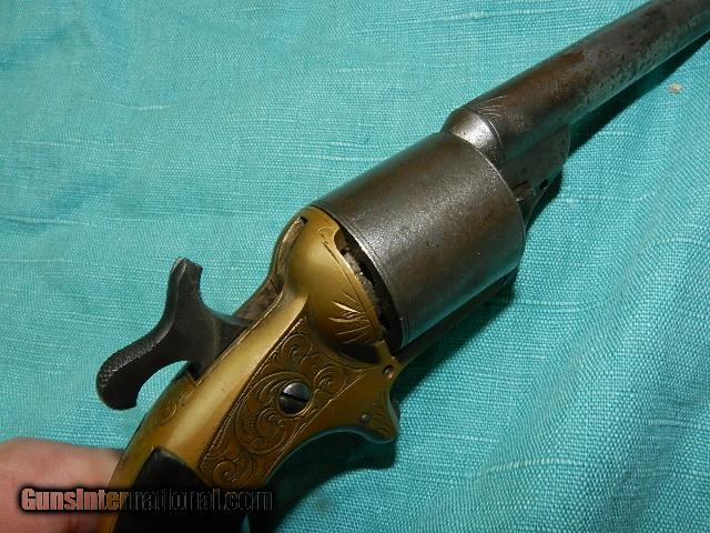 Description: A 19th century front loading Teat fire revolver with a brass chisel engraved frame in good condition with a tight lock-up and indexes well also. Has a 3 1/3" round barrel and good American walnut grips. This is historically one of the few front cartridge loading handguns in the world. Might say it's an oddity. Most of these were nickle plated and this one has traces of plating on the barrel with a clear maker address. SN 26007. To buy a gun from me you must get a direct email for me, with details, and shipping cost. We don’t have asite .I prefer money orders or a check. Item ships when funds come in. If you can only pay with a card let me know. I’m sorry I don’t list my phone number, did that for 30 days, never again.. I can’t talk on the phone all day…who will ship the guns? I’m just one person, and it’s very busy here! I do a brisk volume! I hope you like my wide selection of unusual guns, knives and gun parts. Shipping price determined by zip code. I try to keep the prices affordable, which means I make less money than most dealers. You won’t get altitude sickness with my prices! I consistently have the best selection of older guns If you attempt to buy, you must still contact us for details, buying doesn't end the sale, it just sends an email telling us you want to buy this gun. A phone call won’t secure a sale! Not home many times, the first buyer by email buys the gun !Thissite does not close down a sale when you do a BUY! I can get six buys in an hour, first buyer to email gets the guns, others are in second place! Best to send another email . Sometimes not home to get calls. Some guns are required shipment to a gun dealer near you for a transfer to you when it arrives. With the widest selection of older guns at great prices, We don’t have a store, and sell on the internet only. SOLD Antique: Yes |