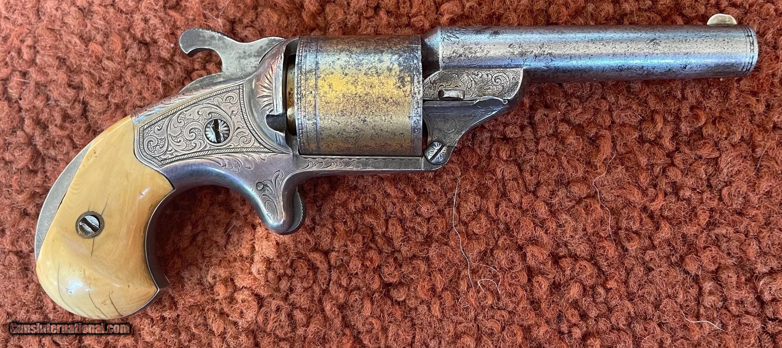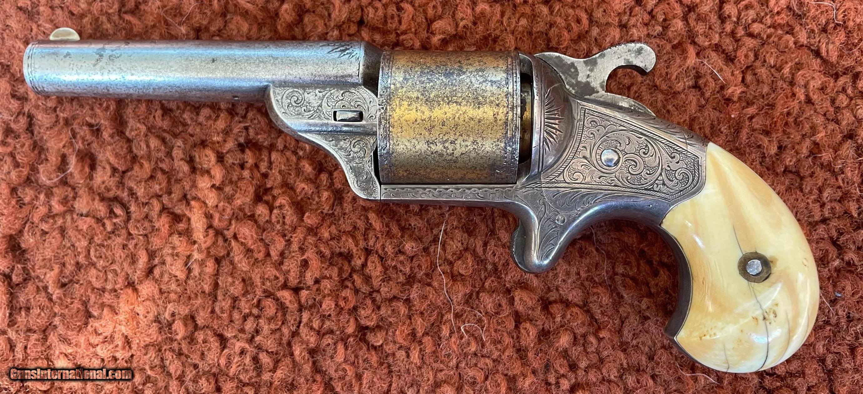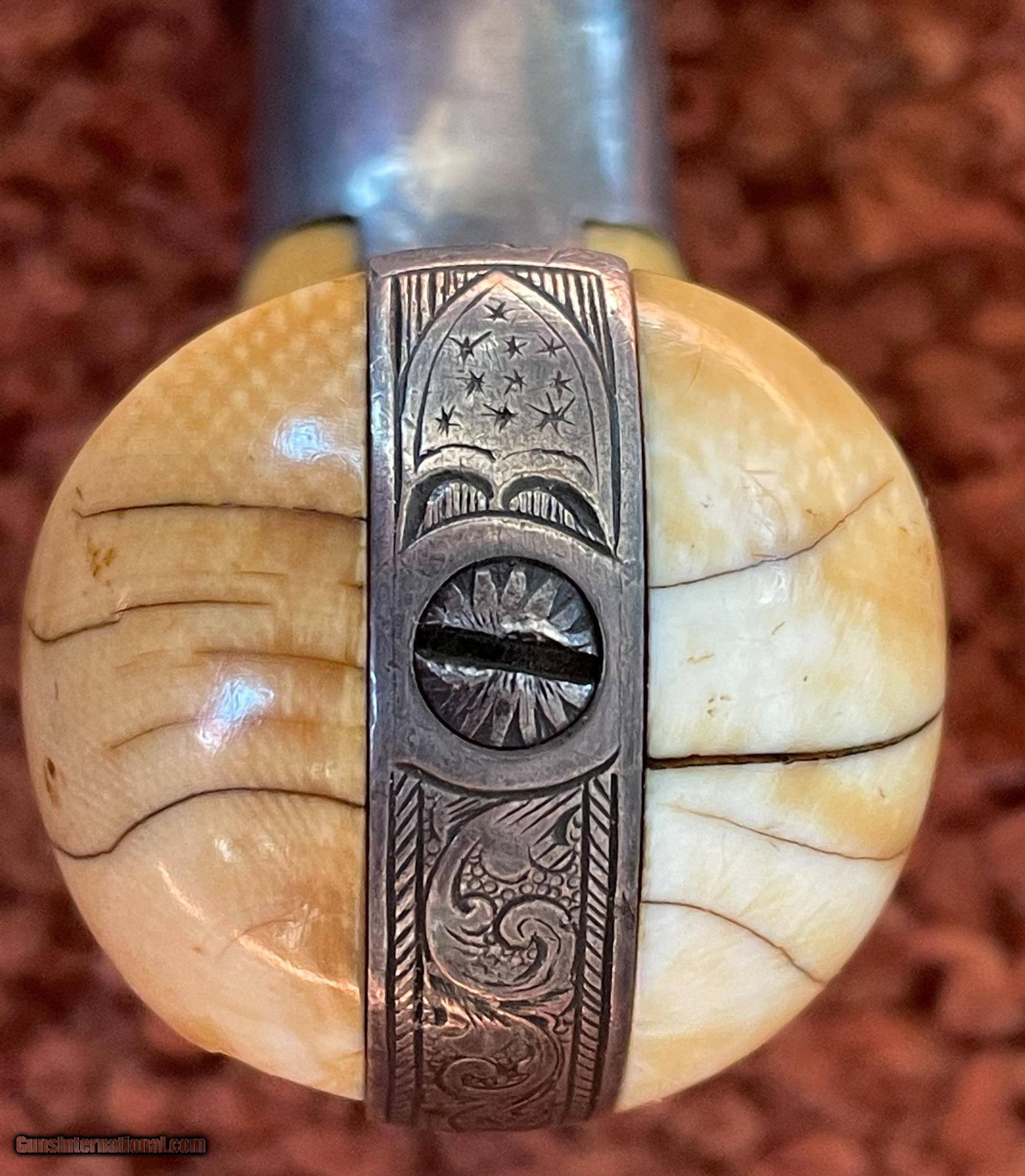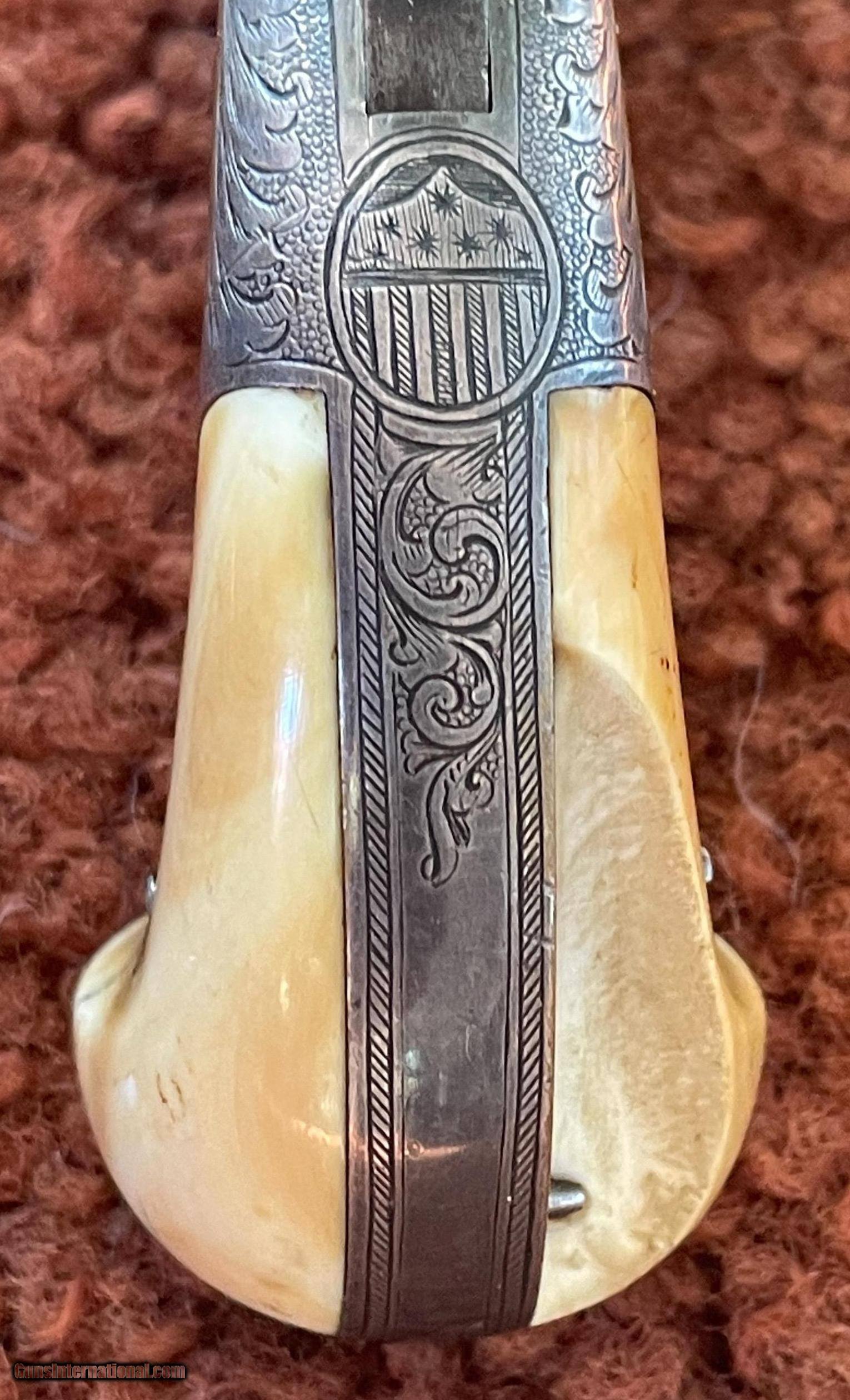 Description: Deluxe engraved with gold washed cylinder and ivory grips. The action is crisp. There is a section of ivory missing from the right grip. See photos for condition. SOLD Antique: Yes |