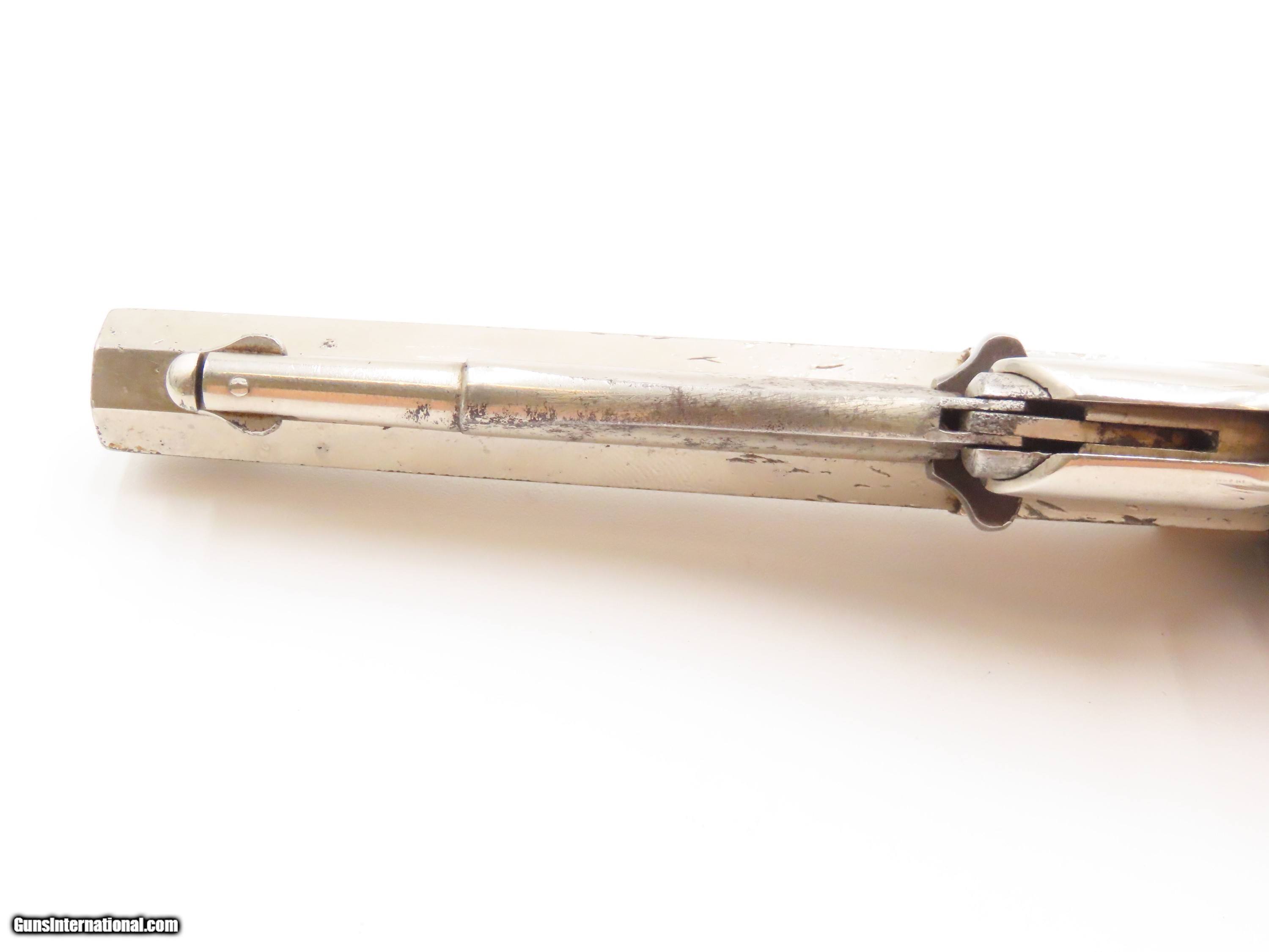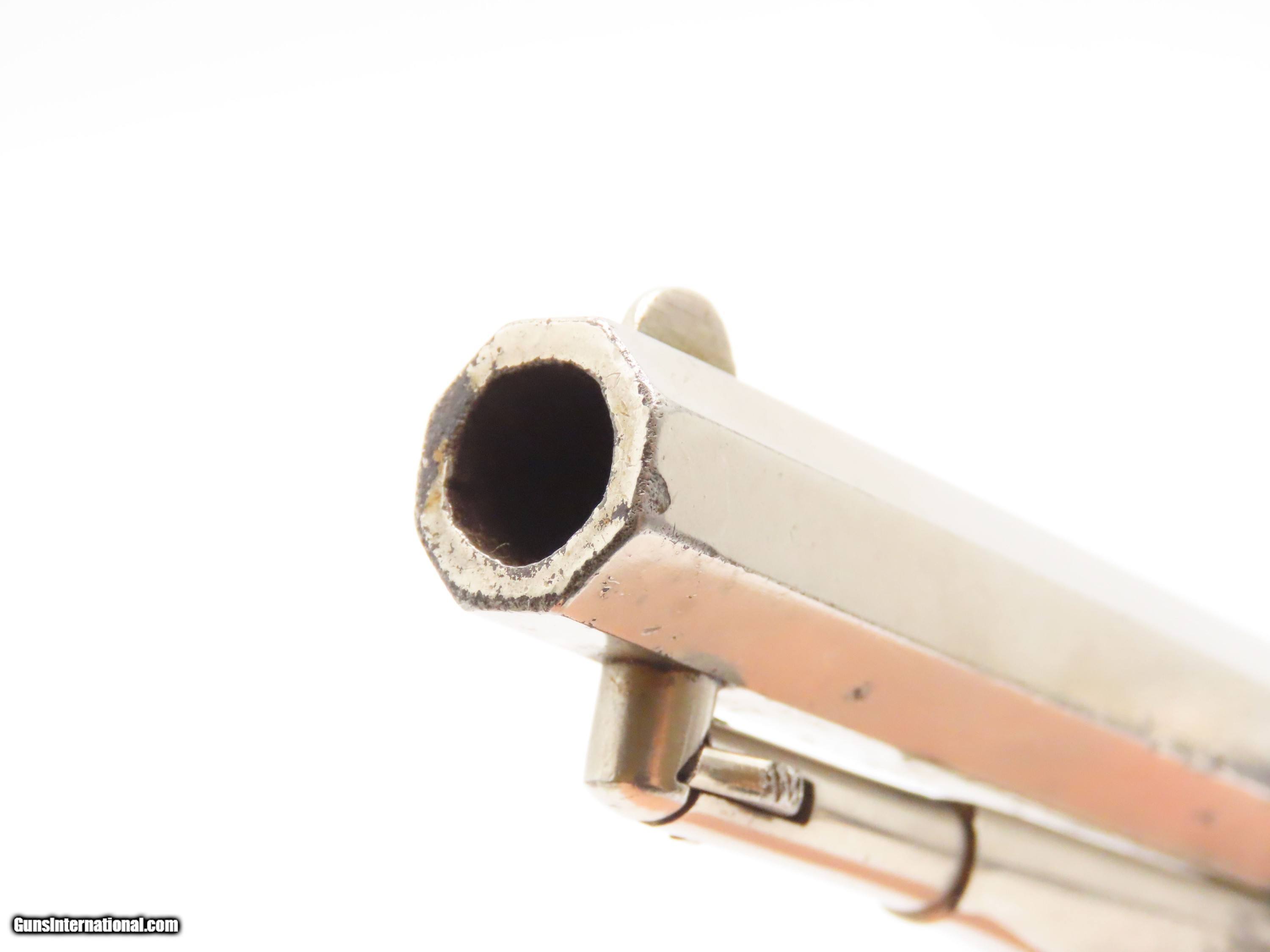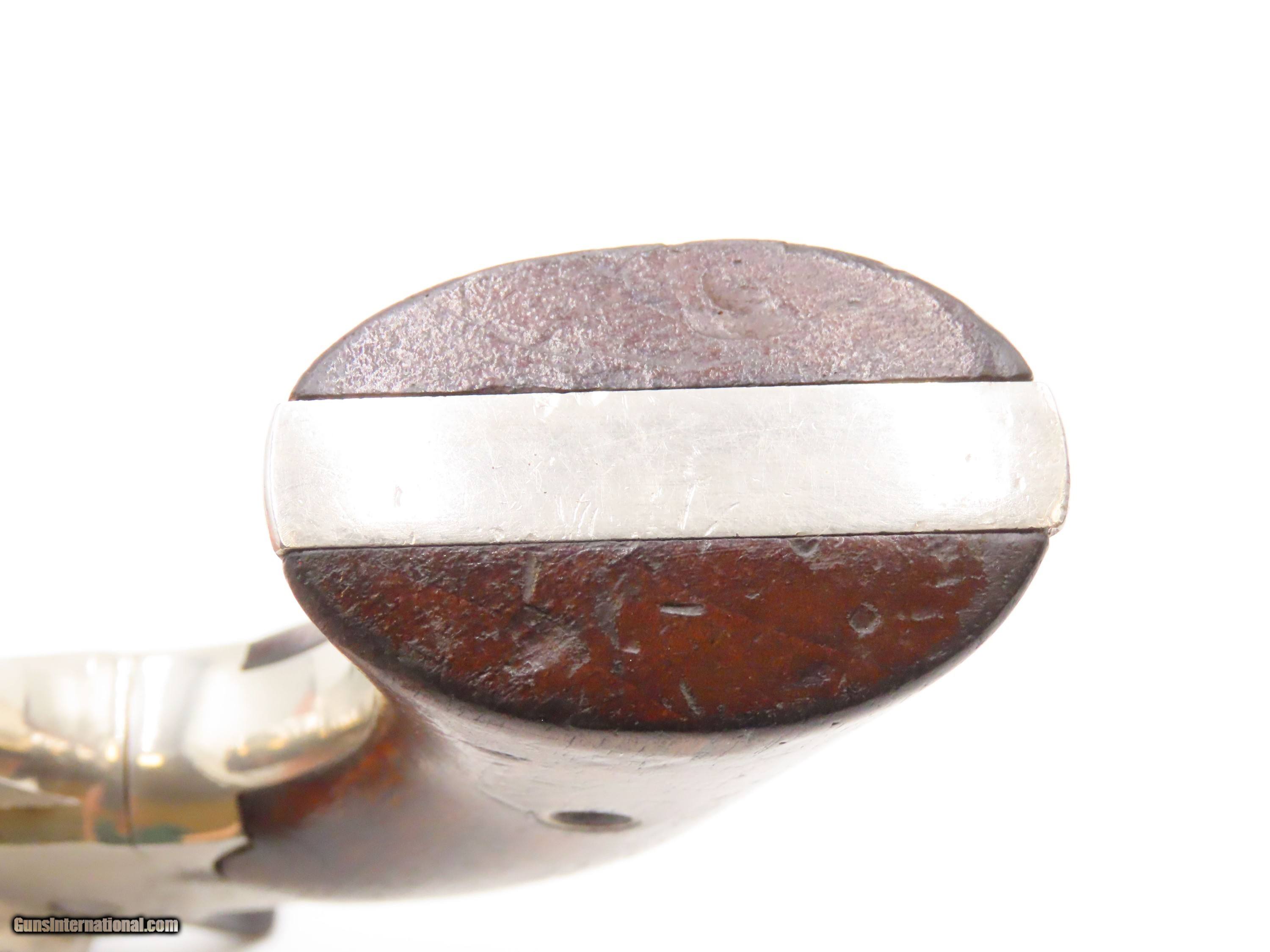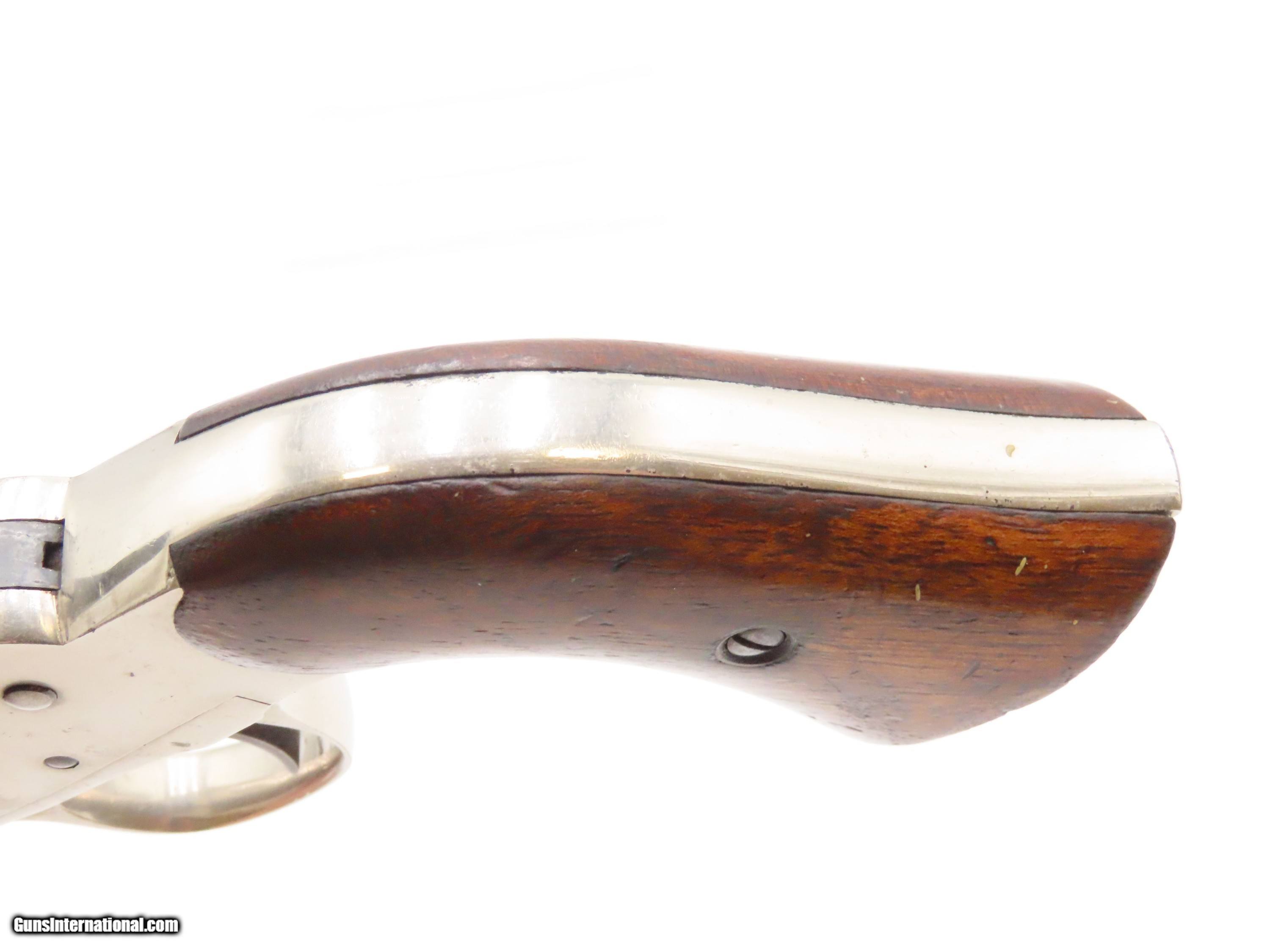 Description: NICE 1870s Antique REMINGTON “New Model” POLICE .38 RF CONVERSION Revolver Factory Converted to .38 Rimfire Cartridge Here we present an antique Remington New Model Police Cartridge Conversion Revolver, made circa 1865 to 1873 in Ilion, New York. It would have started out life as a .36 caliber percussion revolver prior to conversion. This sidearm, scaled down from the Remington Navy and Belt models, was one of some 18,000 factory alterations from percussion to metallic rimfire cartridge. Designed to compete with the Colt Model 1862 Police sidearm and the Pocket Navy revolvers, this .38 caliber rimfire, five-shot two-piece cylinder is fitted with a special plate on the front shoulder. This would have been a nice, unobtrusively sized revolver to carry in a holster. With 5 rounds of .38 rimfire, one could get themselves out of most scrapes. This revolver would have been modified to accept metallic cartridges near the expiration of the Smith & Wesson owned Rollin White Patent, which prevented other companies from using the bored through cylinder until 1869. The overall condition is very fine. Bright, original nickel finish. Excellent action. The bore is in goo shape for its age with a lightly frosted appearance and sharp rifling. Good, solid grips with average handling wear. Sharp markings. Own the original! This is a legitimate antique and not a reproduction. Barrel is 4-1/2 inches. Caliber: .38 Rimfire Overall condition as seen in photos. Very Fast. Very Safe. FREE SHIPPING WORLDWIDE. Delivered directly to your door by express mail! Guaranteed AUTHENTIC & Includes CERTIFICATE OF AUTHENTICITY. ancestryguns $2200 #250209 Antique: Yes Price: $2,200.00 Buy Now Pay with ![]() Contact Seller |