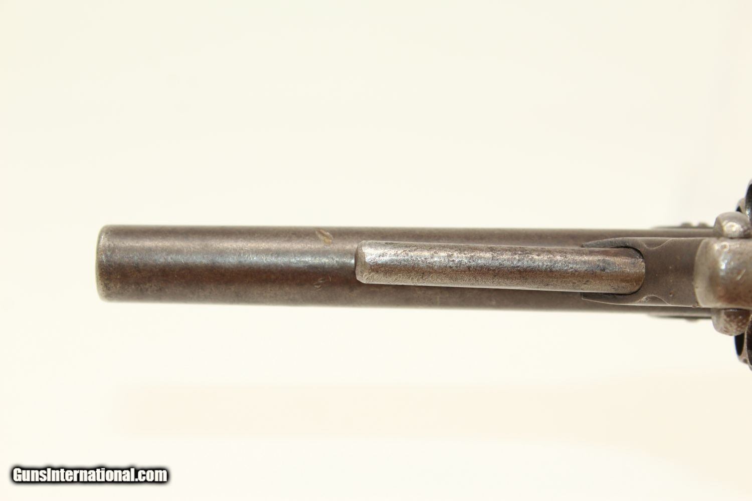 Description: OLD WEST Antique SMITH & WESSON No. 1 Revolver 1870s POCKET CARRY for the Armed Citizen Here we present an antique Smith & Wesson Number 1, Third Issue Revolver, made circa 1868-81. The No. 1 was Smith & Wesson’s first metallic cartridge firearm. It utilized the idea of the “bored through cylinder”, which was patented by Rollin White and subsequently exclusively licensed by Smith & Wesson. This concept has forever changed revolving firearms design, and is the same idea used in revolvers today. S&W, via Rollin White himself, aggressively sued any patent infringers and were able to hold their monopoly on the American market for cartridge revolvers from about 1857 to 1870, whereupon their patent expired. The results were a very profitable business, a broke Rollin White, and a grudging U.S. Chief of Ordnance Alexander Dyer, who was still angry in 1870 about not being able to use the technology during the Civil War. The U.S. government ended up giving Colt their contracts since they valued the larger .44 caliber in the Colt 1860 Armies over the .32 caliber full sized No. 2 Armies. The Third Issue was S&W’s final improved version of the revolver. The rounded birds head grips, fluted cylinder and round barrel made this an even sleeker variant of the revolver that started it all. This small revolver is a 7-shot .22 rimfire. It was specifically designed to be a pocket gun, being very small and light. For those not wanting or needing a full-sized gun or for those who wanted a backup this revolver was the ideal firearm for the turbulent 19th century. The overall condition is good. The blue finish has turned plum with age. The markings are clear. The rosewood grips are in good shape. The bore is dark with good rifling. The action (hammer/trigger) remains strong. The cylinder revolves intermittently. Here is a little revolver that many citizens would have carried with them day to day in the last few decades of the 19th Century! Own the original! This is a legitimate antique and not a reproduction. Barrel is 3-3/16 inches. Caliber: .22 Rimfire Overall condition as seen in photos. Very Fast. Very Safe. FREE SHIPPING WORLDWIDE. Delivered directly to your door by express mail! Guaranteed AUTHENTIC & Includes CERTIFICATE OF AUTHENTICITY. ancestryguns $675 #190555 SOLD Antique: Yes |