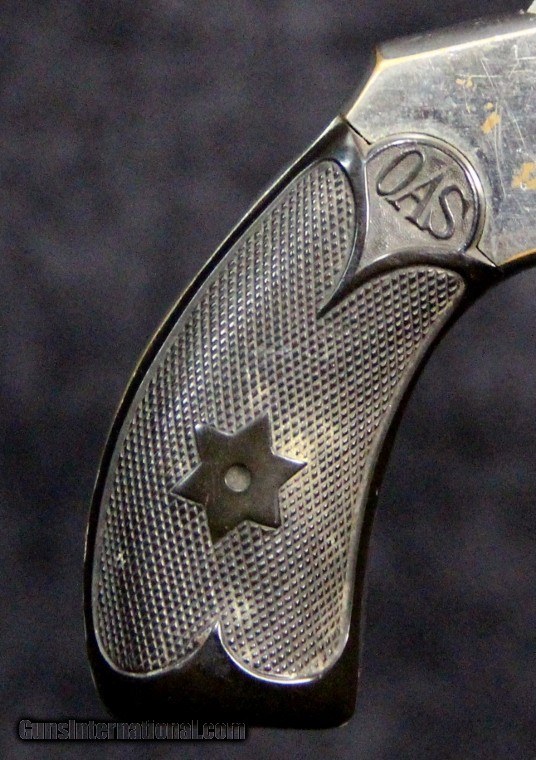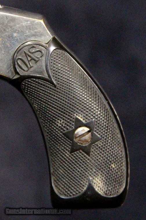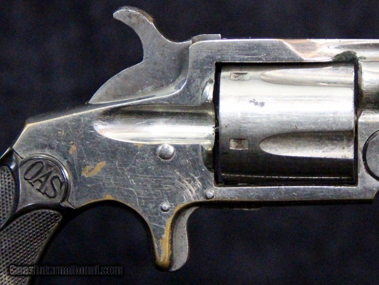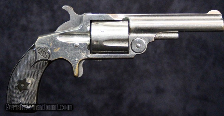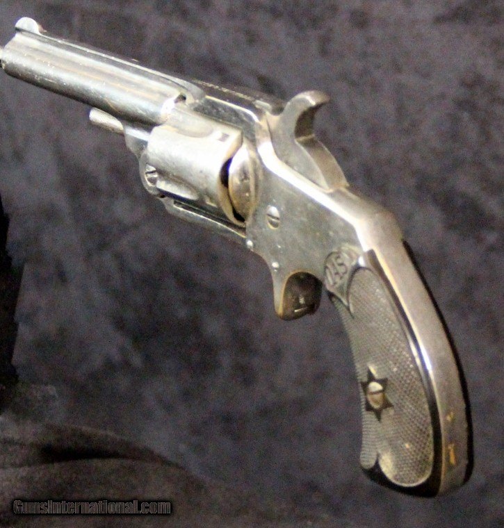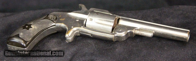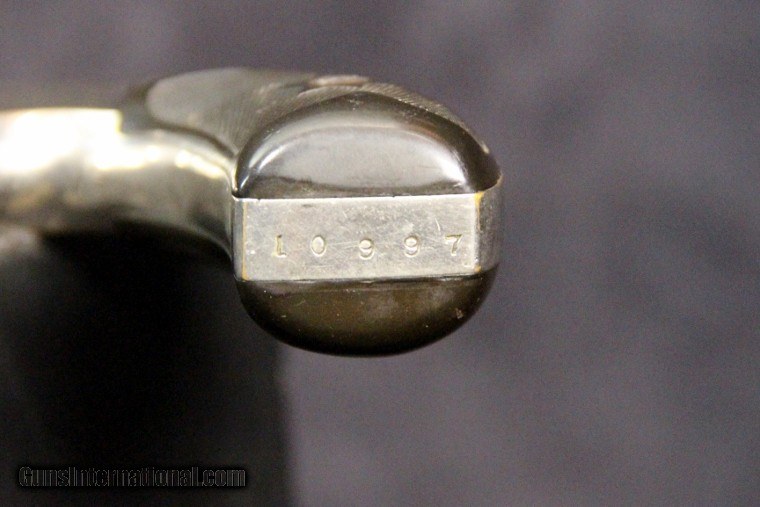 Description: .32rf, #10997, 3 inch barrel, nickel finish, 2 piece hard rubber grips, 1880's. Condition: very good bore, 98% nickel, excellent grips, excellent mechanically, excellent marks. SOLD Antique: Yes |
