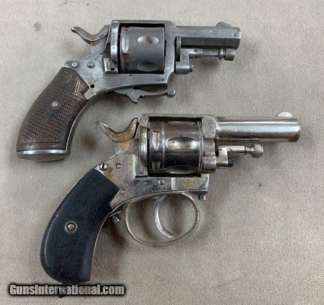Description: Along with an estate we just purchased came this pair of Belgian Nagant Revolvers, one folding trigger, and one double single with a trigger guard. At one time in our history these came into our country by the thousands - they were cheap and gave anyone the ability to defend themselves without having to get a loan so they could purchase a Colt Or Smith & Wesson. These are both .32 caliber guns but were designed for the old black powder load that has not been made in years and they are not safe to shoot with any modern ammunition. Really they are just curios - a reminder of a different day & time. Purchaser must be over 21 and not live in a communist state where these are prohibited. No ffl or c&r required as they are both pre 1898 manufacture and therefore antiques according to Uncle Sam. SOLD Curio/Relic: Yes Antique: Yes Handgun Caliber: .32 S&W |