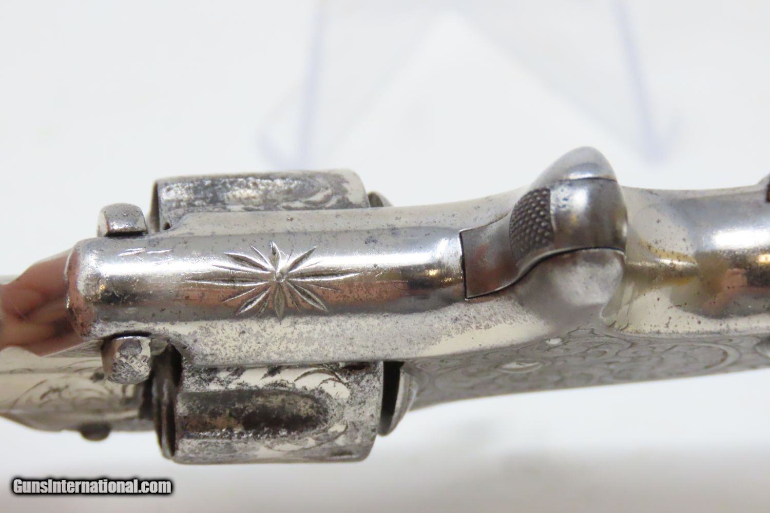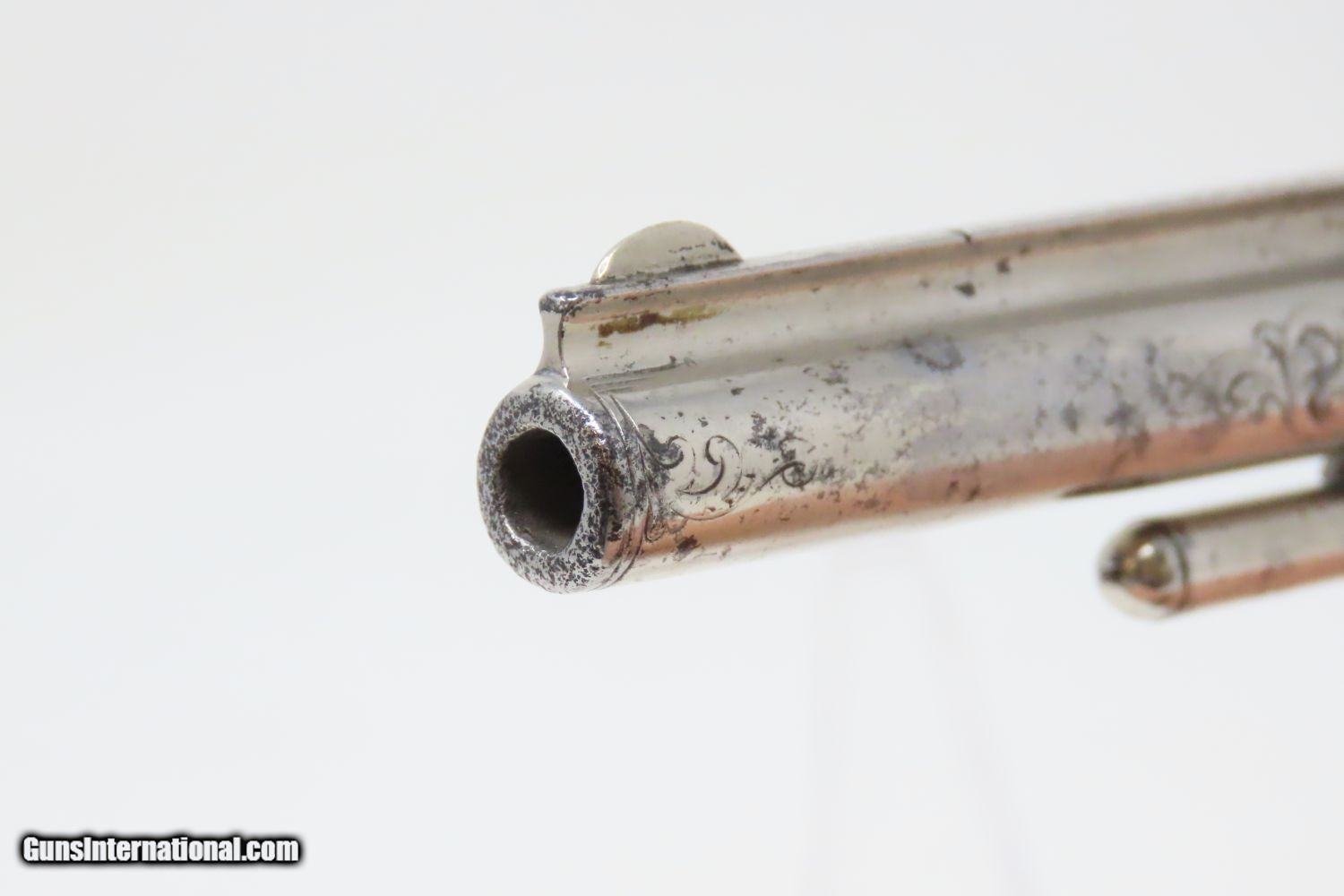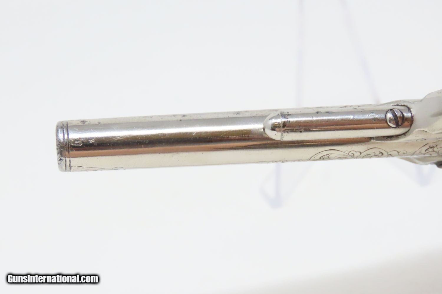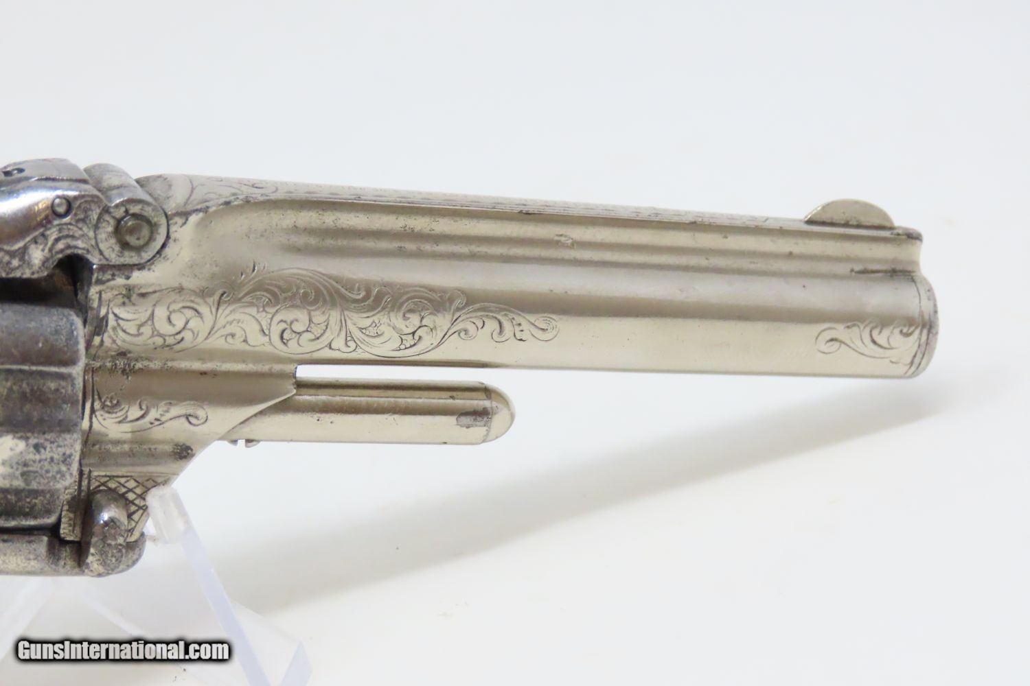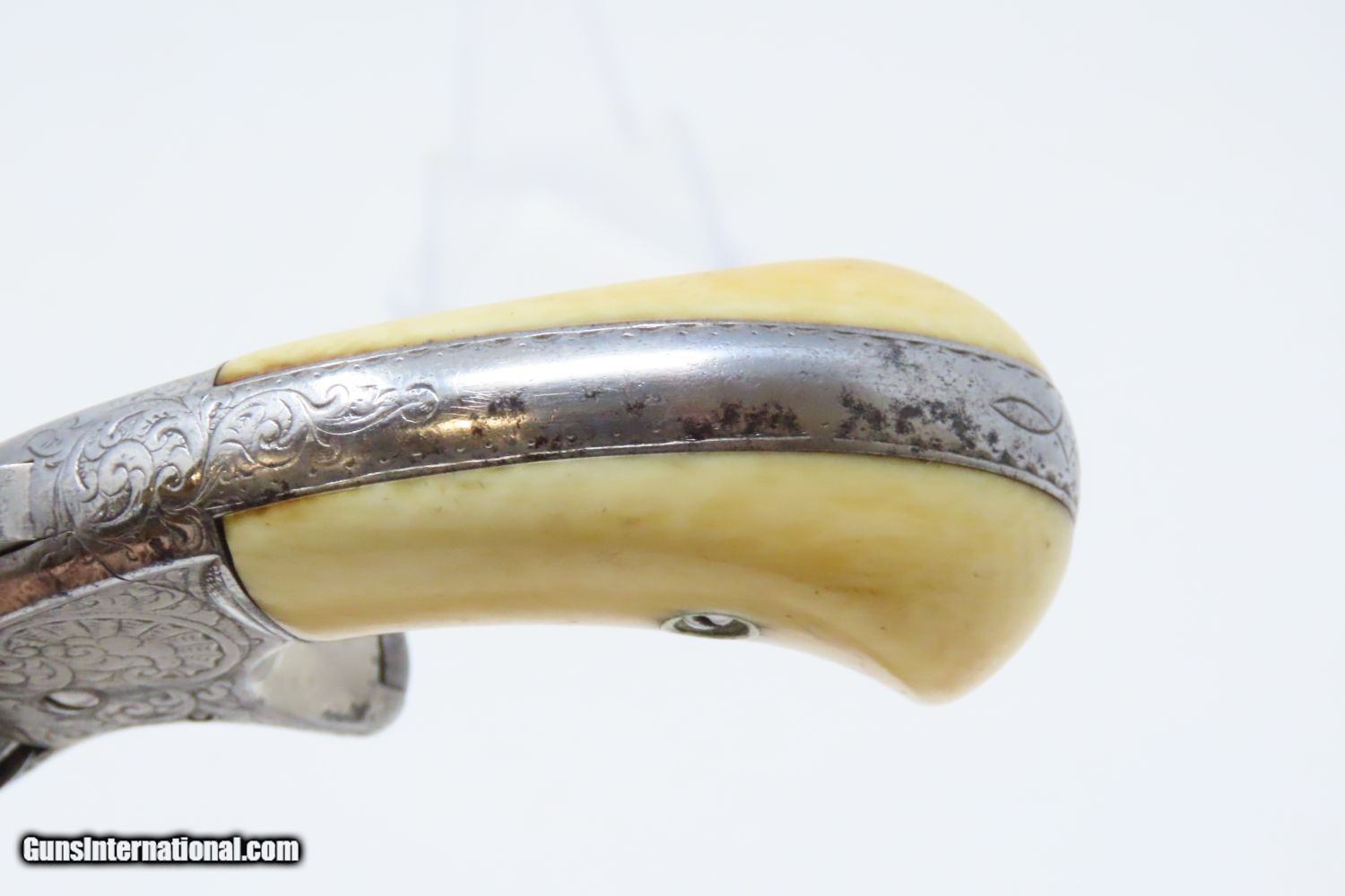 Description: PERIOD ENGRAVED Antique SMITH & WESSON No 1 Third Issue 22 Rimfire Revolver 19th Century POCKET CARRY with IVORY GRIPS! Here we present an Engraved Antique Smith & Wesson Number 1, Third Issue Revolver, made circa 1868-81. The No. 1 was Smith & Wesson’s first metallic cartridge firearm. It utilized the idea of the “bored through cylinder”, which was patented by Rollin White and subsequently exclusively licensed by Smith & Wesson. This concept has forever changed revolving firearms design, and is the same idea used in revolvers today. S&W, via Rollin White himself, aggressively sued any patent infringers and were able to hold their monopoly on the American market for cartridge revolvers from about 1857 to 1870, whereupon their patent expired. The results were a very profitable business, a broke Rollin White, and a grudging U.S. Chief of Ordnance Alexander Dyer, who was still angry in 1870 about not being able to use the technology during the Civil War. The U.S. government ended up giving Colt their contracts since they valued the larger .44 caliber in the Colt 1860 Armies over the .32 caliber full sized No. 2 Armies. The Third Issue was S&W’s final improved version of the revolver. The rounded birds head grips, fluted cylinder and round barrel made this an even sleeker variant of the revolver that started it all. This small revolver is a 7-shot .22 rimfire. It was specifically designed to be a pocket gun, being very small and light. For those not wanting or needing a full-sized gun or for those who wanted a backup this revolver was the ideal firearm for the turbulent 19th century. This one features professional period engraving throughout with ivory grips and a nickel finish, a very attractive combination. The overall condition is very good. The action is strong and tight. The bore is in good shape. Although small, this revolver will make a prodigious impact on any collection! Own the original! This is a legitimate antique and not a reproduction. Barrel is 3-1/4 inches. Caliber: .22 Rimfire Overall condition as seen in photos. Very Fast. Very Safe. FREE SHIPPING WORLDWIDE. Delivered directly to your door by express mail! Guaranteed AUTHENTIC & Includes CERTIFICATE OF AUTHENTICITY. ancestryguns $1235 #201200 SOLD Antique: Yes |