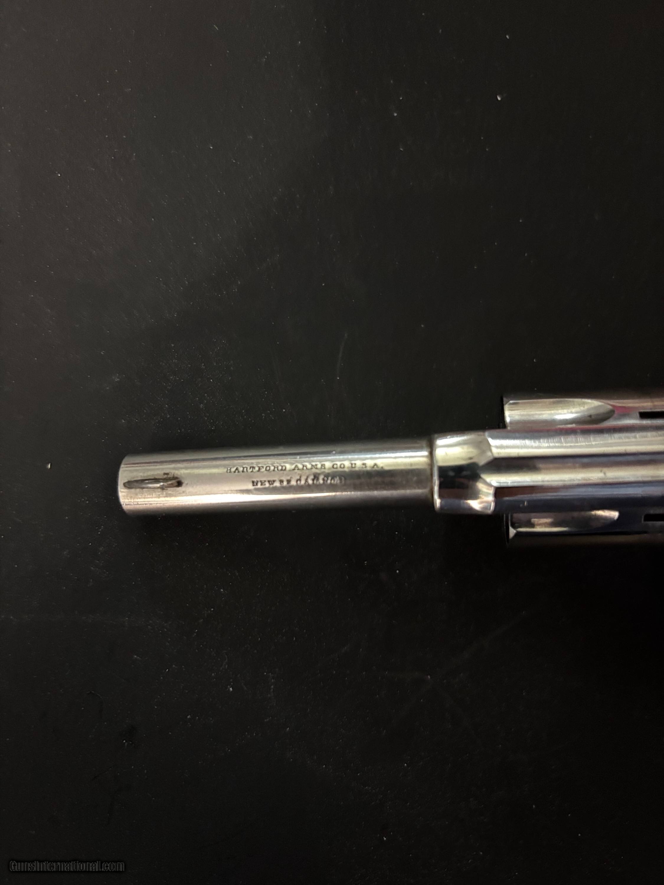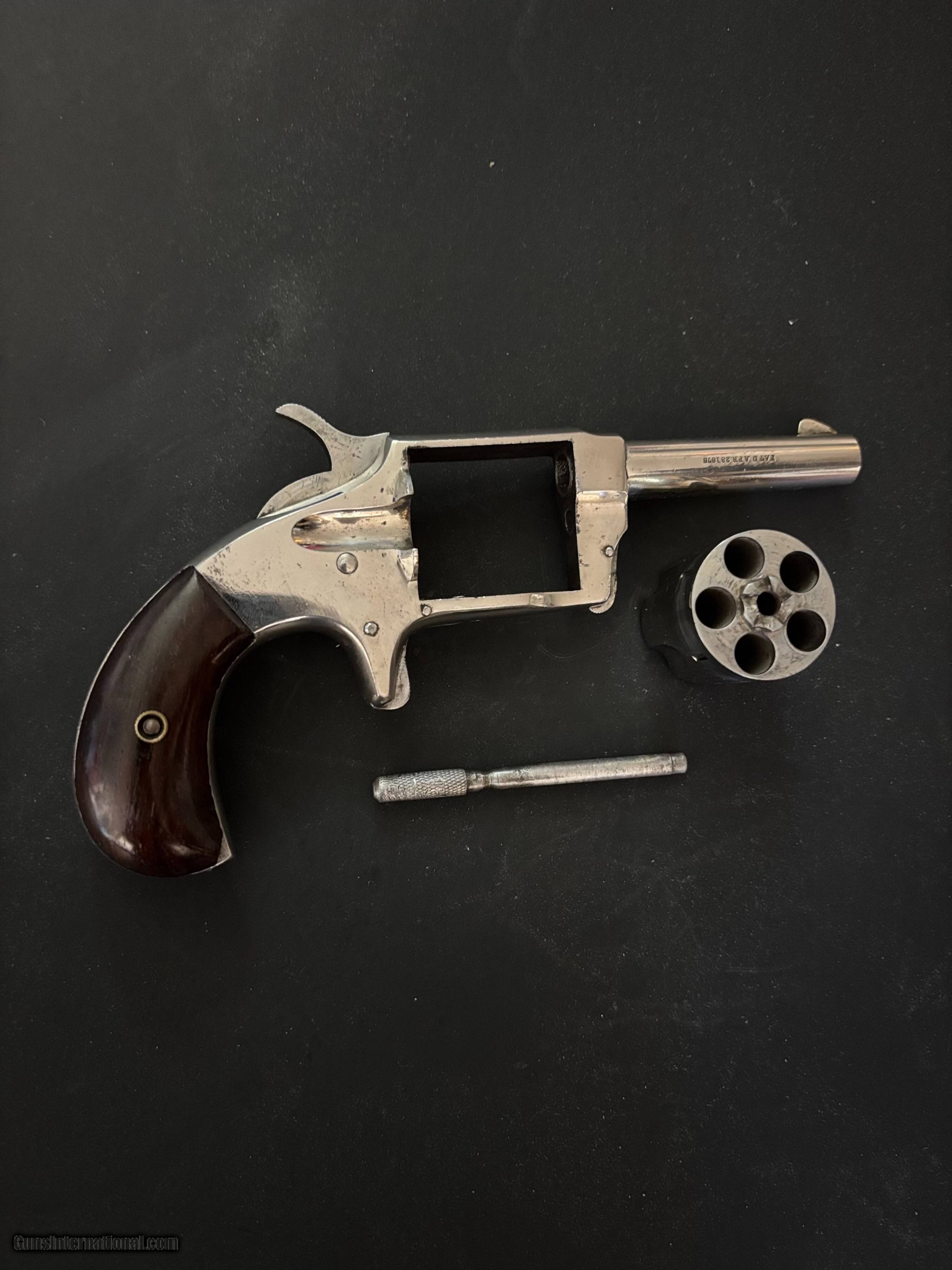 Description: Rare ANTIQUE Hartford Arms Co. , spur trigger , .32 RF ,Single Action Revolver. Serial #8586 Top of barrel marked: HARTFORD ARMS CO U.S.A. NEW 32 CAL No 2 Side of Barrel: WARRANTED CAST STEEL PAT’D APR.23.1878 The Hartford Arms Co. New No. 2 is an antique spur-trigger revolver that was manufactured during the late 19th century, typically around the 1870s. These revolvers were designed primarily for the .32 rimfire (RF) cartridge, which was a common round at the time for small, easily concealed pocket revolvers. Hartford Arms Co. and the New No. 2 Model: