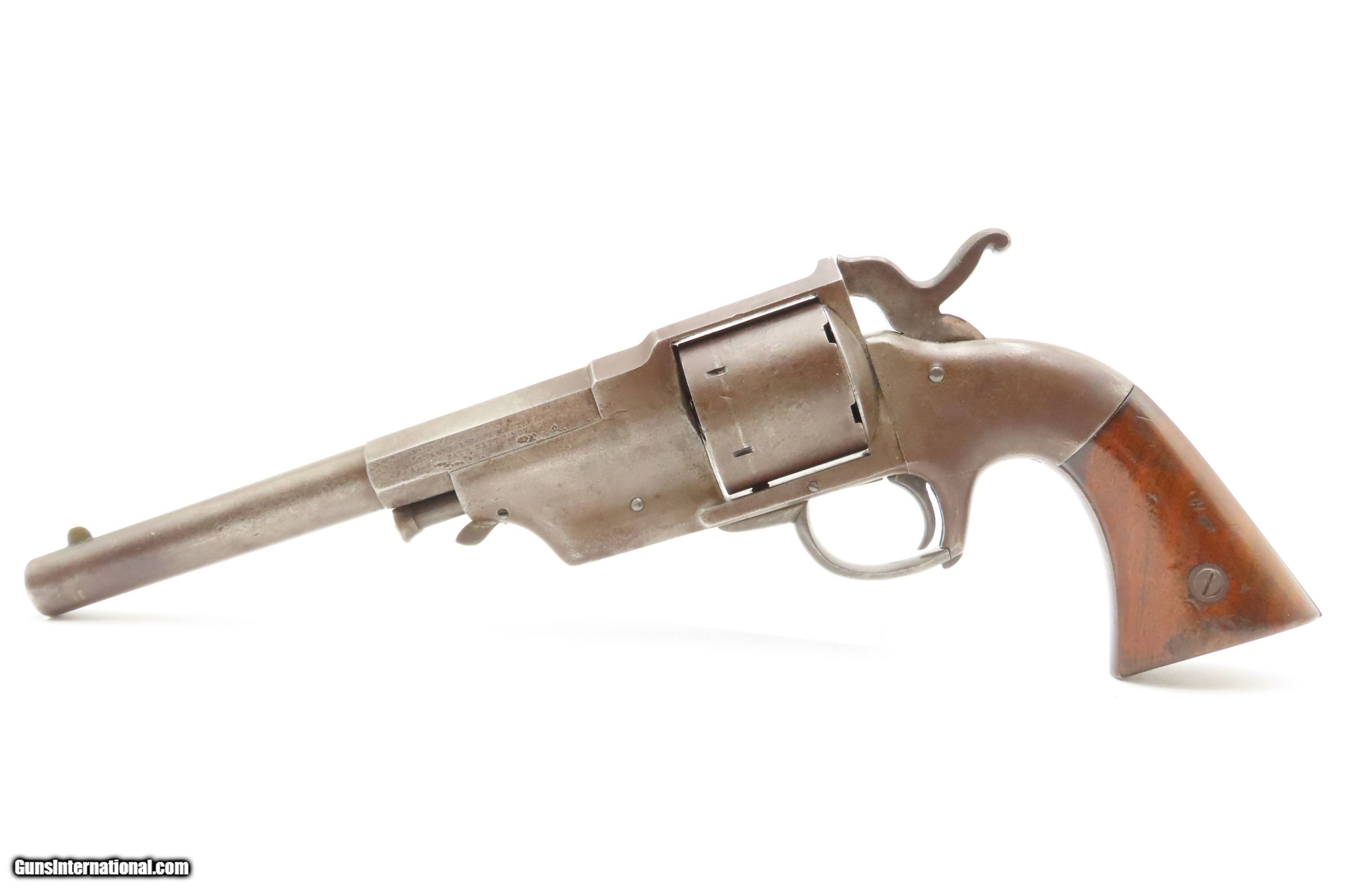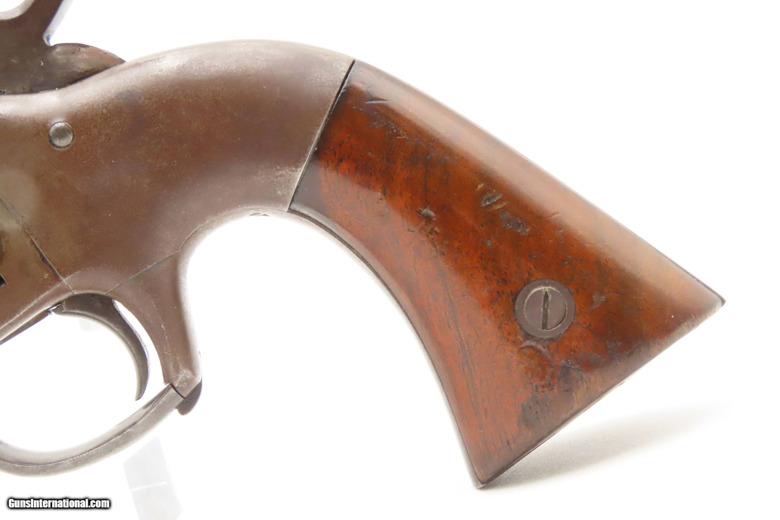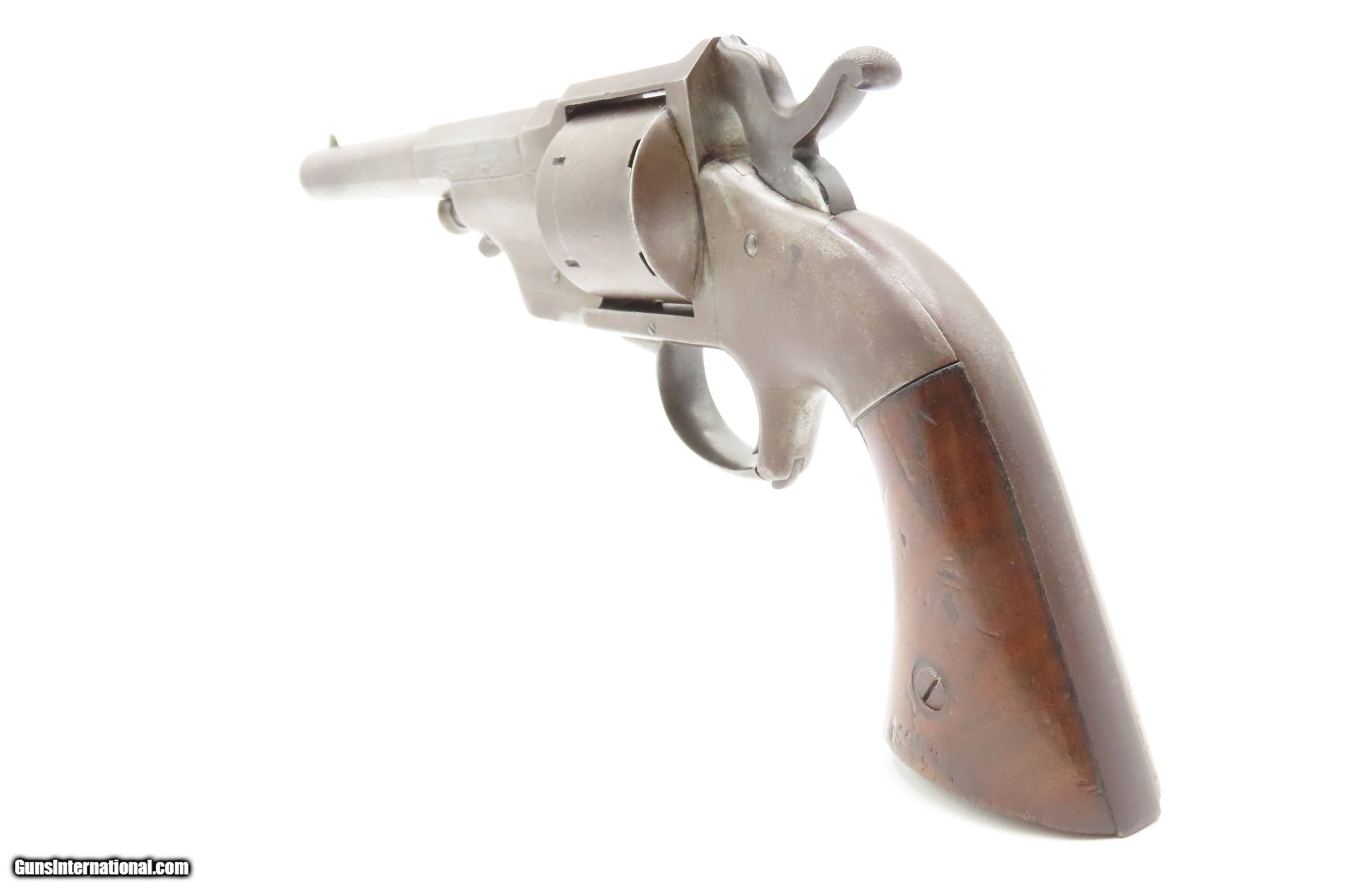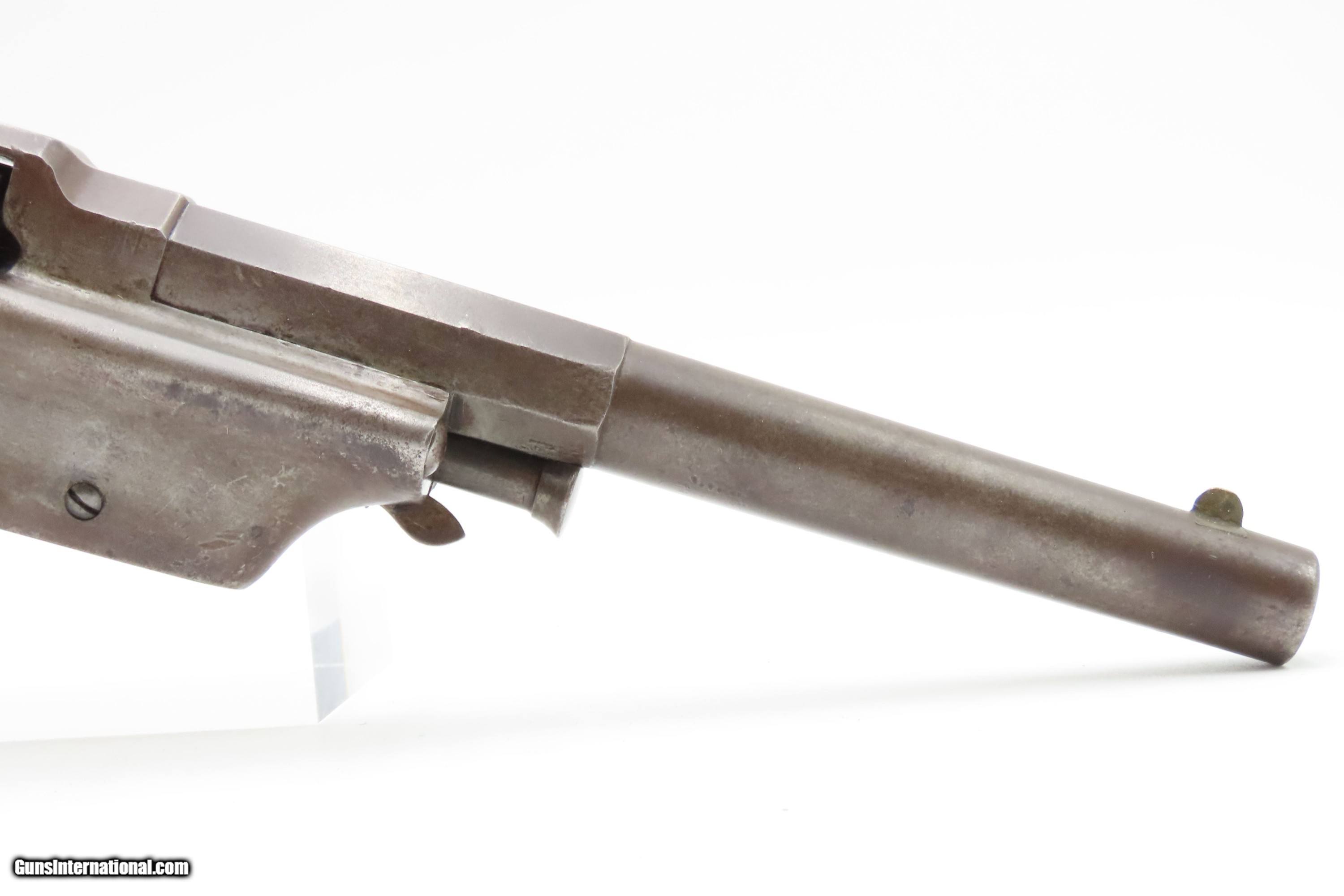 Description: RARE CIVIL WAR Antique ALLEN & WHEELOCK Center Hammer Lipfire ARMY Revolver 1 of 250 .44 Caliber LIPFIRE Revolvers Made c. 1861 Here Ancestry Guns presents a very rare antique Allen & Wheelock Center Hammer Lipfire Army Revolver, made circa 1861 in Worcester, Massachusetts, at the start of the American Civil War. These were produced in both .44 Army caliber and .36 Navy caliber. According to Flayderman, these revolvers only had a production of about 250 pieces till both Allen & Wheelock a ran into the Rollins White patent infringement. They were for the most part converted to percussion to resolve the problem. Of those 250 Lipfires manufactured, many were converted, so finding an original revolver still in Lipfire are few and far between. This Allen & Wheelock Army Revolver is a .44 caliber, six-shot, Lipfire single action revolver that had a 7-1/2” half-round and half-octagon barrel that utilized a unique ratcheting loading lever that formed the trigger guard of the revolver. The frames, cylinders and barrels of the revolvers were blued with the hammers and the combination loading lever and trigger guards color casehardened. The grips were smooth two-piece walnut that were usually varnished but appear to have been oil finished on some examples. Despite the relatively small number produced, the revolvers were manufactured in three distinct variants. The overall condition is very good. Original brown and gray patinas. The grips are very good, have been refinished, and show light handling wear. Matching visible numbers. Patent marking worn but remains legible. Excellent action. The bore is bright with sharp rifling. Here is a VERY RARE and attractive revolver from one of the 19th Century’s most prolific makers! Own the original! This is a legitimate antique and not a reproduction. Barrel is 7-1/2 inches. Caliber: .44 Lipfire Overall condition as seen in photos. Very Fast. Very Safe. FREE SHIPPING WORLDWIDE. Delivered directly to your door by express mail! Guaranteed AUTHENTIC & Includes CERTIFICATE OF AUTHENTICITY. $3500 #259337 Antique: Yes Price: $3,500.00 Buy Now Pay with