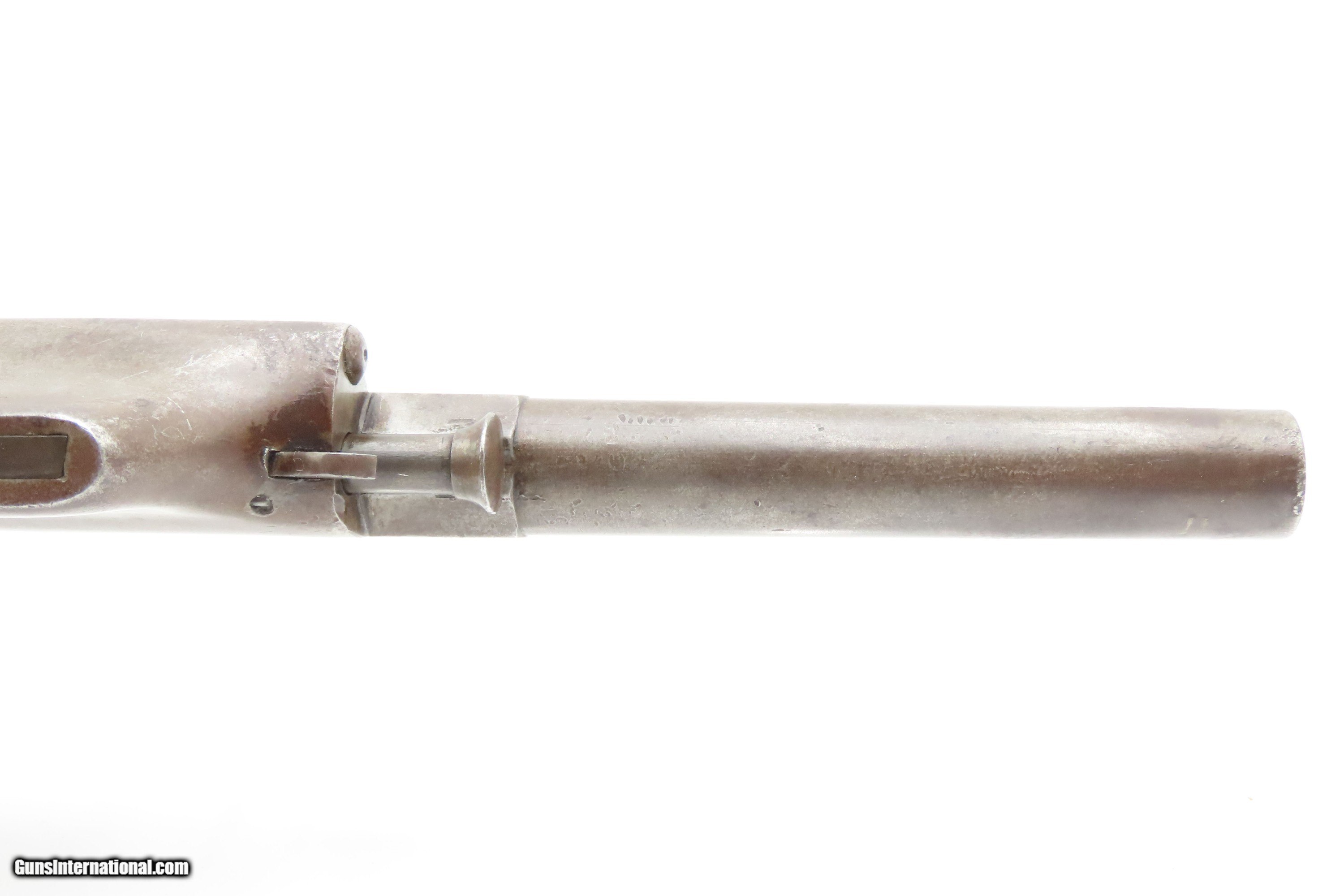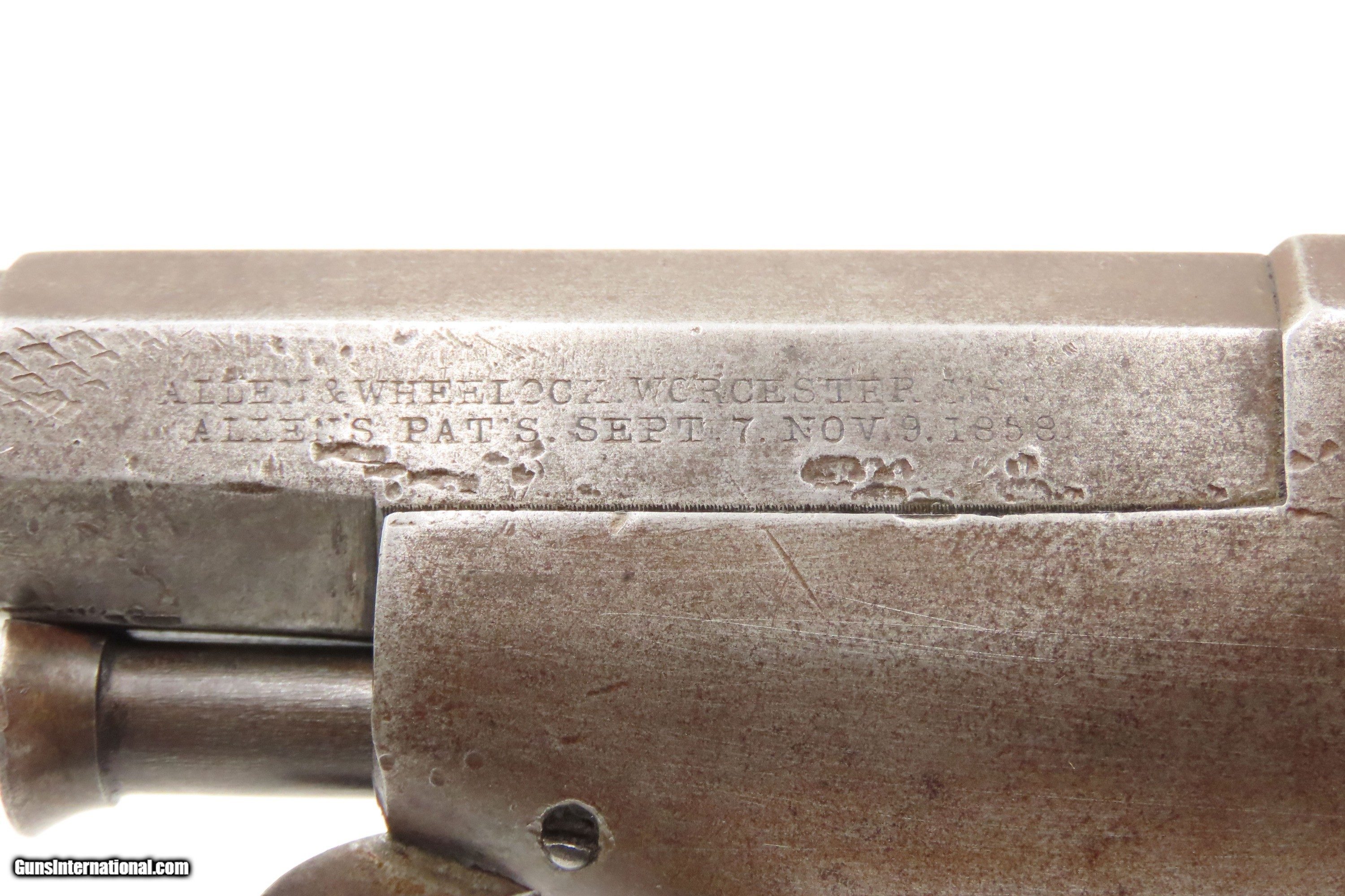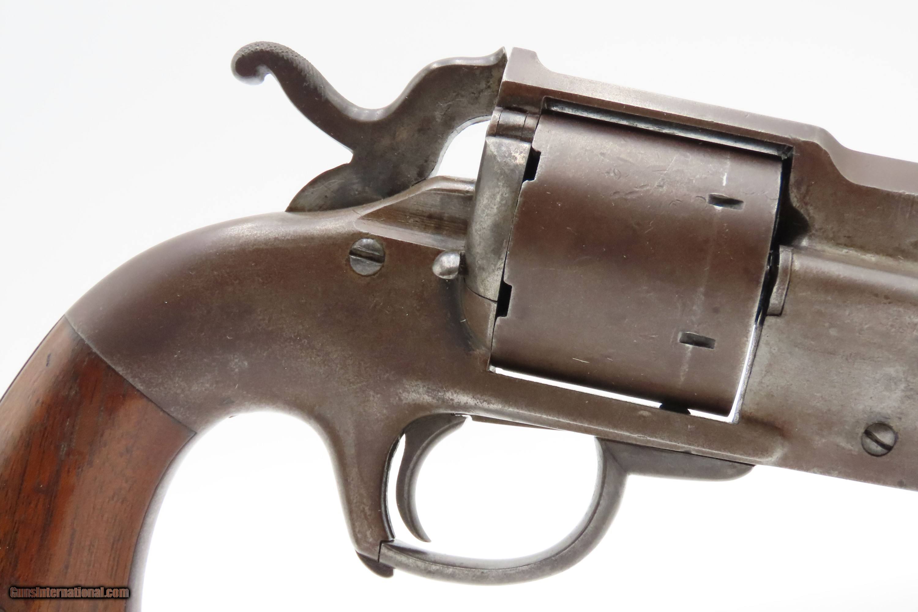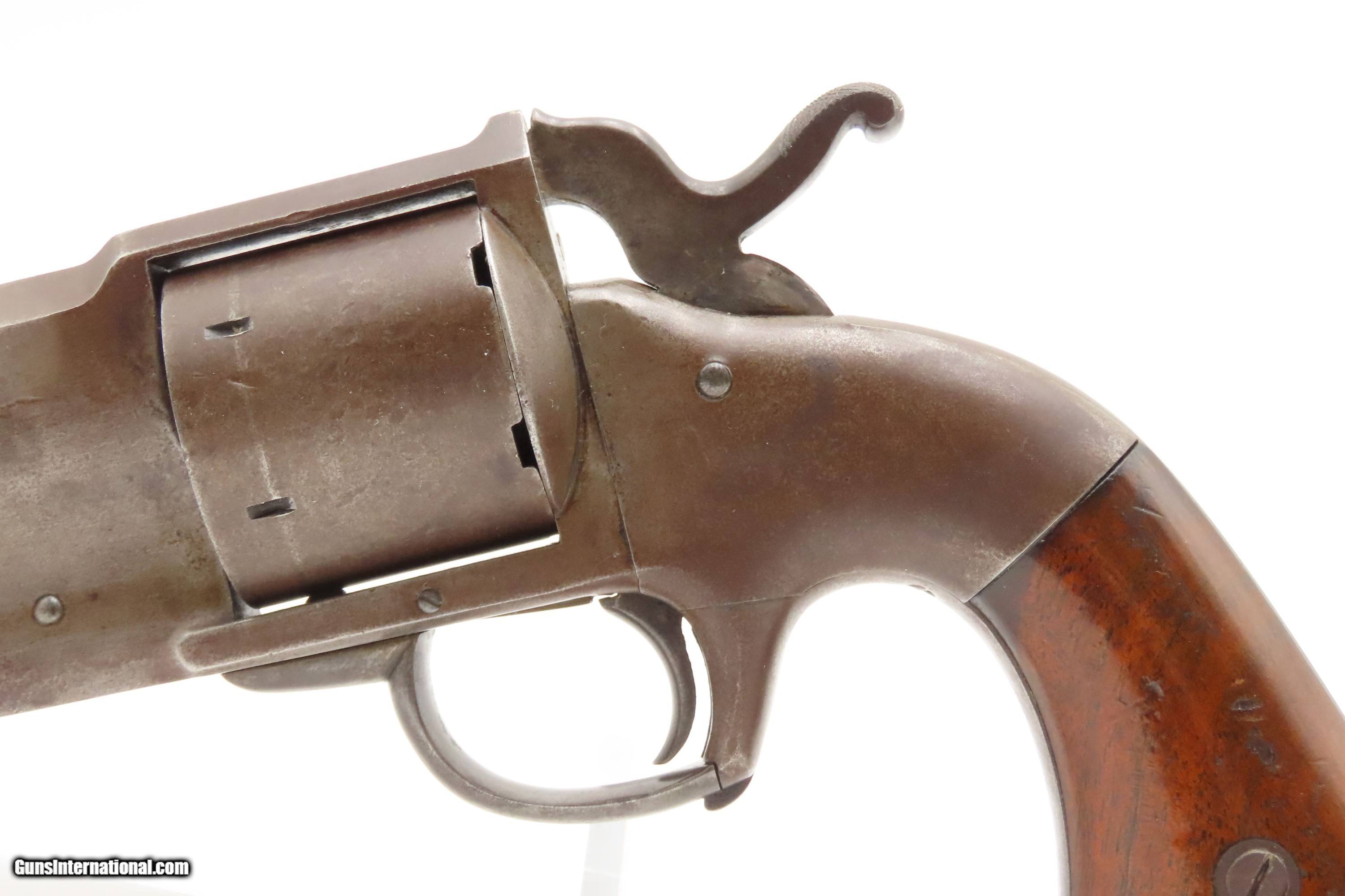 Description: RARE CIVIL WAR Antique ALLEN & WHEELOCK Center Hammer Lipfire ARMY Revolver 1 of 250 .44 Caliber LIPFIRE Revolvers Made c. 1861 Here Ancestry Guns presents a very rare antique Allen & Wheelock Center Hammer Lipfire Army Revolver, made circa 1861 in Worcester, Massachusetts, at the start of the American Civil War. These were produced in both .44 Army caliber and .36 Navy caliber. According to Flayderman, these revolvers only had a production of about 250 pieces till both Allen & Wheelock a ran into the Rollins White patent infringement. They were for the most part converted to percussion to resolve the problem. Of those 250 Lipfires manufactured, many were converted, so finding an original revolver still in Lipfire are few and far between. This Allen & Wheelock Army Revolver is a .44 caliber, six-shot, Lipfire single action revolver that had a 7-1/2” half-round and half-octagon barrel that utilized a unique ratcheting loading lever that formed the trigger guard of the revolver. The frames, cylinders and barrels of the revolvers were blued with the hammers and the combination loading lever and trigger guards color casehardened. The grips were smooth two-piece walnut that were usually varnished but appear to have been oil finished on some examples. Despite the relatively small number produced, the revolvers were manufactured in three distinct variants. The overall condition is very good. Original brown and gray patinas. The grips are very good, have been refinished, and show light handling wear. Matching visible numbers. Patent marking worn but remains legible. Excellent action. The bore is bright with sharp rifling. Here is a VERY RARE and attractive revolver from one of the 19th Century’s most prolific makers! Own the original! This is a legitimate antique and not a reproduction. Barrel is 7-1/2 inches. Caliber: .44 Lipfire Overall condition as seen in photos. Very Fast. Very Safe. FREE SHIPPING WORLDWIDE. Delivered directly to your door by express mail! Guaranteed AUTHENTIC & Includes CERTIFICATE OF AUTHENTICITY. $3500 #259337 Antique: Yes Price: $3,500.00 Buy Now Pay with